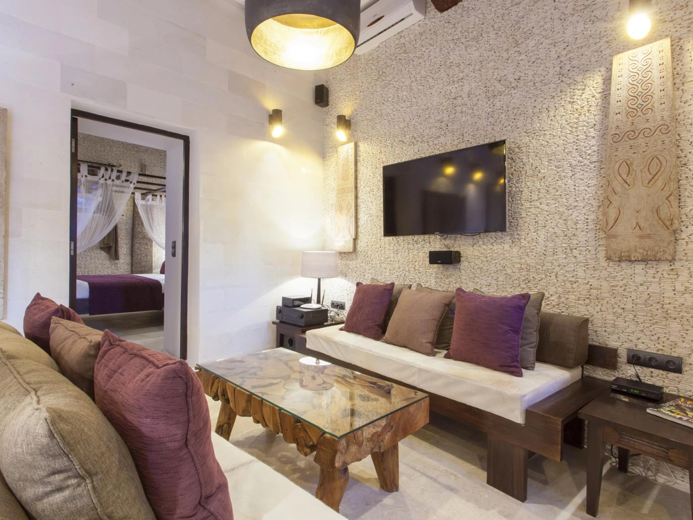 Este oasis ibicenco se encuentra en una zona rural muy tranquila y alejada de masificaciones. El pueblo más cercano es Sant Llorenç de Balafia, una pintoresca localidad donde encontraréis algunos restaurantes. Además, está a pocos minutos en coche del pueblo Santa Eulàlia del Riu, una zona turística con una gran oferta de servicios y ocio. Bañarse en alguna de sus playas y calas es obligatorio. Por otra parte, la céntrica ubicación de la villa permite explorar la isla y llegar con facilidad a la espectacular ciudad de Ibiza o a la famosa zona de ocio de Platja den Bossa o visitar Sant Antoni de Portmany, uno de los principales centros turísticos de la isla.