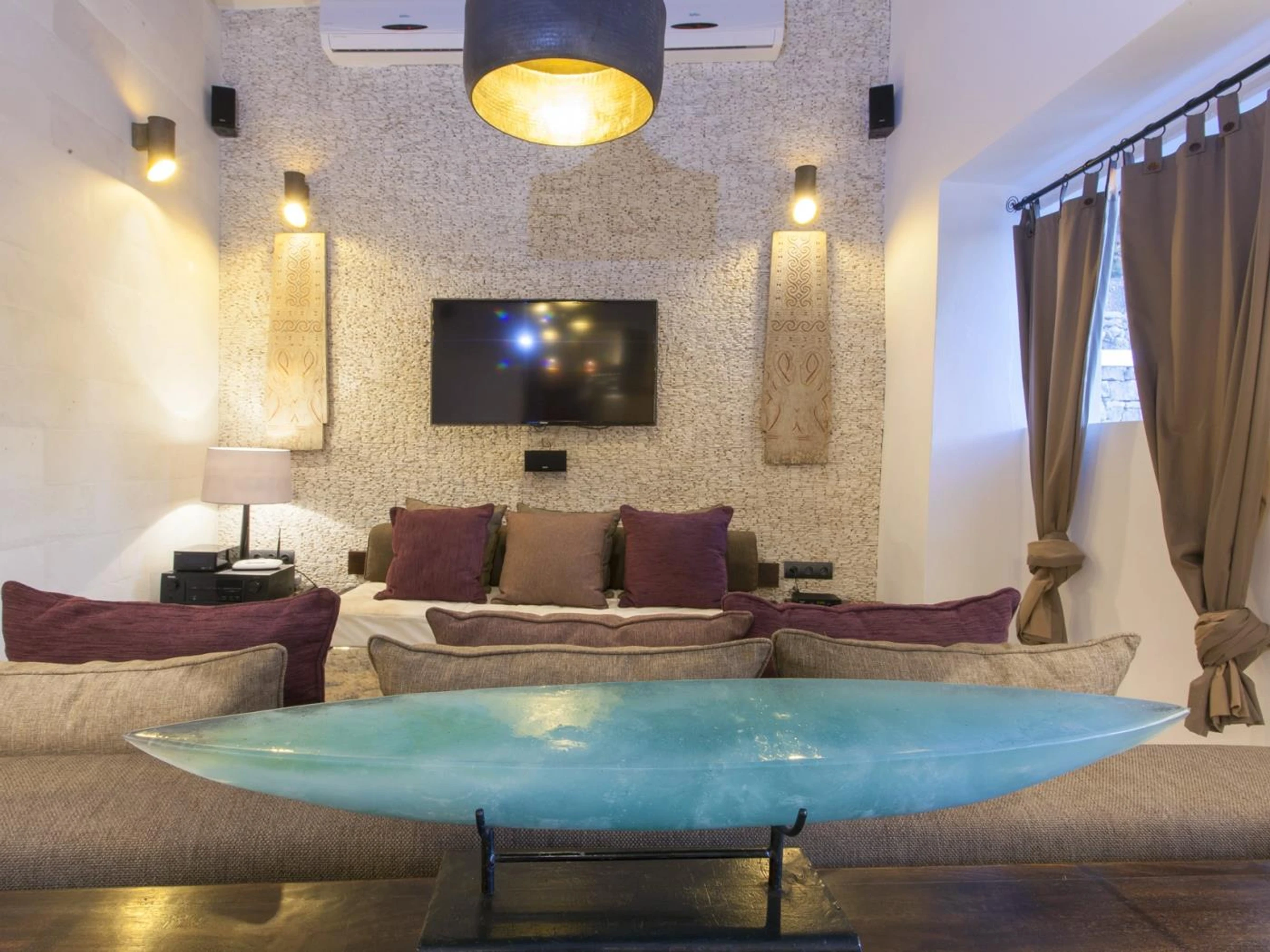 Esta fantástica villa se encuentra en las afueras de Santa Eulàlia, en una zona rural muy tranquila. La casa, muy moderna y funcional está decorada con muebles de gran calidad. Además mantiene la arquitectura y el carácter de una típica casa de pagès ibicenca. Por lo que a las prestaciones se refiere, Can Ribas está totalmente equipada y dispone de todo lo necesario para que paséis unas vacaciones excepcionales en la isla blanca. Pero si el interior de la casa es maravilloso, el exterior lo es todavía más. Cuenta con una gran piscina y zona solárium con maravillosas vistas al campo, jardín de césped natural rodeando la casa y varias terrazas amuebladas y zonas chill-out perfectas para relajarse y disfrutar de la tranquilidad y del maravilloso clima que ofrece la isla.