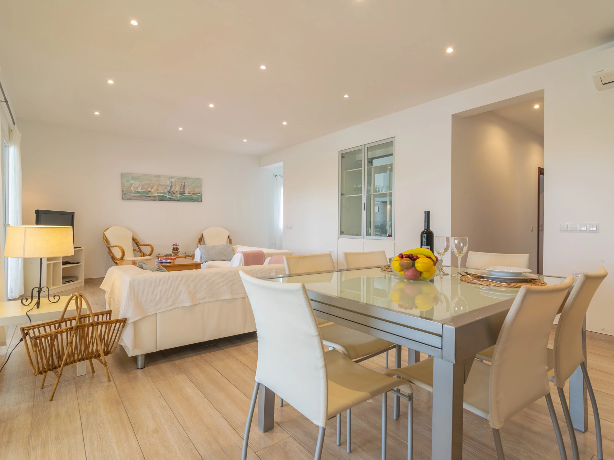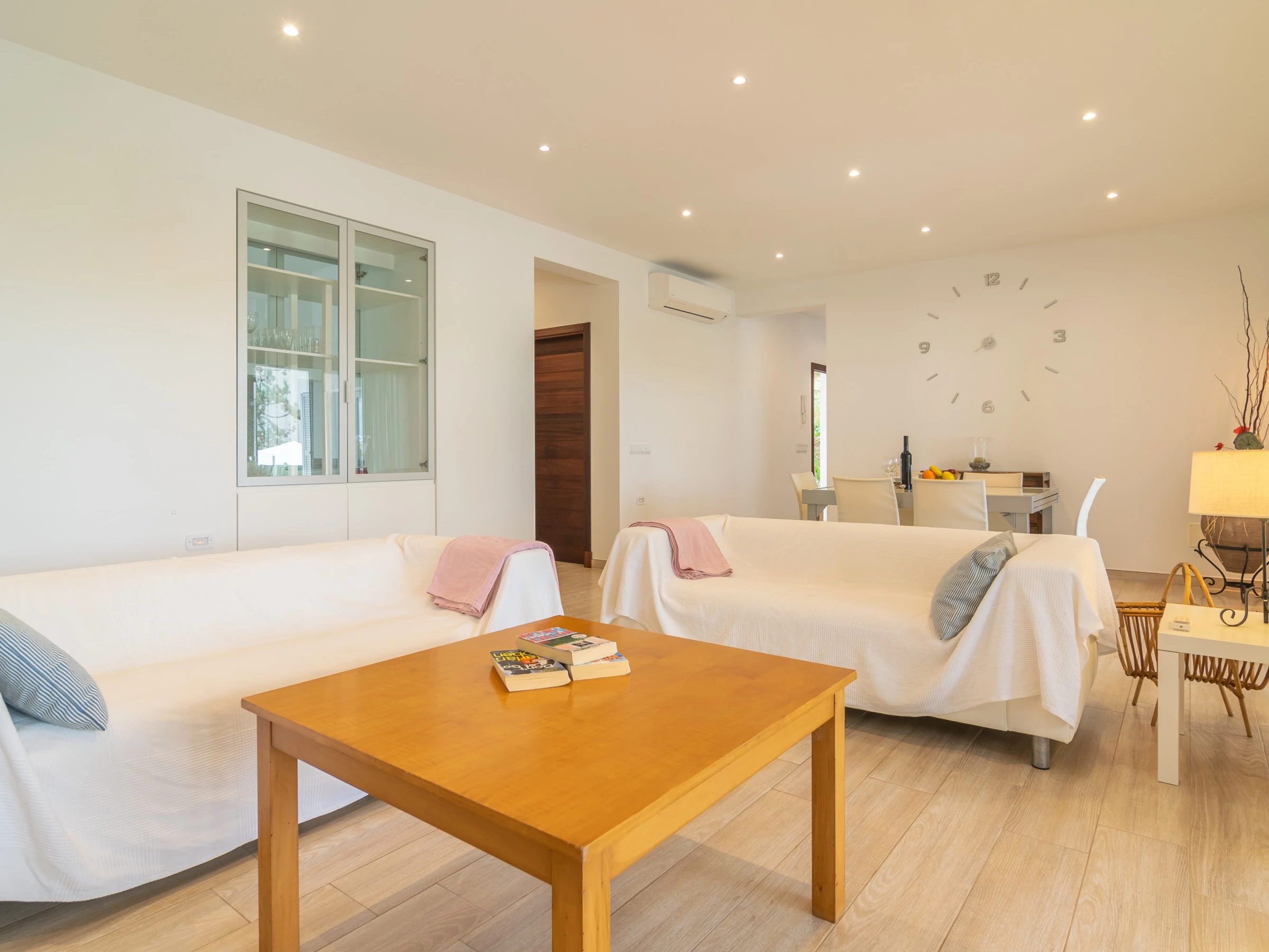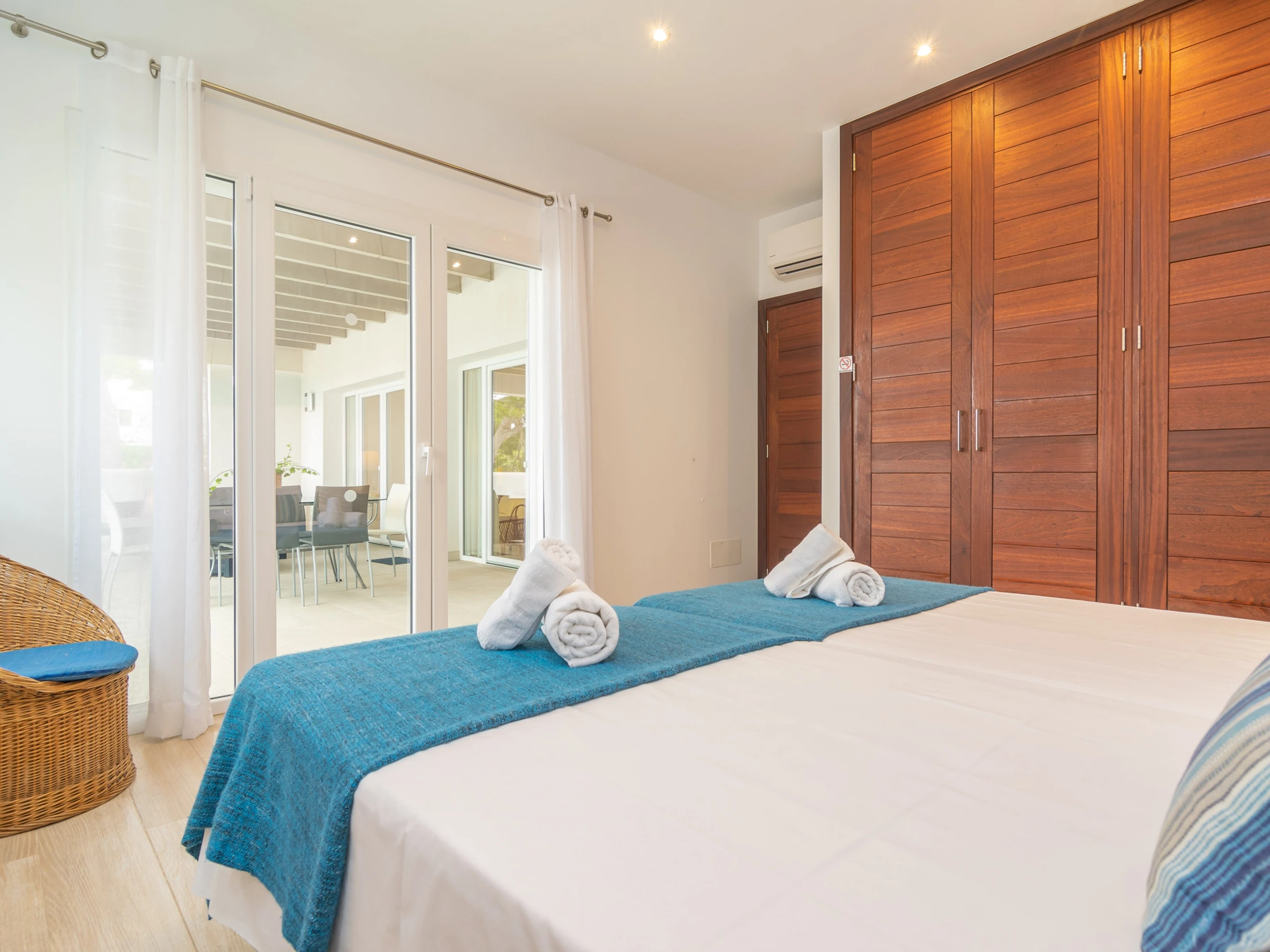 La preciosa casa de una planta sigue el estilo de las casas blancas de Cala d'Or por fuera, pero por dentro destaca por su luminosidad y estilo moderno. Desde el porche accedemos al precioso salón - comedor, equipado con aire acondicionado y televisión con canales vía satélite. A continuación, encontramos la cocina totalmente equipada con placa de inducción. Para descansar, la casa ofrece tres dormitorios, los tres con dos camas individuales y aire acondicionado. También hay dos baños, uno con ducha y otro con bañera. El equipamiento se completa con lavadora, plancha y tabla de planchar además de cuna y trona por si viajas con tu bebé.