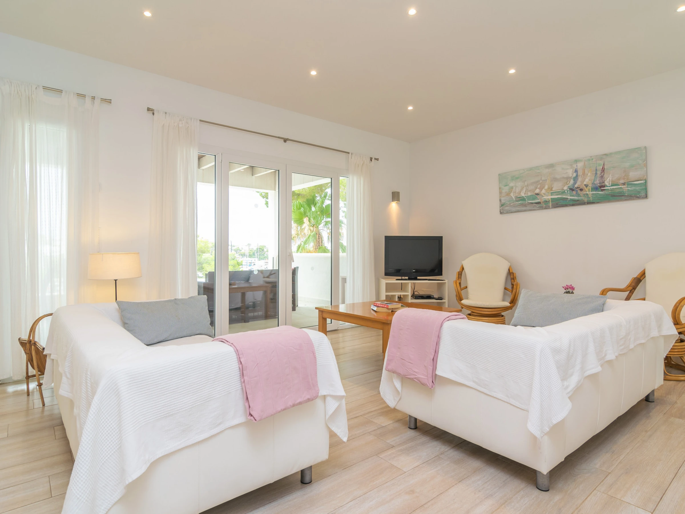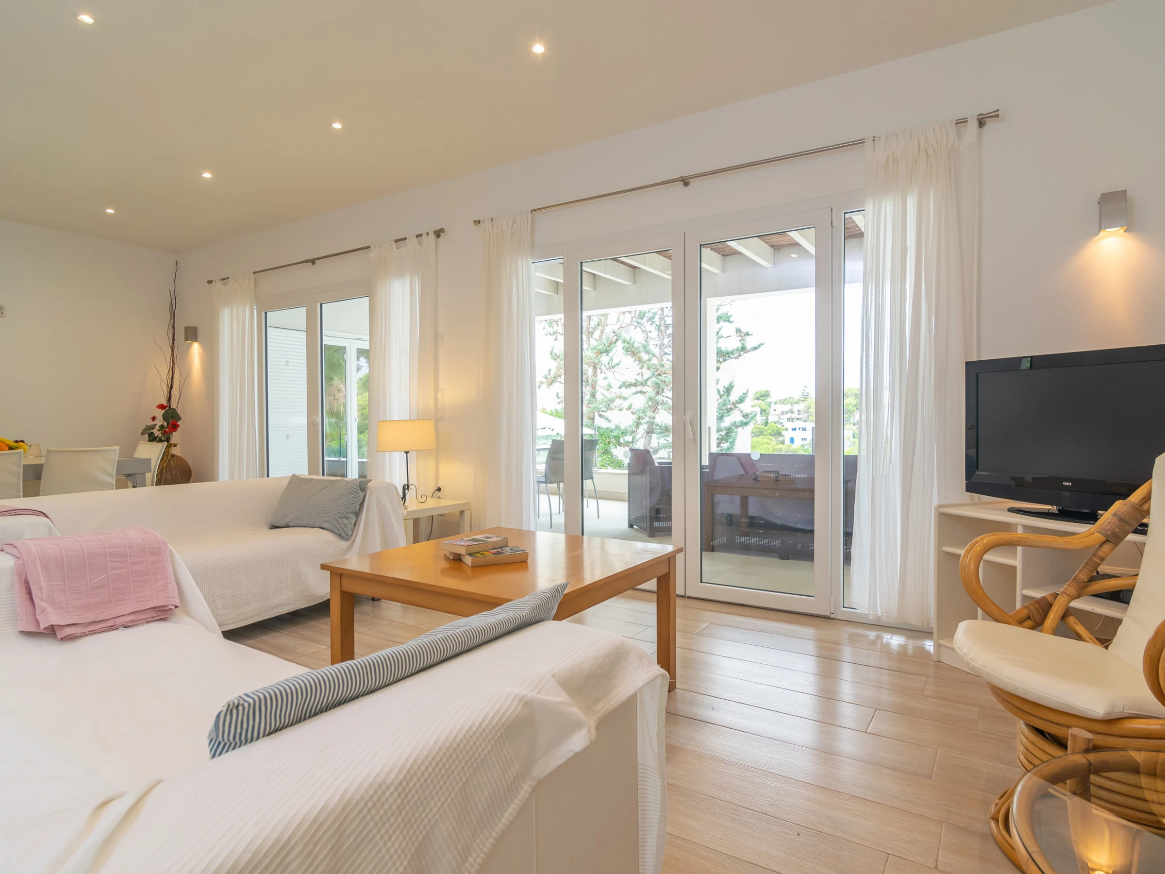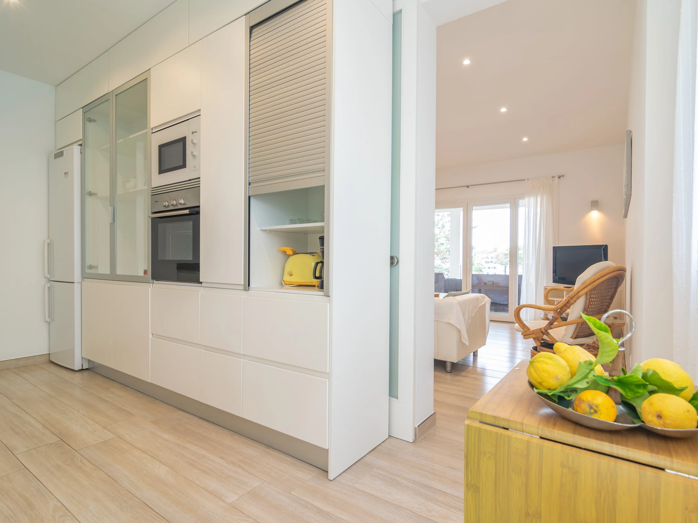 La preciosa casa de una planta sigue el estilo de las casas blancas de Cala d'Or por fuera, pero por dentro destaca por su luminosidad y estilo moderno. Desde el porche accedemos al precioso salón - comedor, equipado con aire acondicionado y televisión con canales vía satélite. A continuación, encontramos la cocina totalmente equipada con placa de inducción. Para descansar, la casa ofrece tres dormitorios, los tres con dos camas individuales y aire acondicionado. También hay dos baños, uno con ducha y otro con bañera. El equipamiento se completa con lavadora, plancha y tabla de planchar además de cuna y trona por si viajas con tu bebé.