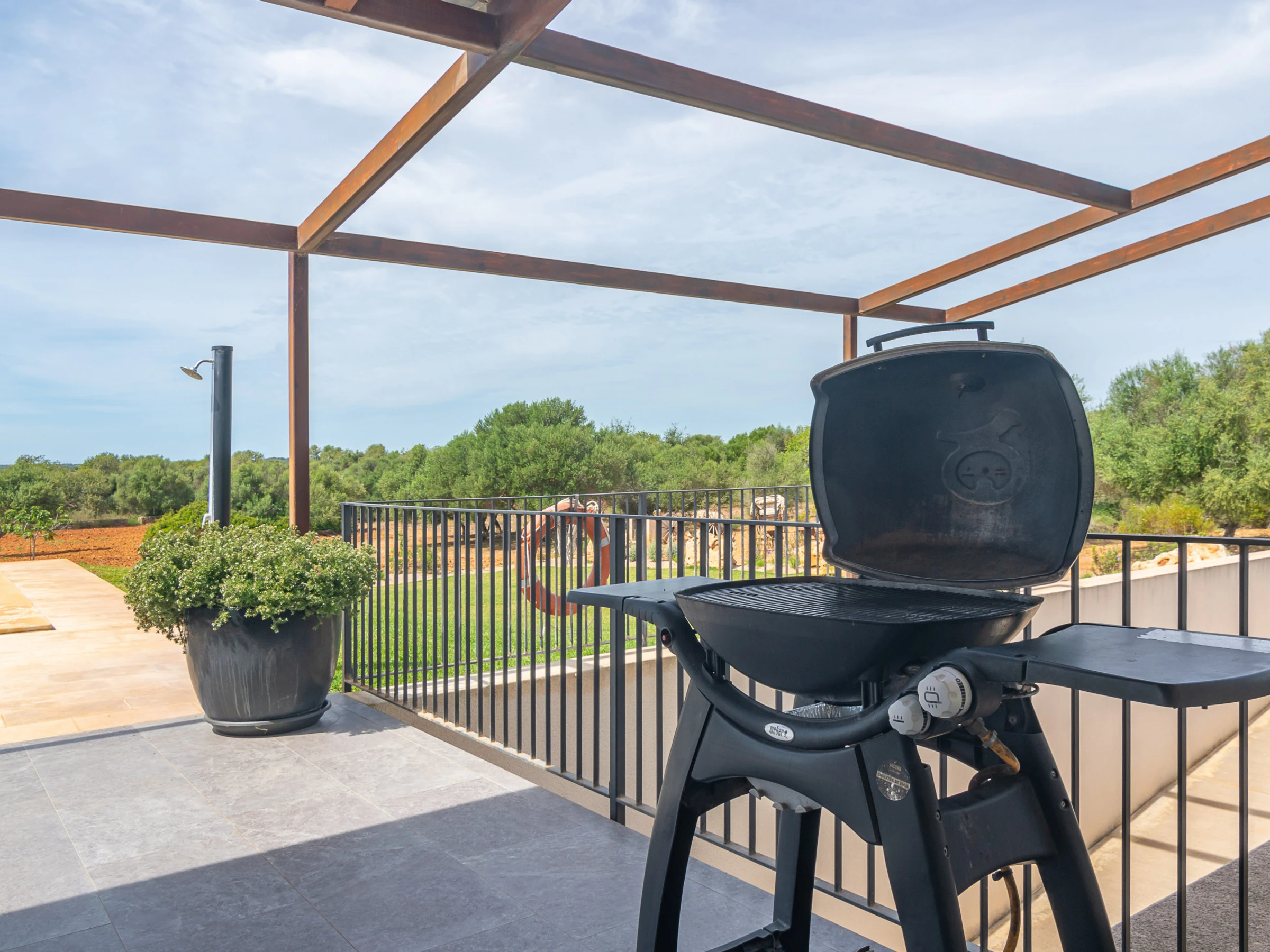 Los exteriores de la propiedad son ideales para disfrutar del clima mediterráneo. En el extenso jardín encontrará una piscina privada de sal, con unas dimensiones de 11 x 5 m y una profundidad de entre 1,6 y 2,2 m, que sin duda será perfecta para refrescarse en los días más calurosos. A su alrededor hay tumbonas donde relajarse mientras toma el sol, una barbacoa y un porche amueblado donde podrá disfrutar comiendo o tomando algo con sus acompañantes. La propiedad está vallada y ofrece total privacidad.