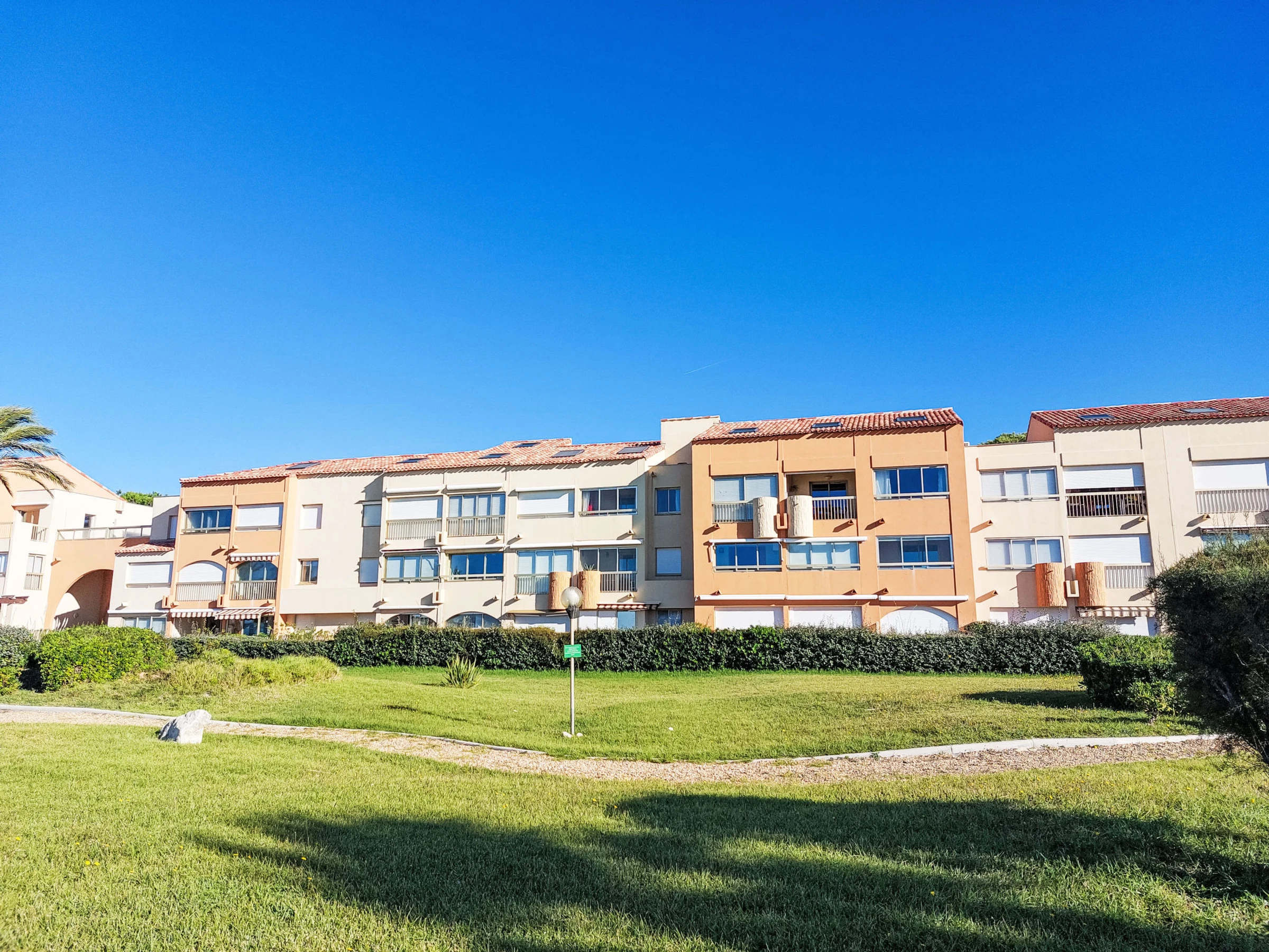 Residencia "Les Marines d'Aryana", de 2 plantas. A [hidden] m del mar, a [hidden] m de la playa. Comunitario: piscina vallada (20 x 10 m, Disponible por temporada: [hidden] - [hidden] horario piscina: 09:[hidden]:30, extra). Tenis ([hidden] - [hidden] (extra), Aparcamiento (número limitado), posibilidad de aparcamiento 50 m. Tienda, tienda de comestibles [hidden] m, supermercado 1 km, restaurante [hidden] m, parada autobús [hidden] m, playa de arena "La coudoulière" [hidden] m. Tenis 50 m. Zona de senderismo Sainte Baume, Sainte Victoire, Calanques Port-Cros, Porquerolles, Ile verte, Embiez, Figuerolles, Cassis. A tener en cuenta: la entrega de llaves se realiza por la agencia en Six fours les plages, 3 km. La foto corresponde a una de las viviendas. Acceso a la piscina: Mañana: 2€ - Tarde: 3€. 10 entradas día por 30€. Gratuito niño menos de 4 años. Acceso Tenis : apertura de 7:00 / 21:00. 10€ la pista (2 à 4 jugadores). Reservación oblogatoria al monstrador de la piscina.