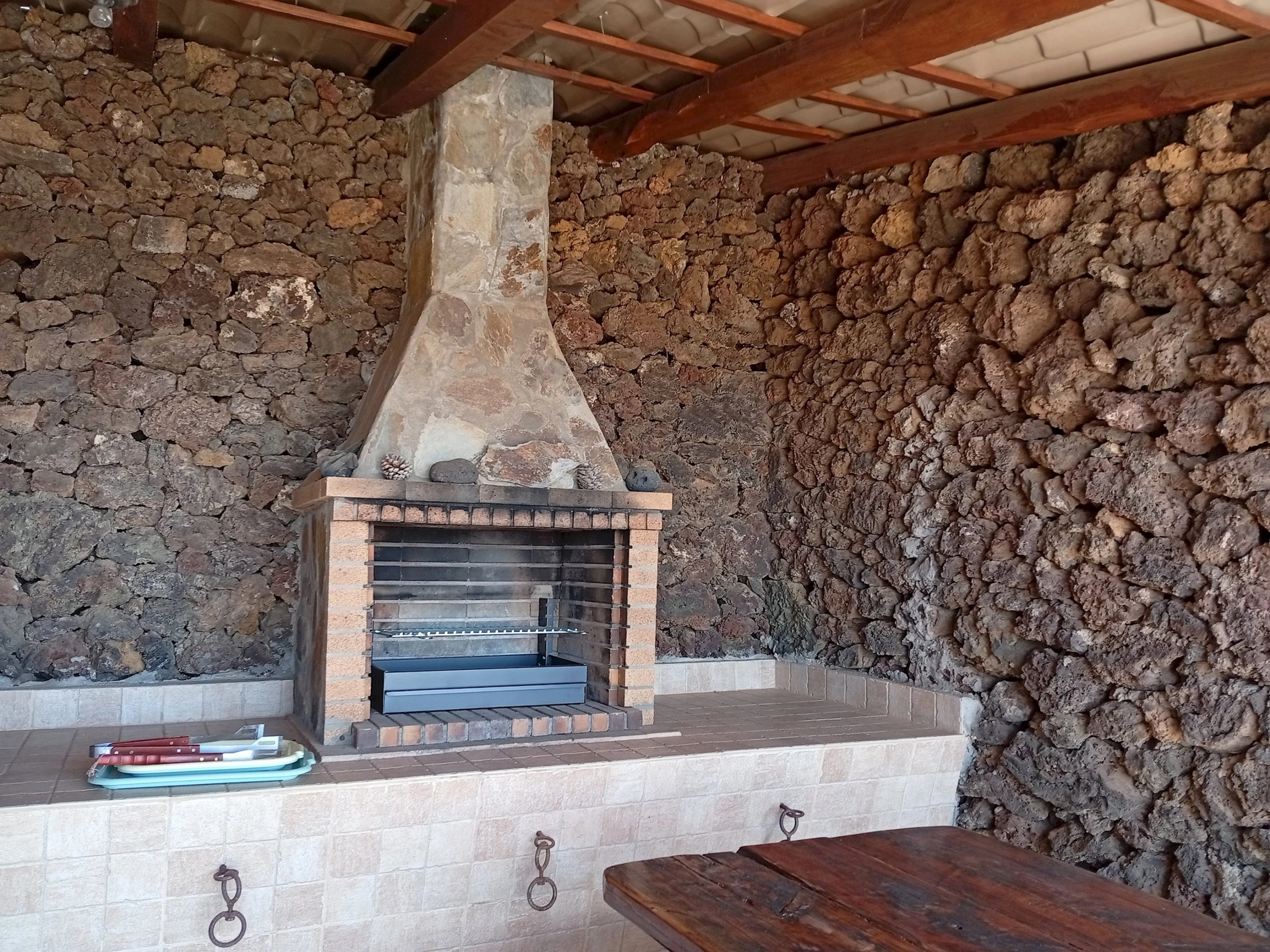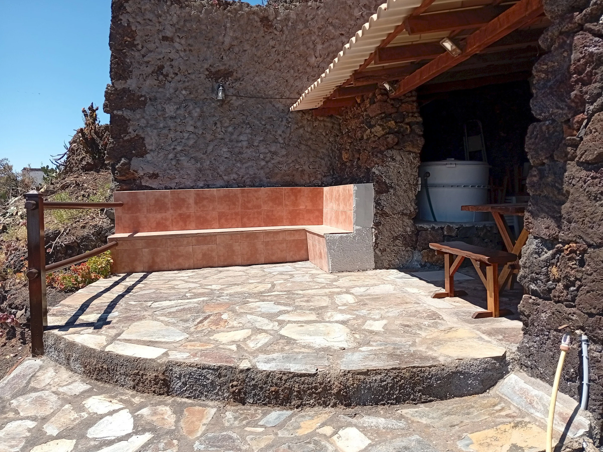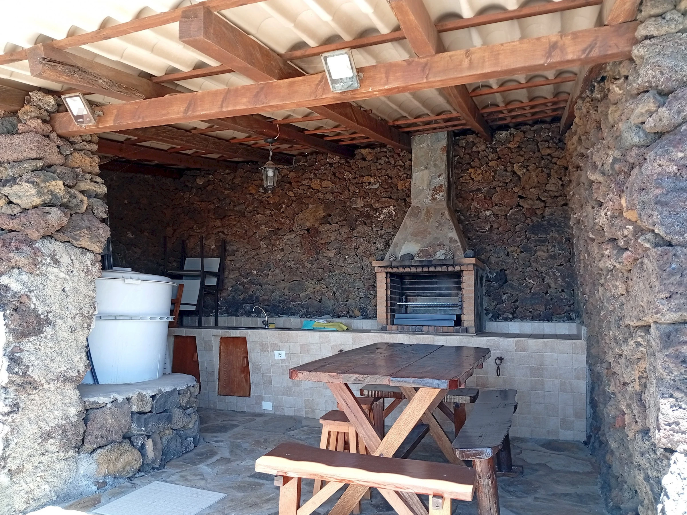 La joya de la vivienda es la zona de barbacoa exterior, construida con materiales naturales que se integran perfectamente con el entorno volcánico de El Hierro. Situada bajo un techo de tejas y rodeada de muros de piedra, esta área ofrece un ambiente rústico y acogedor, ideal para compartir comidas en grupo al aire libre.Está equipada con una barbacoa de obra, fregadero y encimera de azulejos, además de una sólida mesa de madera maciza con bancos, perfecta para almuerzos o cenas al fresco. El entorno ajardinado y el cuidado empedrado del camino que conduce hasta la zona refuerzan la sensación de tranquilidad y conexión con la naturaleza.