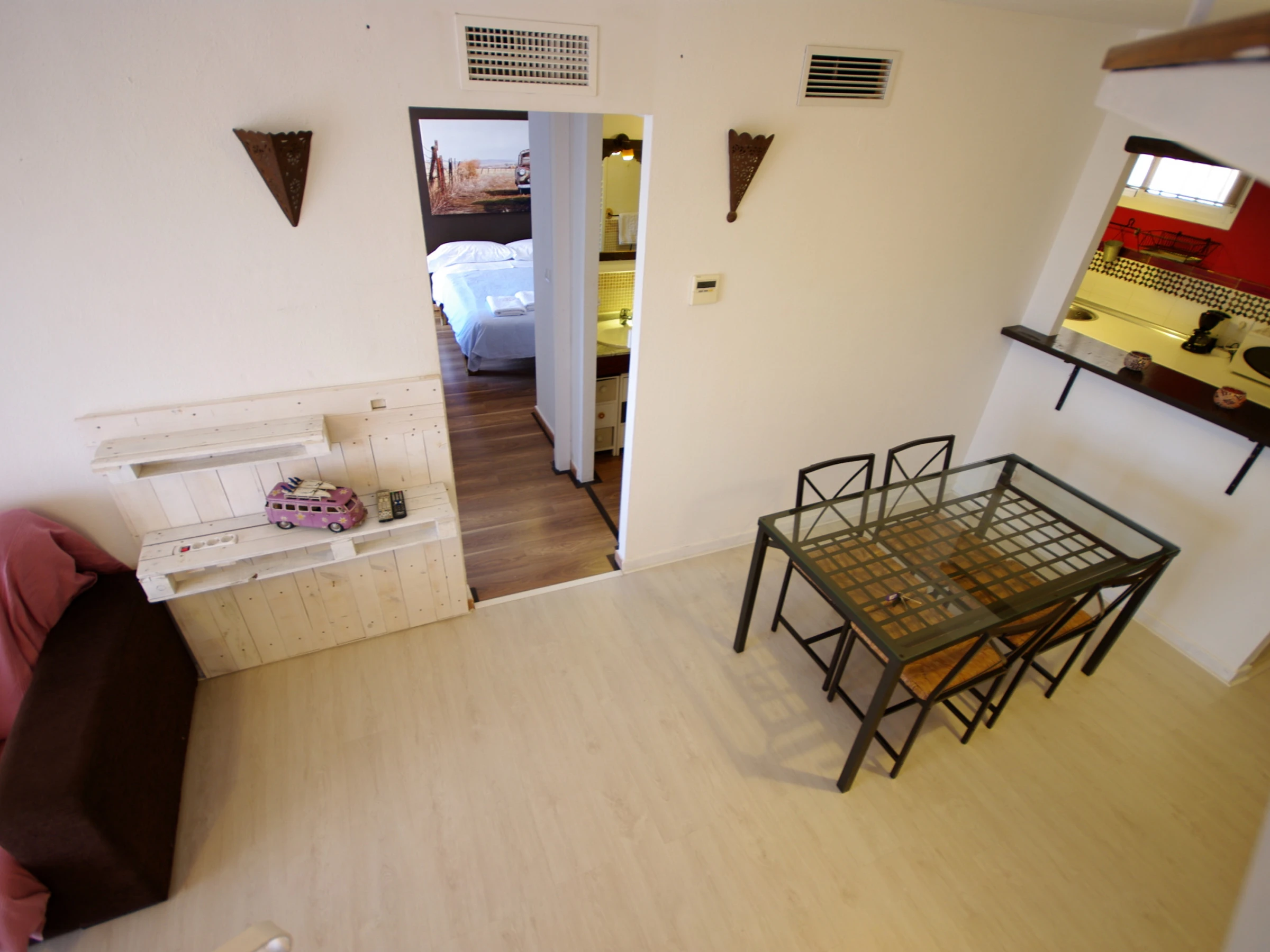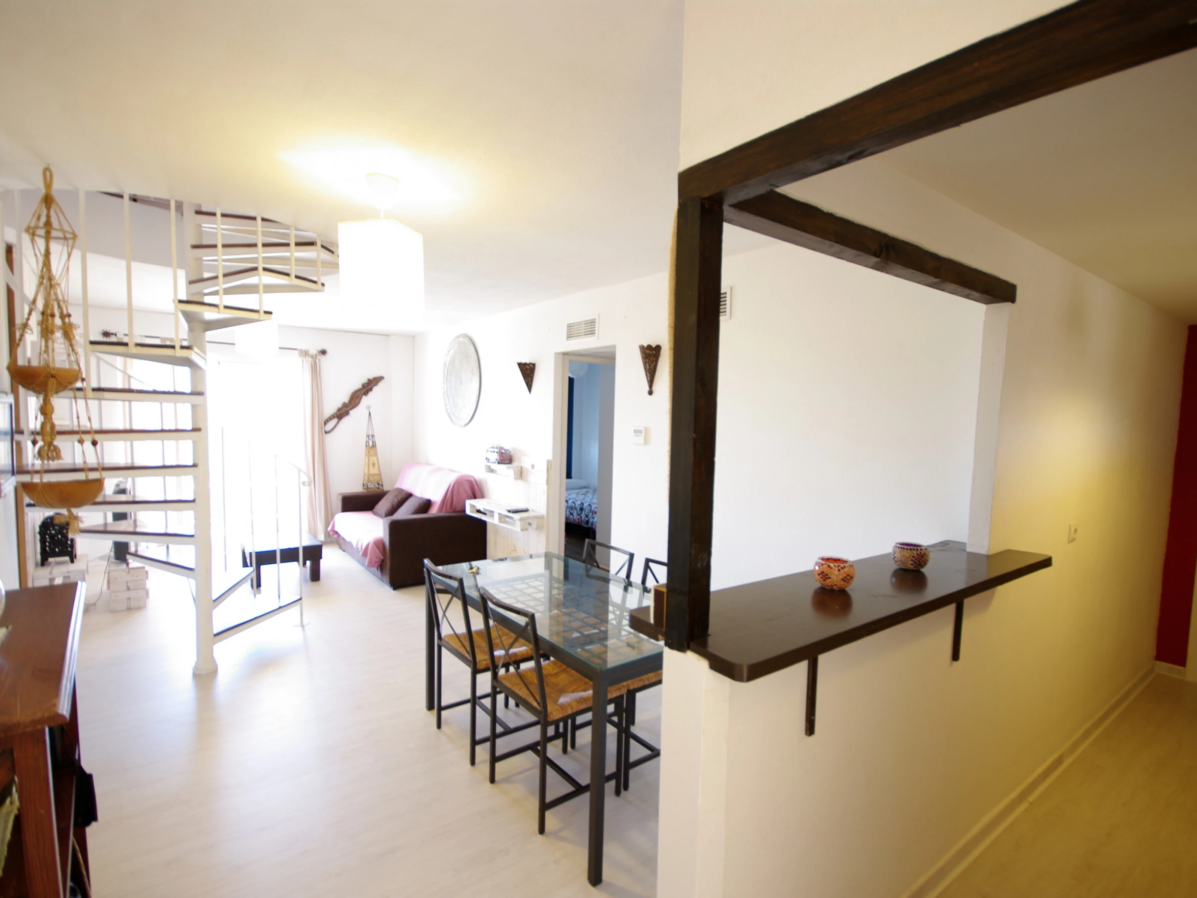 Se trata de un ático dúplex con capacidad máxima para 4 personas, cuya principal ventaja es que toda la vivienda se distribuye en la planta baja, lo que la hace especialmente cómoda. En esta planta se encuentran el salón, la cocina, los dormitorios y el baño.