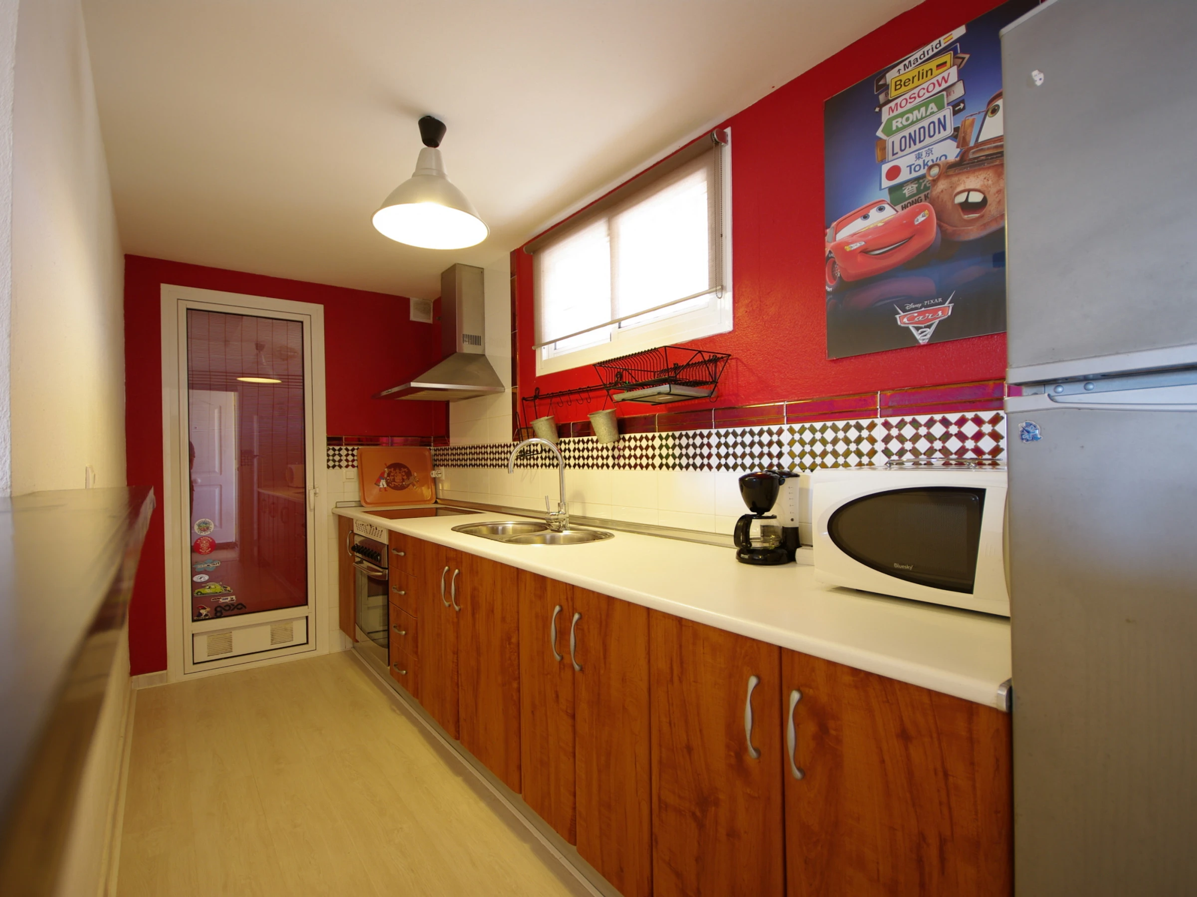 La cocina está equipada con vitrocerámica, horno, microondas, nevera combi con congelador, lavadora, cafetera, tostadora, hervidor de agua, exprimidor, vajilla y utensilios de cocina.
