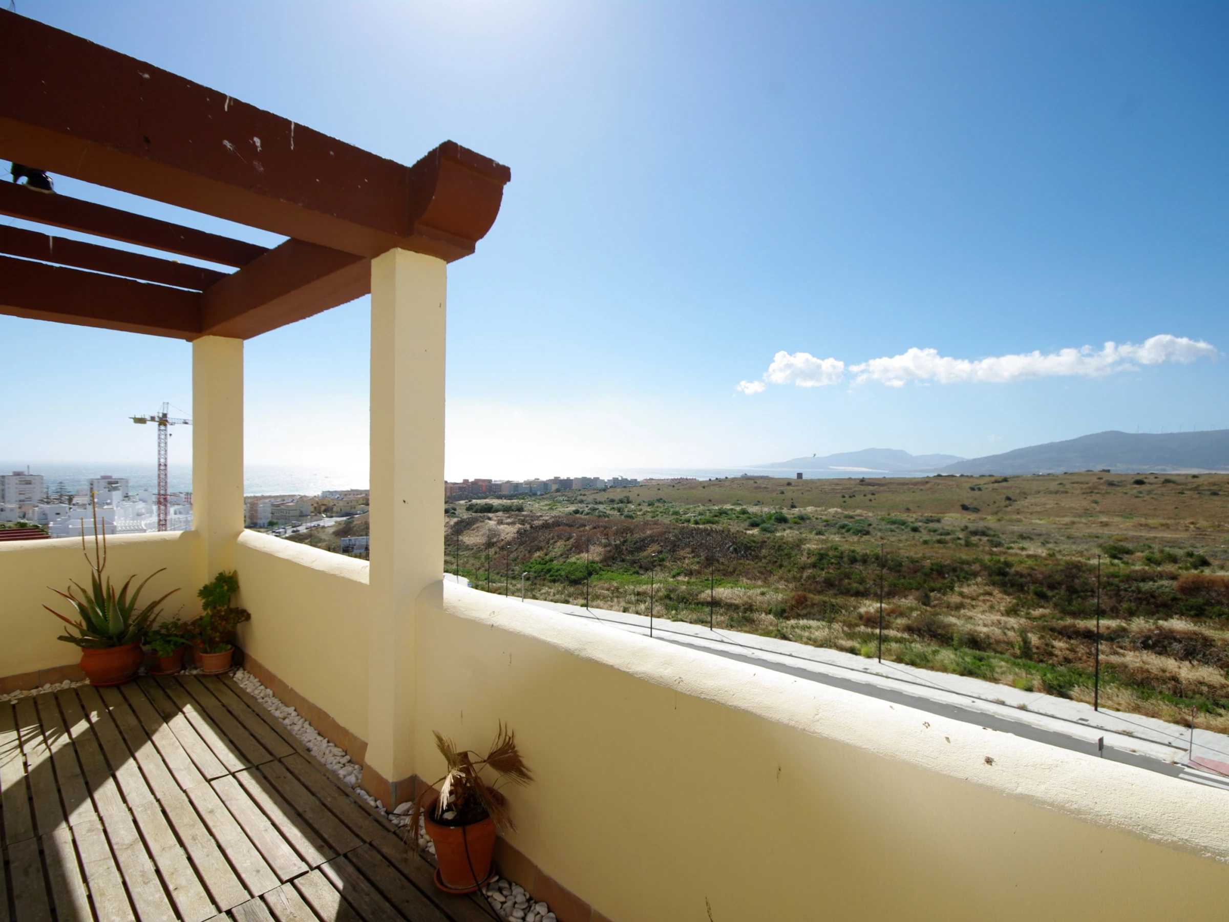 La vivienda cuenta con dos dormitorios y dos terrazas con impresionantes vistas al mar, al Parque Natural de los Alcornocales y a la campiña de Tarifa. El luminoso salón tiene acceso directo a la terraza principal, ideal para comidas al aire libre o momentos de descanso. Dispone además de un cuarto de baño con amplio plato de ducha y una cocina americana totalmente equipada.