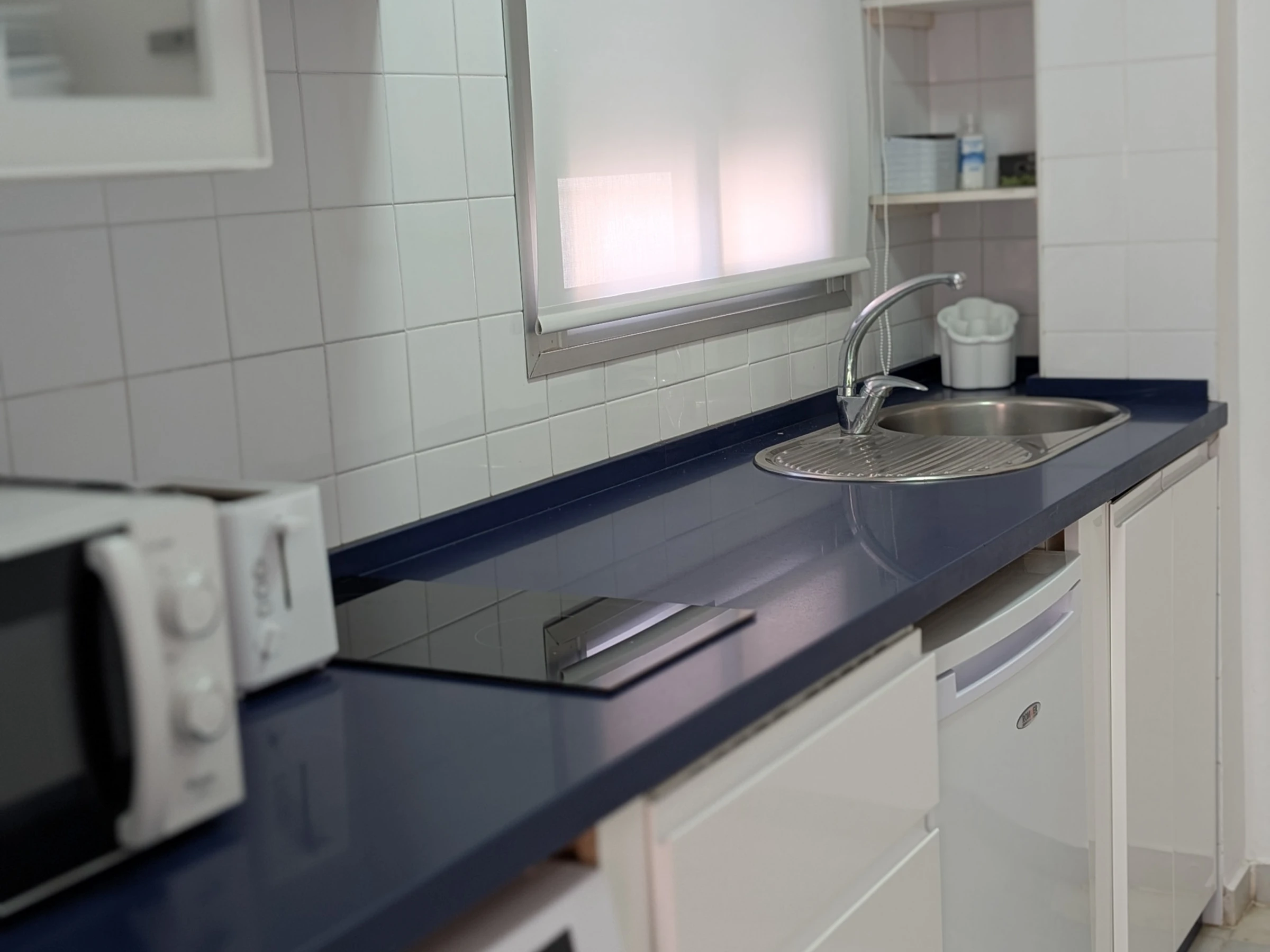 La cocina está totalmente equipada con nevera, congelador, lavadora, cafetera, microondas,etc... Además, cuenta con una zona de salón-comedor para relajarse o disfrutar de tus comidas en familia o con amigos.