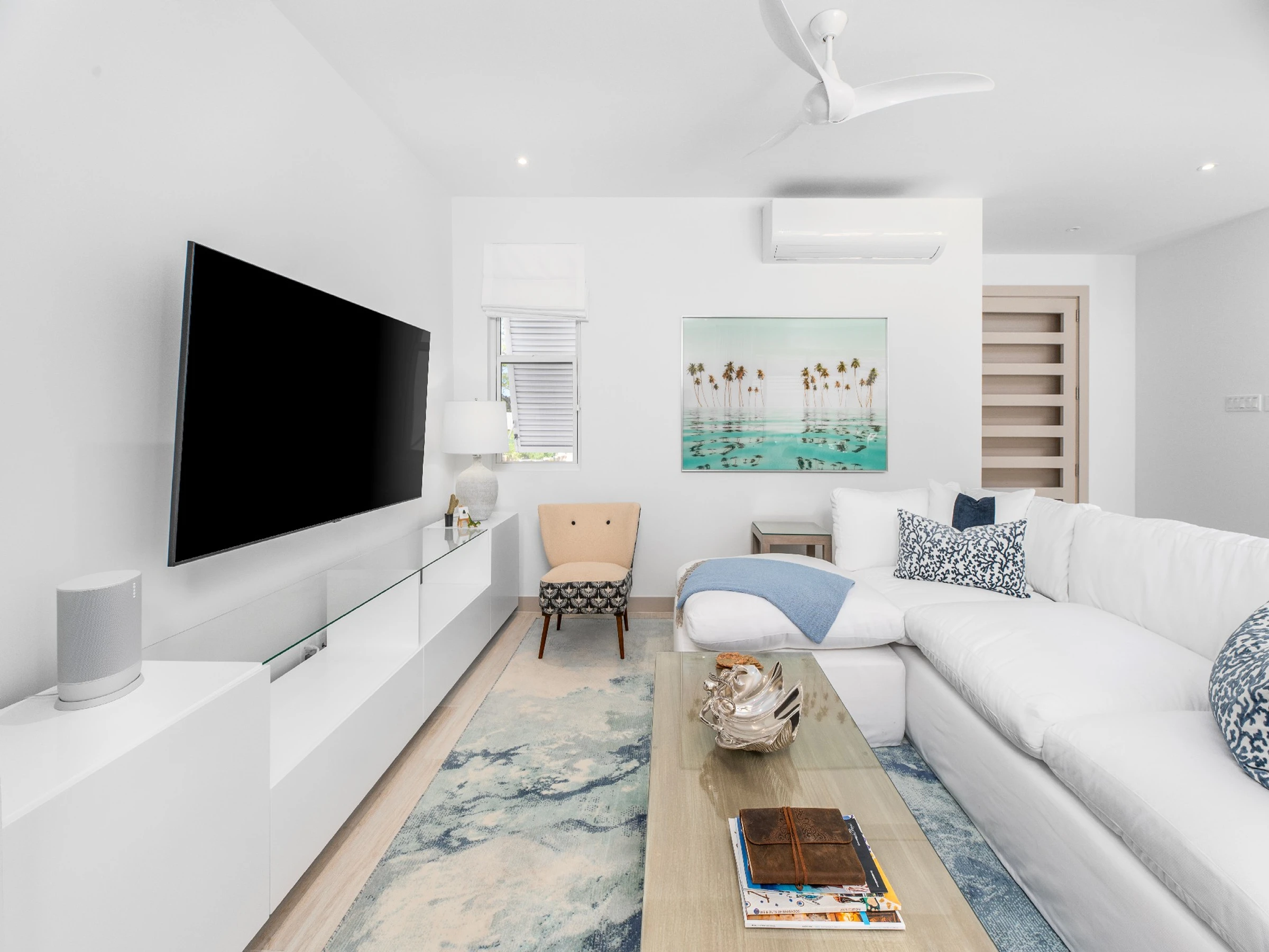 Dispone de terraza, lavadora, secadora, plancha, caja fuerte, acceso internet, gimnasio, aire acondicionado, piscina comunitaria, 1 ventilador, 1 Televisor.