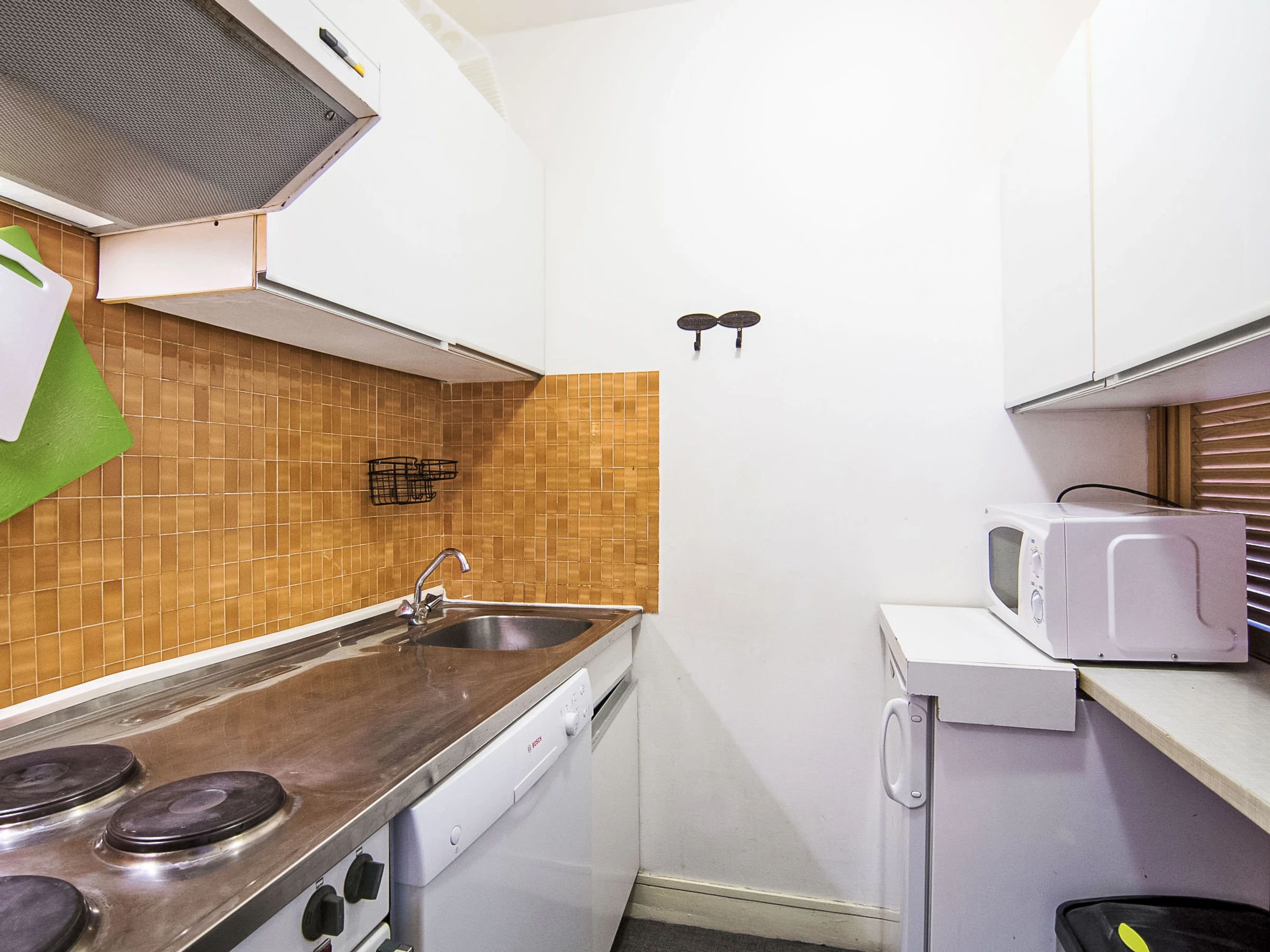 Apartamento de 2 estancias 42 m2 en el 6° piso. Salón-comedor con 1 cama-nido (2 pers. 2 x 80 cm, 190 cm de longitud), TV. Entrada con 1 cama (80 cm, 190 cm de longitud). 1 dorm. con 1 cama (80 cm, 190 cm de longitud), 1 x 2 literas (80 cm, 190 cm de longitud). Rincón-cocina (3 fogones, lavavajillas, microondas). Baño, WC separado. Balcón, orientación sur. El alojamiento dispone de: Internet (Wifi, extra). A tener en cuenta: detector de humo.