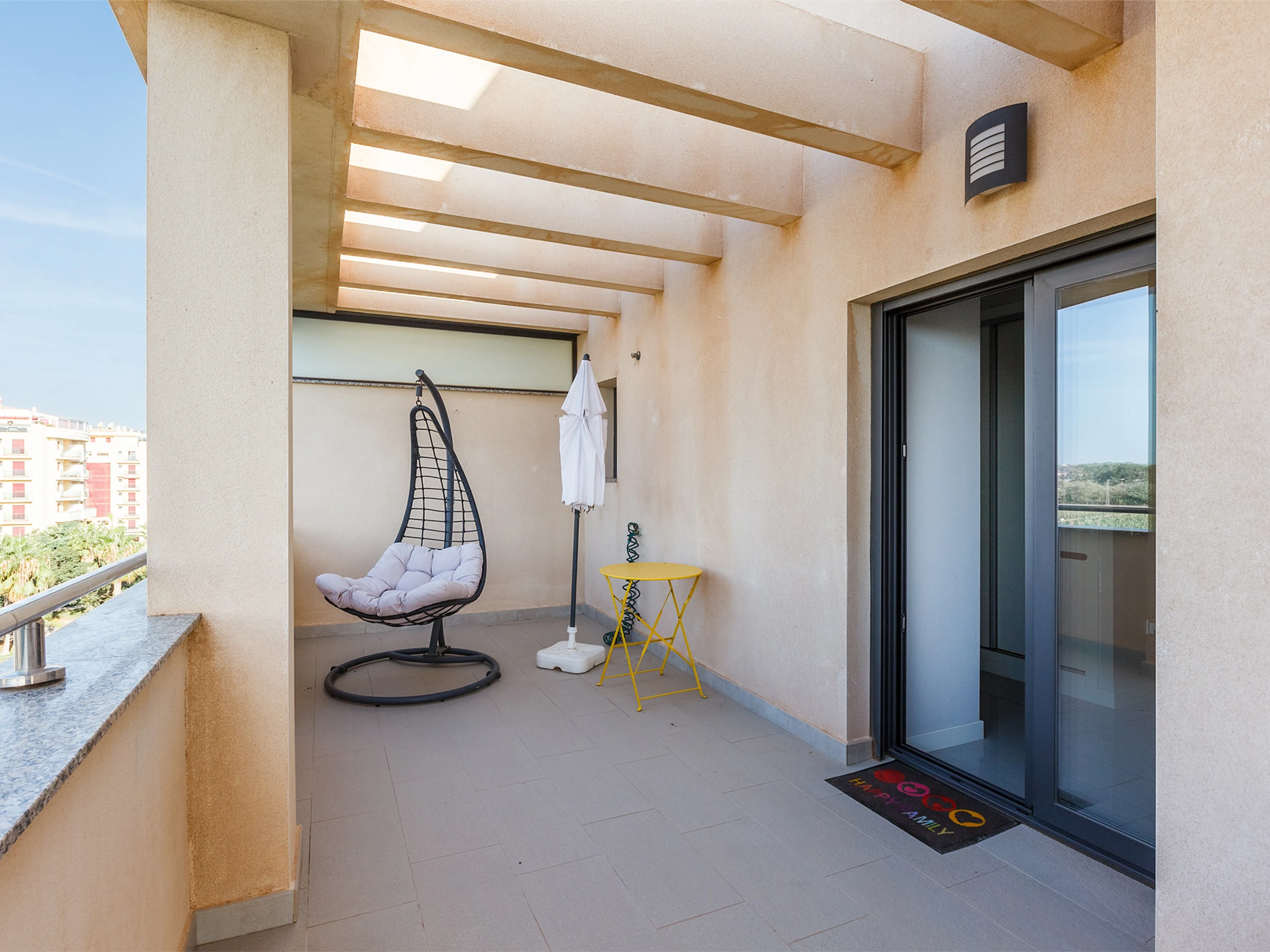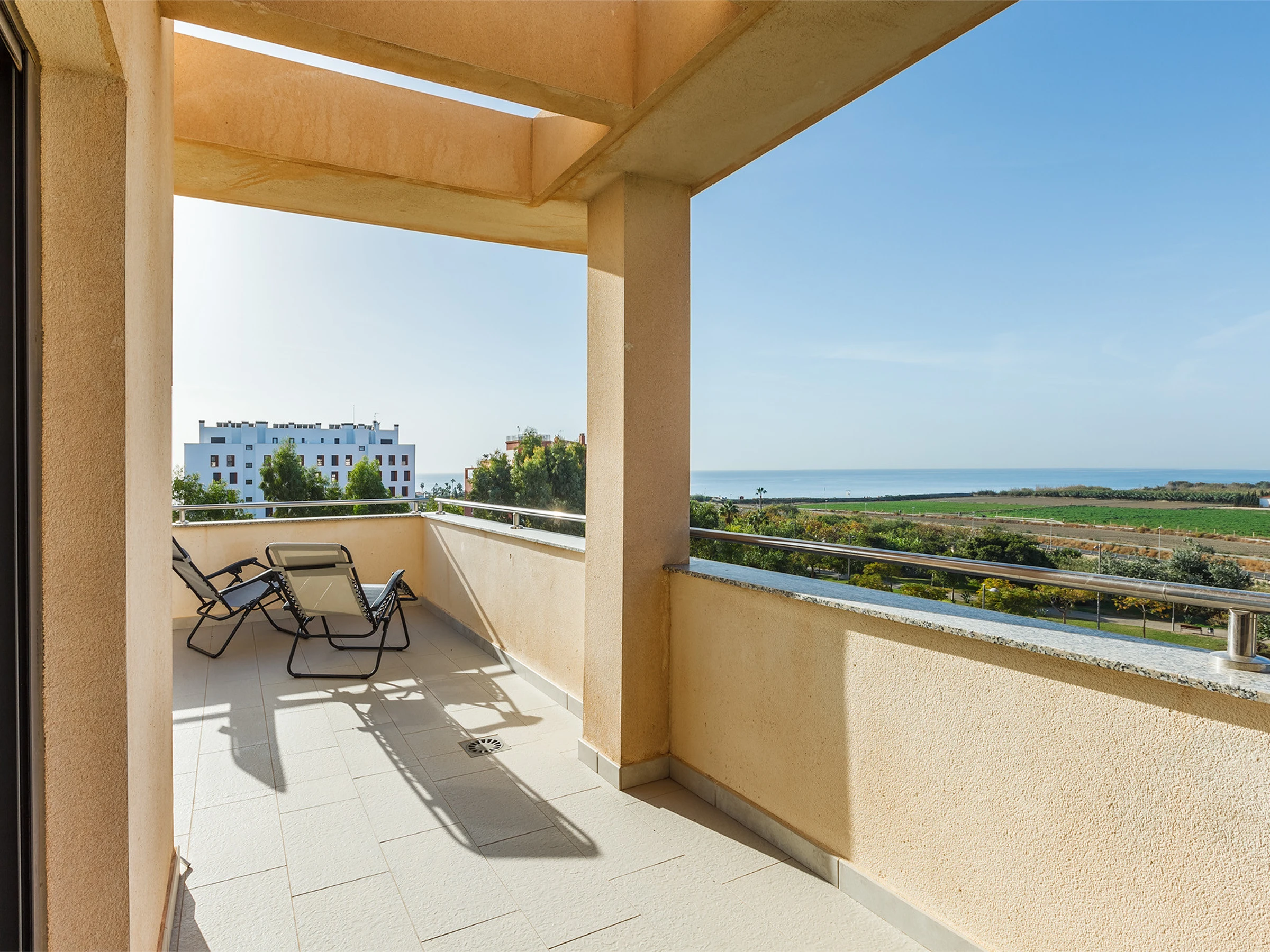 La gran terraza en forma de L es uno de los espacios más especiales del alojamiento. Perfecta para desayunar al sol, comer al aire libre o relajarse por la tarde disfrutando del clima privilegiado de Torre del Mar.