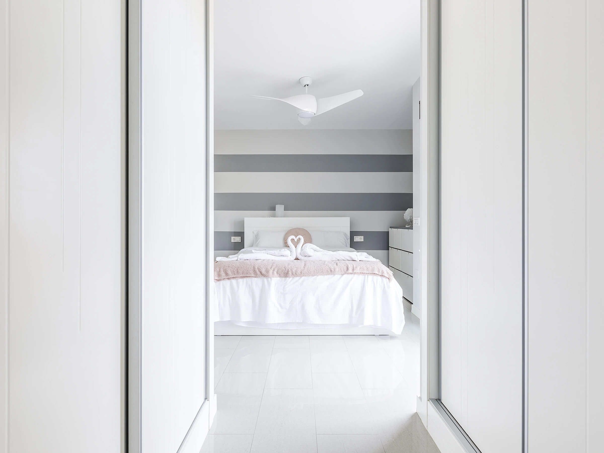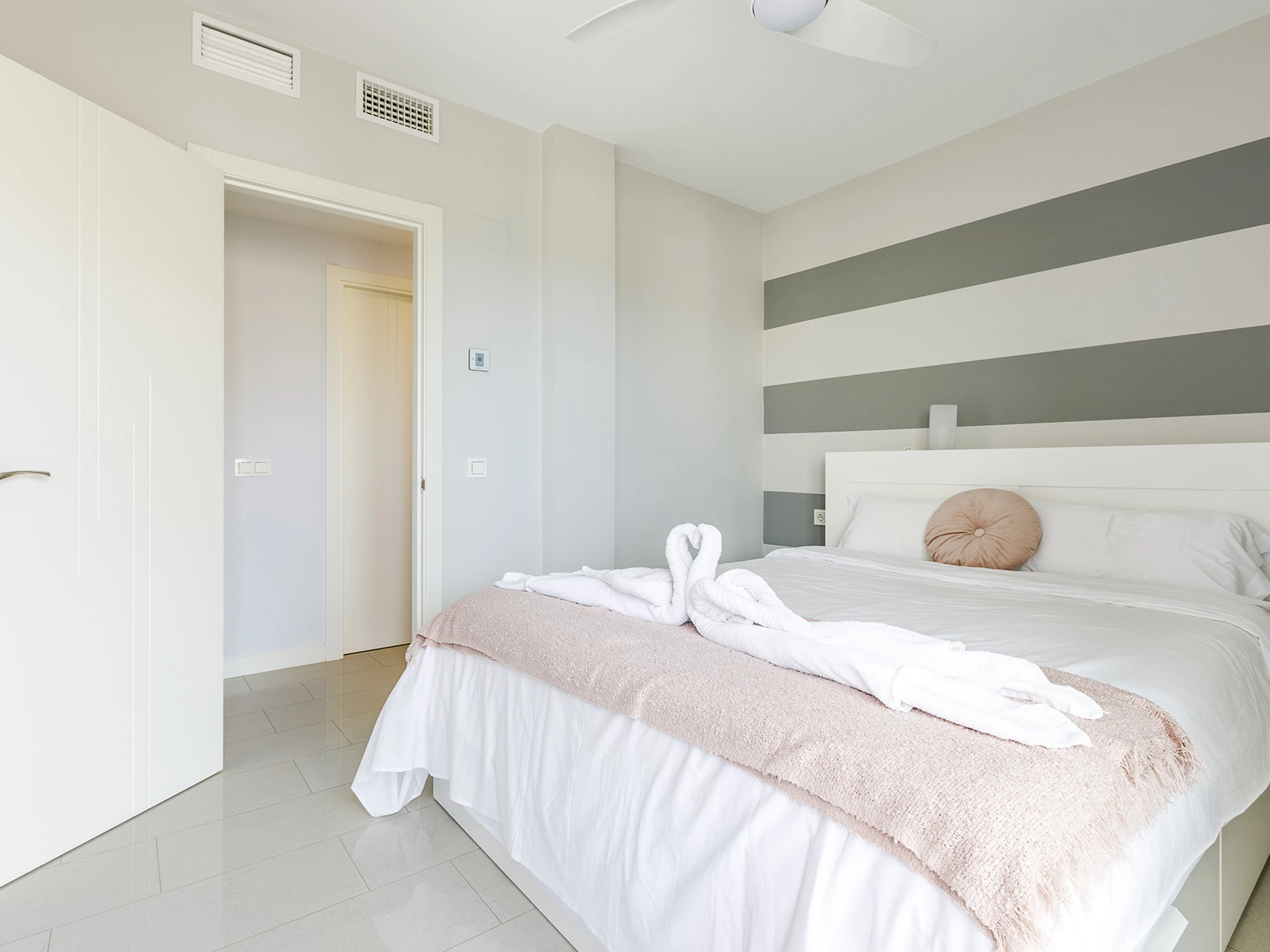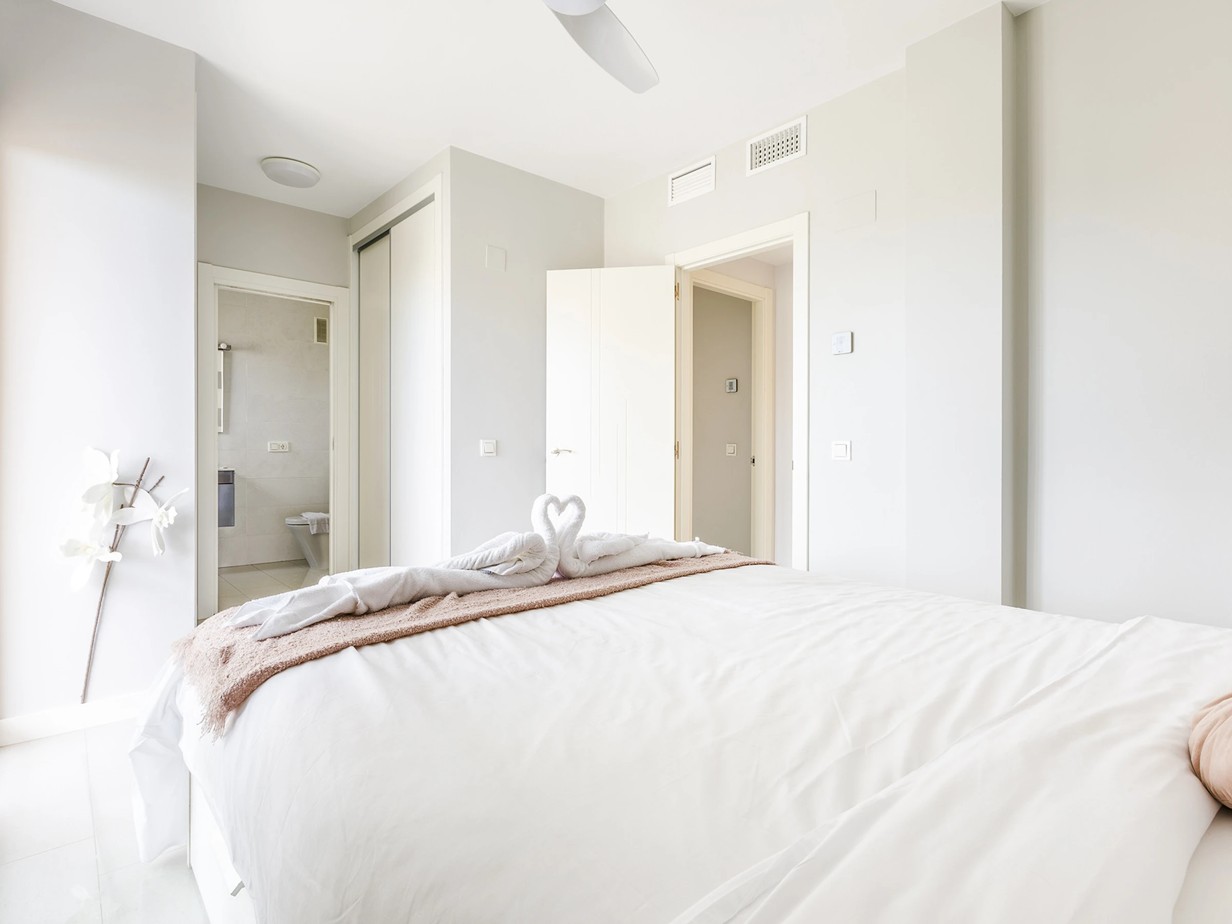 Dormitorio principal con cama doble y baño en suite