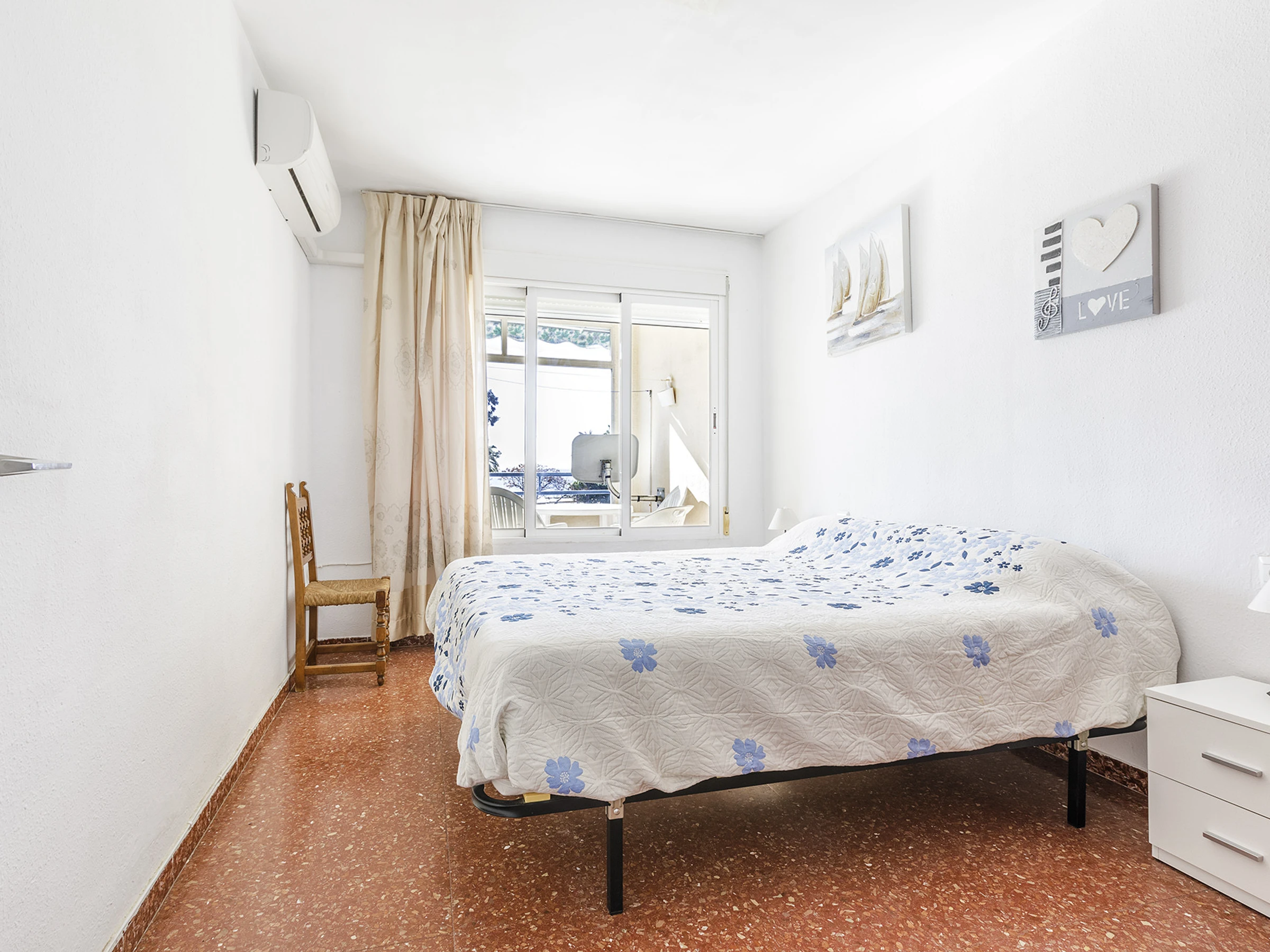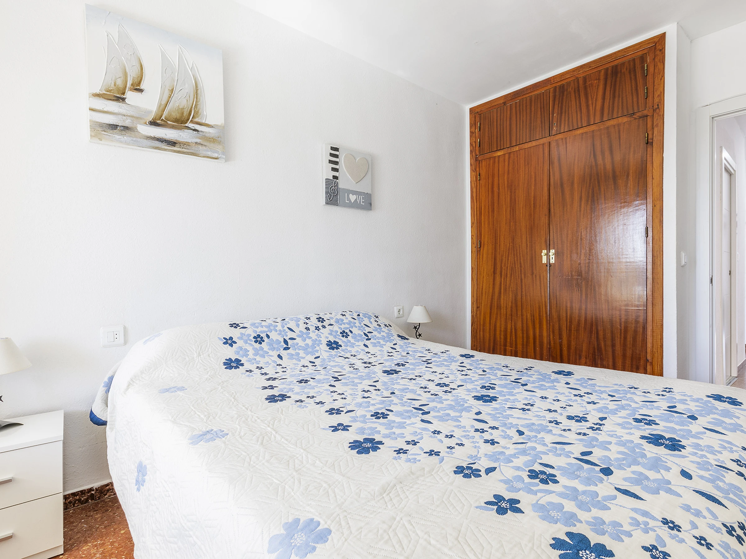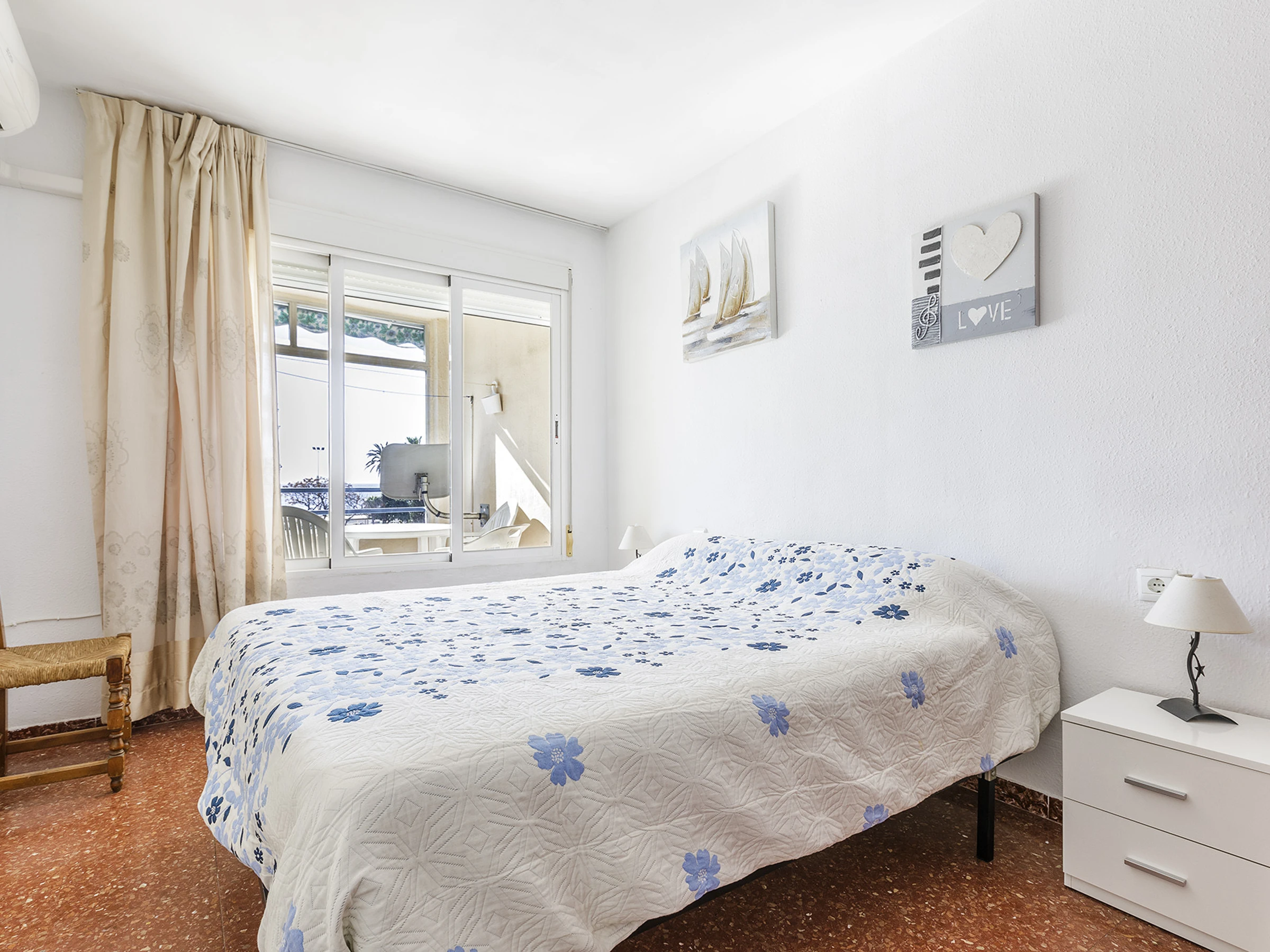 Dormitorio cómodo con cama doble, ideal para descansar después de un día de playa.