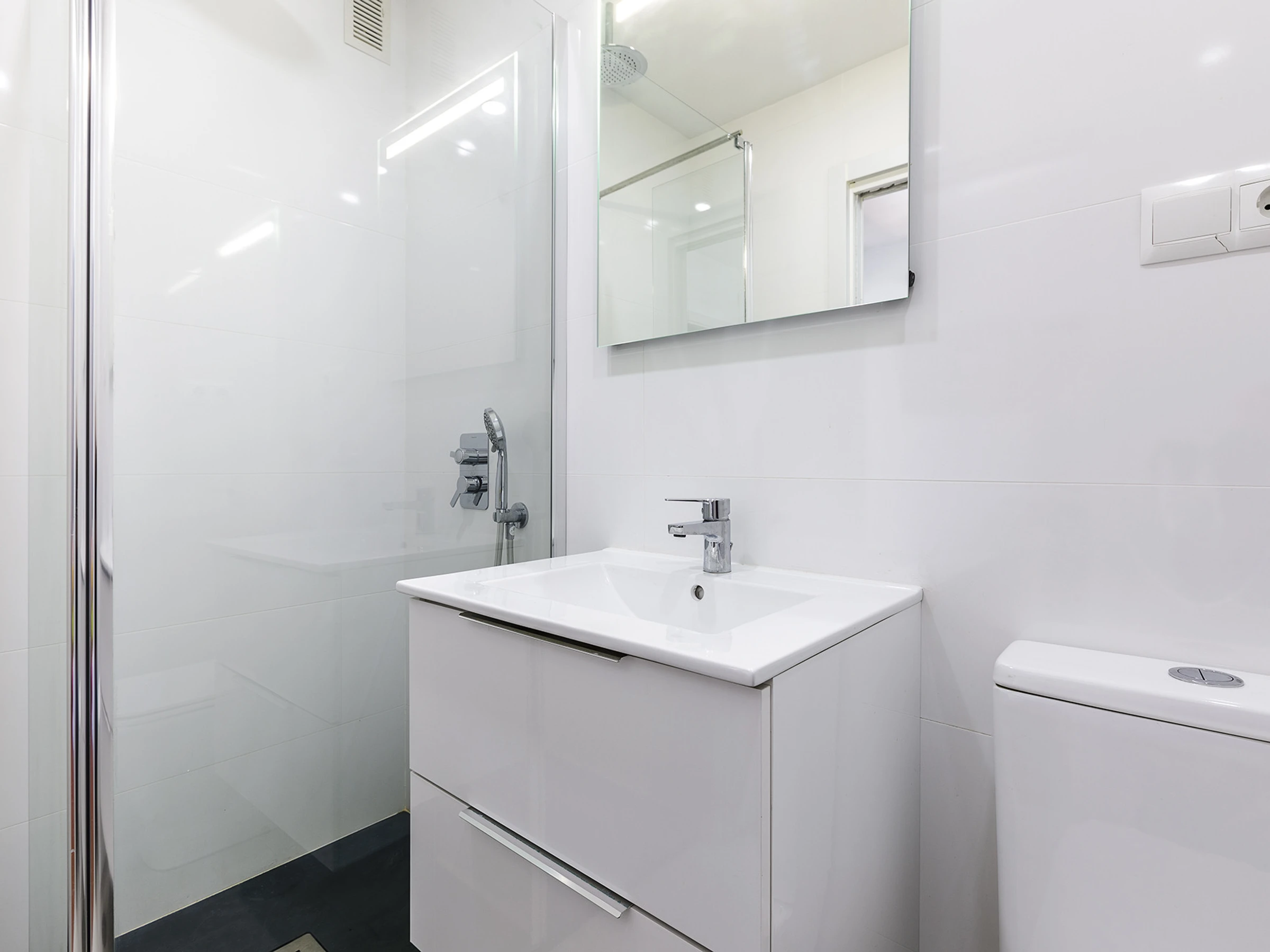 Baño completo con ducha, moderno y práctico.