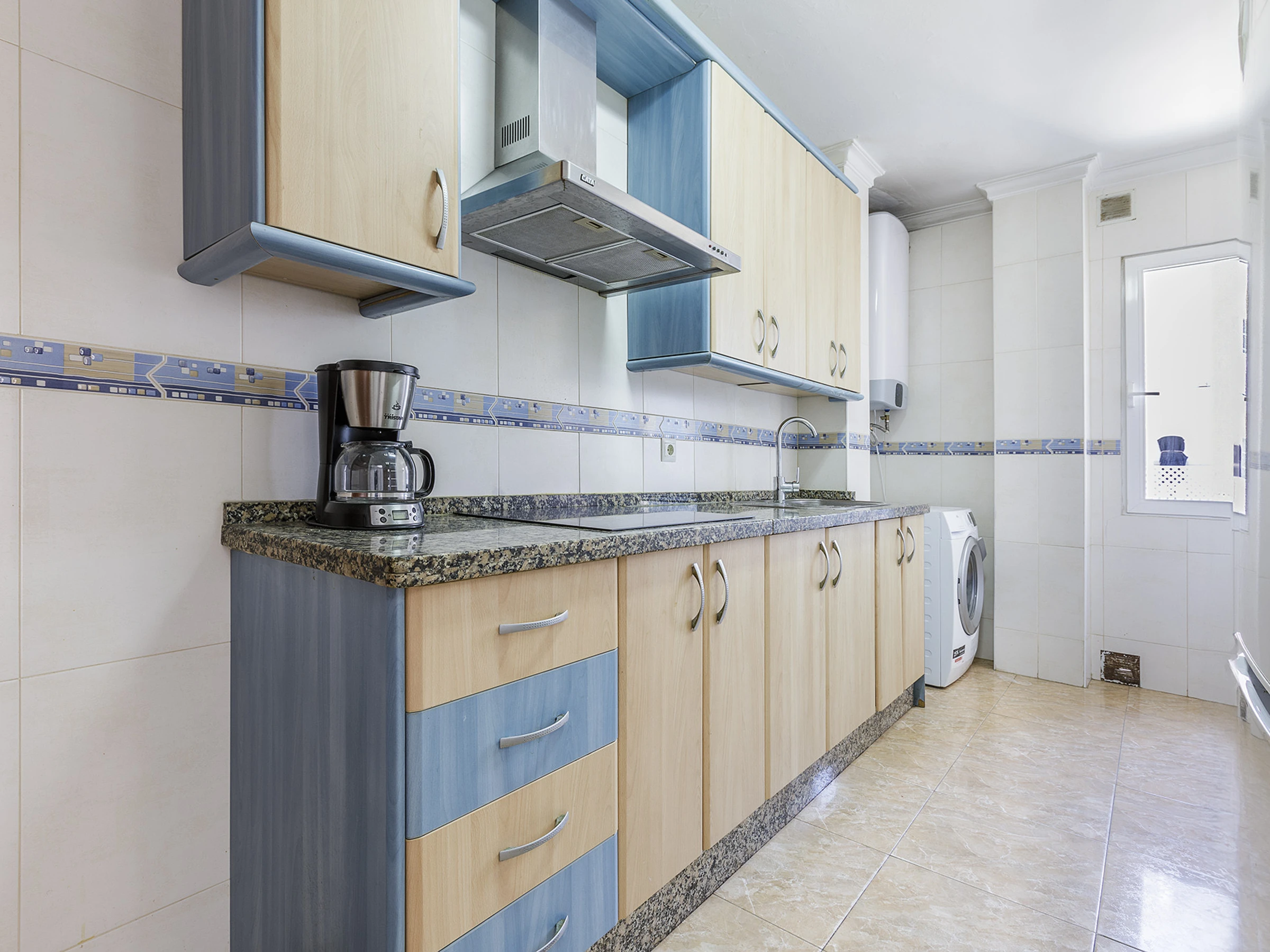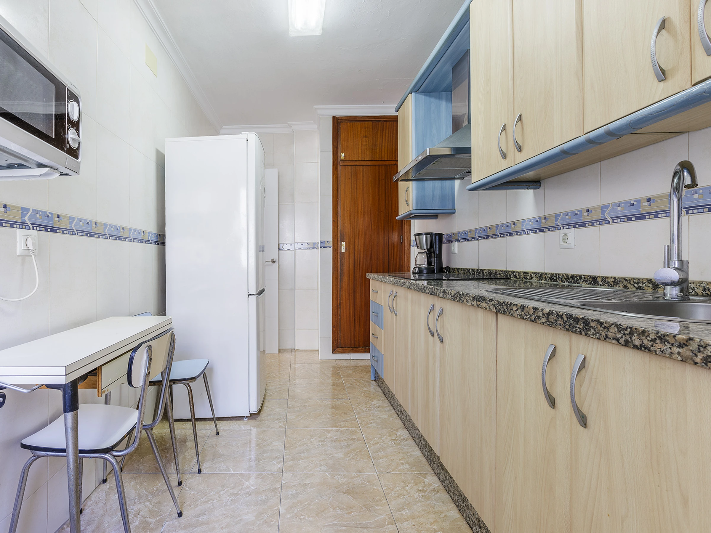 Cocina totalmente equipada con electrodomésticos y menaje completo para preparar tus comidas durante la estancia.