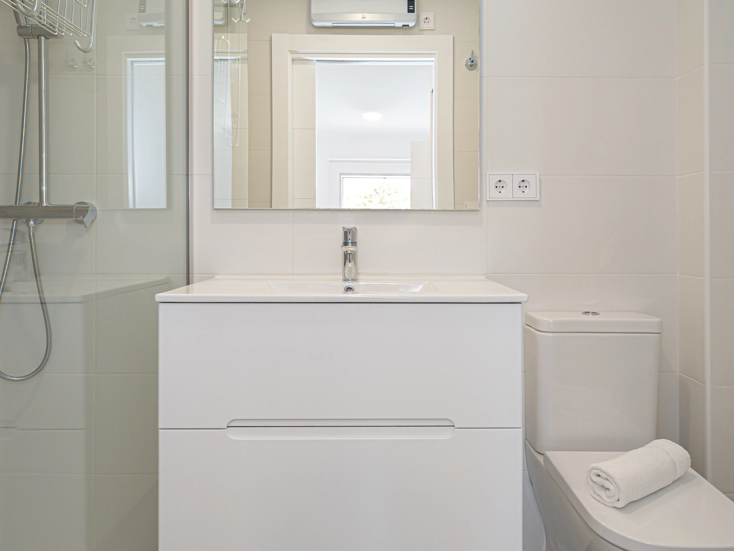 La vivienda destaca por sus amplias comodidades. Cuenta con aire acondicionado en toda la casa, calefacción central y conexión WiFi. La cocina americana está completamente equipada con electrodomésticos de última generación, incluyendo lavadora, lavavajillas, horno, microondas, cafetera, tostadora y otros utensilios esenciales.