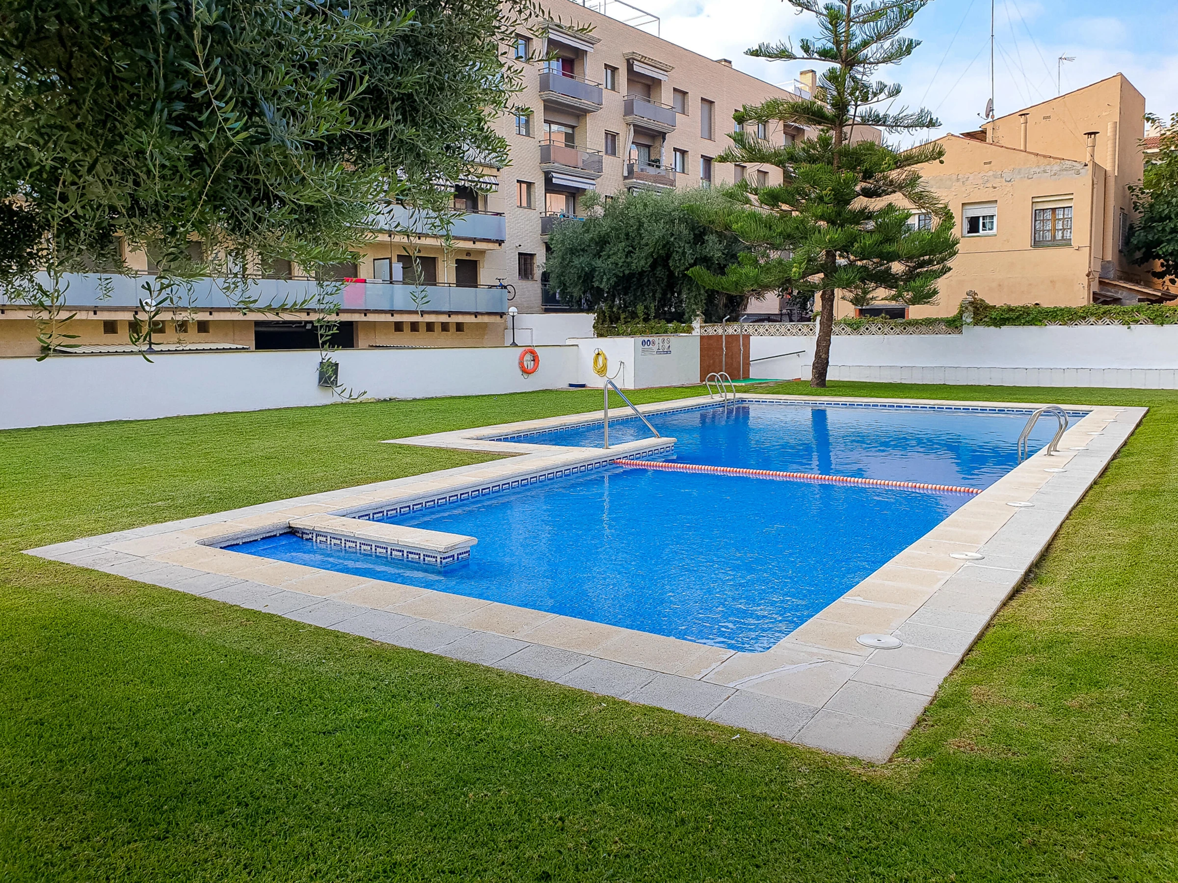 Apartamento ático con una terraza muy grande y piscina comunitaria. La vivienda dispone de dos dormitorios dobles (uno con cama doble y otro con una litera para 2 personas), un baño con ducha y un salón comedor con cocina americana que dispone del lavavajillas. De la zona del salón se accede a una terraza muy grande de 80 m2 con muebles de jardín y una barbacoa portatil, donde podrán disfrutar de las comidas al aire libre a la sombra del toldo fijo. Para más comodidad el apartamento dispone del aire acondicionado en la zona del comedor-cocina y en todas las estancias hay un ventilador de techo. También podrán utilizar una plaza privada grande de aparcamiento que se encuentra al lado del edificio. Además de eso tendrán acceso a la bonita piscina comunitaria rodeada de cesped, que se encuentra al otro lado de la calle atravesando el edificio vecino. Este alojamiento tiene una ubicación perfecta, ya que se encuentra a dos pasos del centro del pueblo con todos sus servicios y al mismo tiempo a menos de 300m caminando de la playa. Disfruten en familia de unas vacaciones perfectas al lado del mar! No se aceptan reservas de grupos formados por gente joven entre los 16 y 26 años.