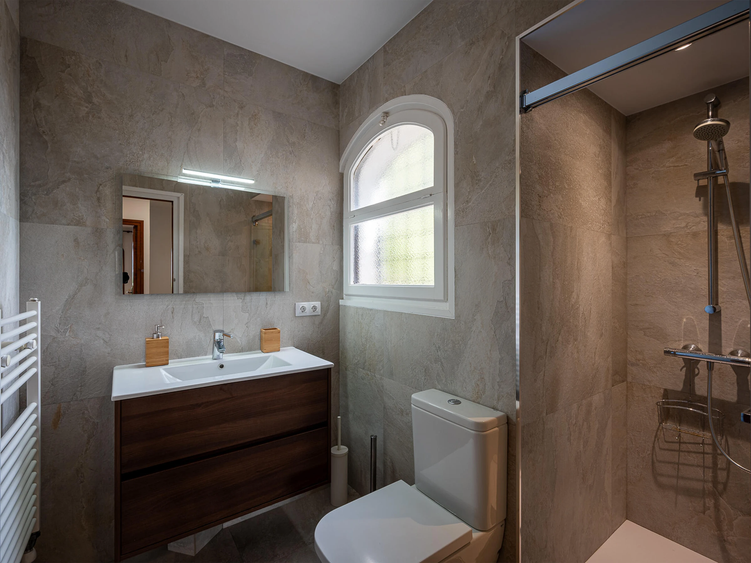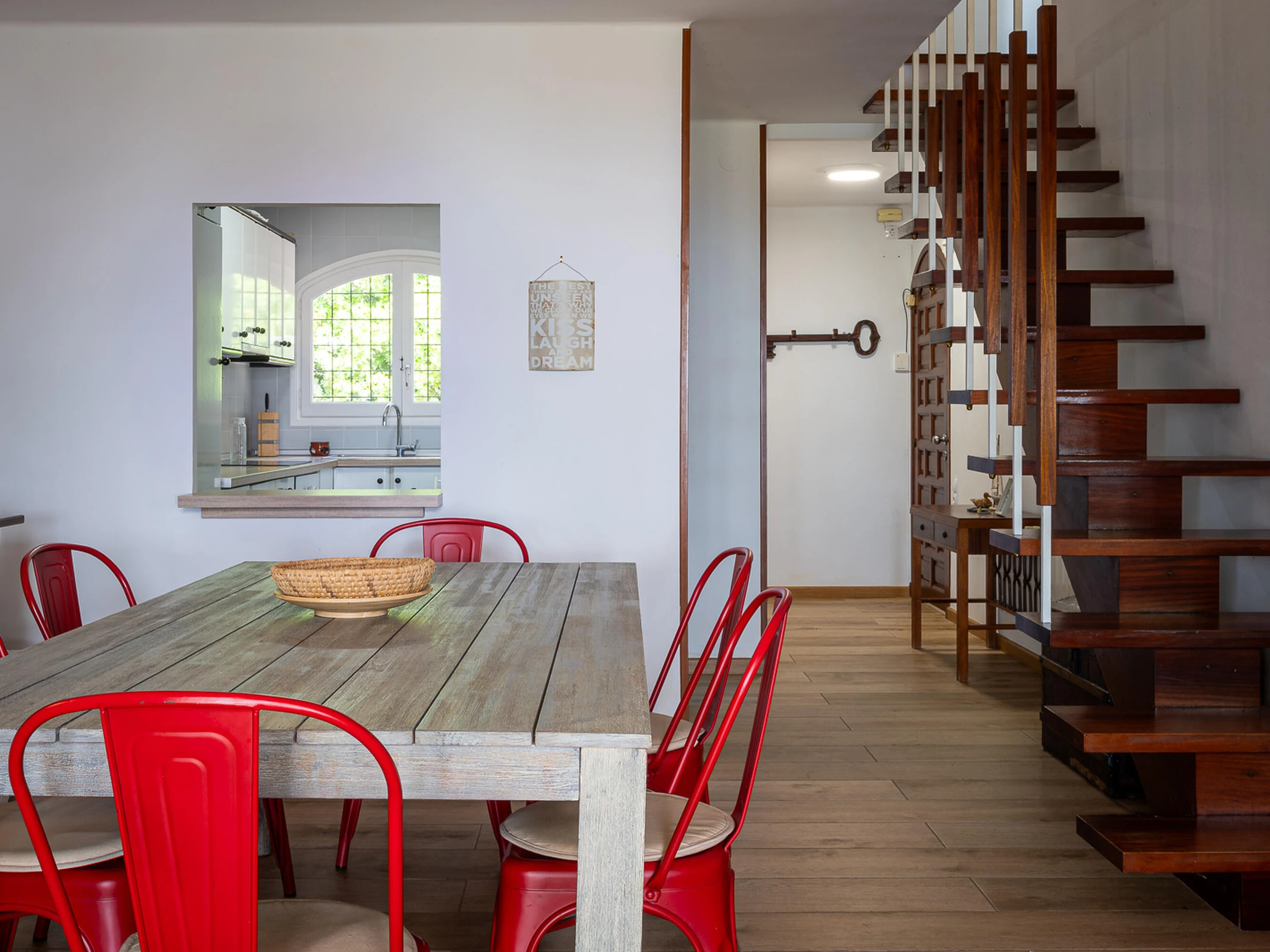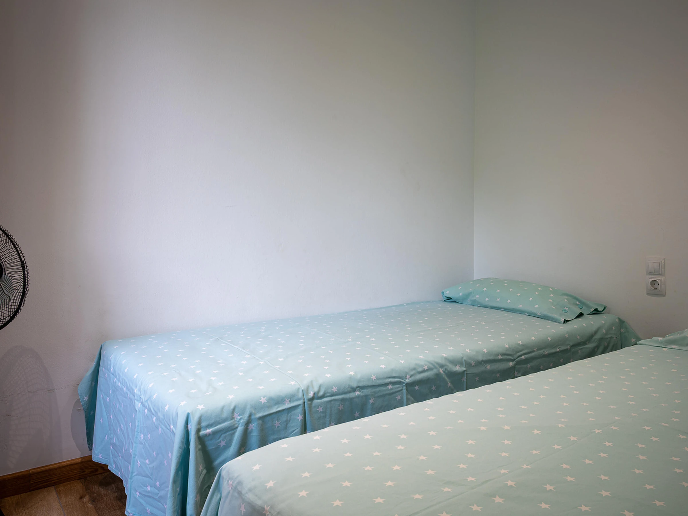 AT084 Roquer: Casa adosada en la zona de las rocas del barrio Els Munts, una zona muy tranquila y con fantásticas vistas al mar. Entre las 4 casas comparten la piscina rodeada de cesped y desde donde se puede ver el mar. La casa tiene salida hacia la piscina desde el jardín privado. En la planta baja se encuentran el salón comedor, una cocina muy bien equipada (incluido el lavavajillas) y un baño con ducha. Subiendo la escalera nos encontramos los 4 dormitorios (uno con cama de matrimonio y tres con 2 camas individuales en cada uno) y otro baño con ducha. En dos de los dormitorios que salen a la terraza con vistas a la piscina y al mar, hay splits del aire acondicionado, igual que en el salón comedor. En otros 2 dormitorios hay ventiladores de pie. En 8 min caminando por un camino de costa, disfrutando de las vistas muy bonitas, llegan a la playa La Paella (550m) de Torredembarra. La casa no dispone de la plaza de aparcamiento privada, pero la calle es sin salida y normalmente aparcan solamente los 4 vecinos. No se aceptan reservas de grupos formados por gente joven entre los 16 y 26 años.