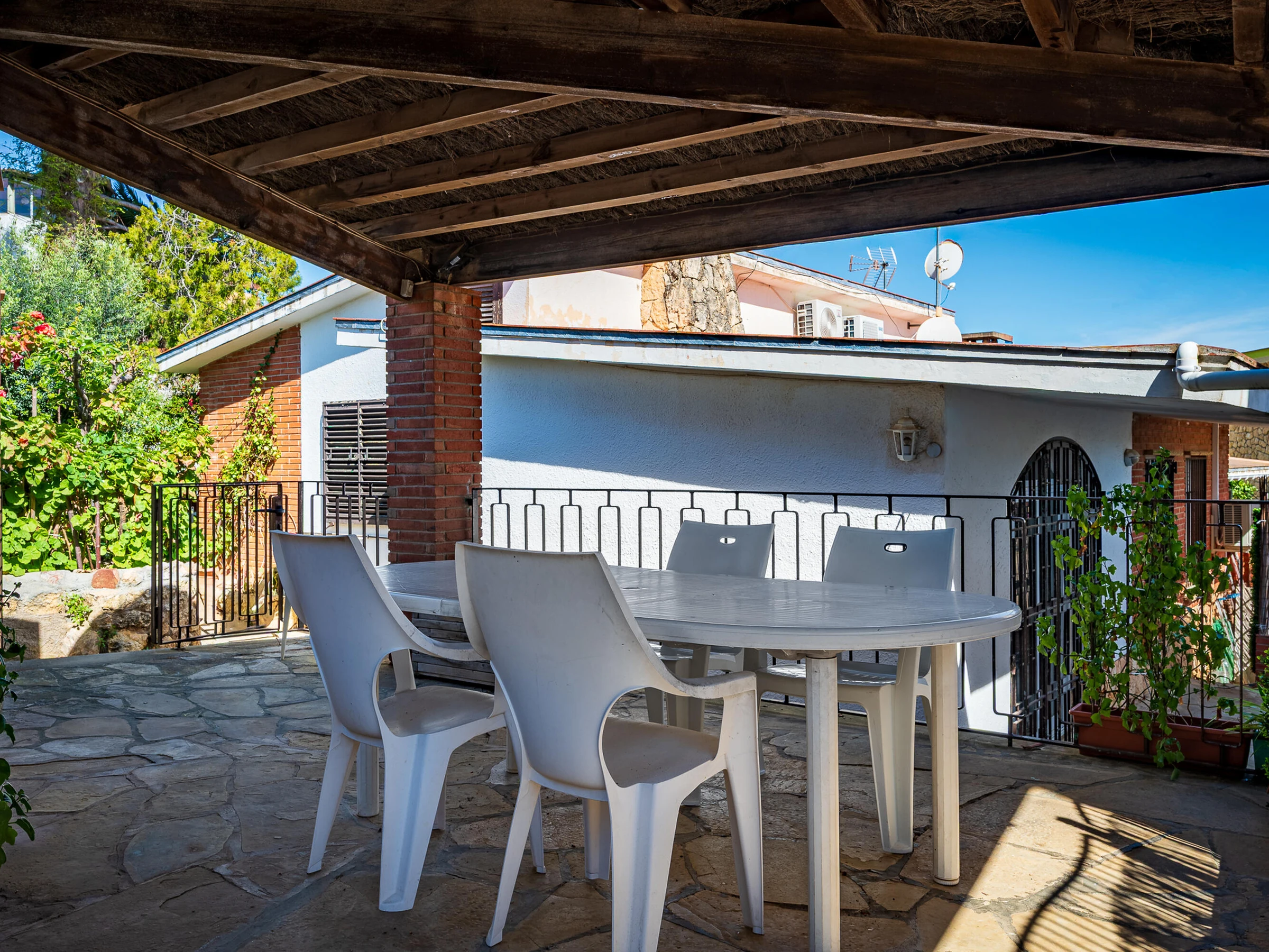 AT050 Firmament: Bonita casa ideal para disfrutar del verano, con un acogedor porche perfecto para comidas y cenas al aire libre. La vivienda cuenta con aire acondicionado en todas las estancias, garantizando el máximo confort durante toda la estancia. Dispone de dos habitaciones: una con cama de matrimonio y otra con dos camas individuales, equipada además con ventilador de techo. La cocina está totalmente equipada e incluye una amplia nevera de una sola puerta, además de un congelador de gran capacidad ubicado en el comedor. La propiedad ofrece un baño completo con ducha y un aseo adicional para mayor comodidad. Ubicada en una zona tranquila, se encuentra a tan solo 5 minutos de la playa, lo que la convierte en una opción perfecta para relajarse y disfrutar del entorno. No se aceptan reservas de grupos de jóvenes entre 16 y 26 años.