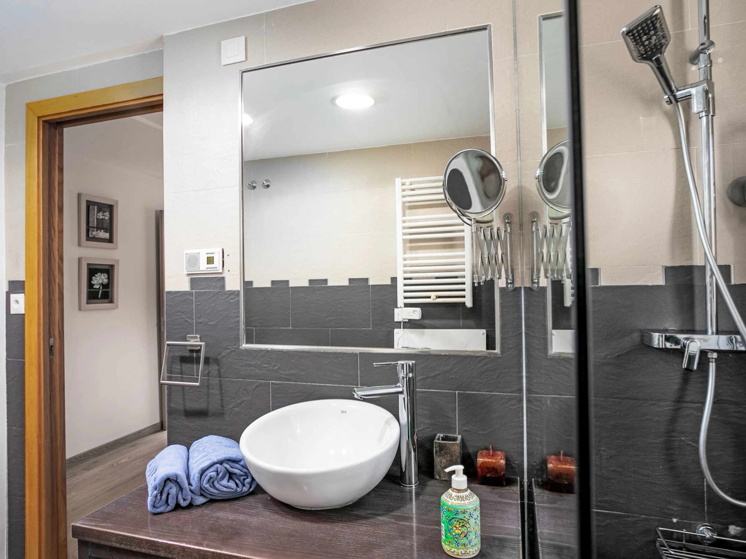 "Pinillo", apartamento de 4 estancias 100 m2, en el ático. Vivienda adecuada para 4 adultos + 2 niños. Espacioso y luminoso, con mobiliario bonito y moderno: salón-comedor con mesa de comedor, TV satélite, aire acondicionado y bomba de calor, caliente. Salida a la terraza. 1 dorm. doble con 1 cama de matrimonio (150 cm), aire acondicionado y bomba de calor, caliente. Salida a la terraza. 1 dorm. doble con 2 camas (90 cm). 1 dorm. doble con 1 cama-nido (2 x 80 cm, 160 cm de longitud). Cocina (horno, lavavajillas, 3 Placas de inducción, tostadora, hervidor de agua eléctrico, microondas, congelador, cafetera eléctrica). 2 ducha/WC. Calefacción eléctrica. Terraza grande 60 m2. Muebles de terraza, barbacoa. Vista panorámica. El alojamiento dispone de: lavadora, plancha, secador de pelo. Internet (Wifi, gratis). Plaza de aparcamiento n. 24. [hidden] // Reg. Nr.: ESFCTU0000290210007428320000000000000000VUT/MA/212690