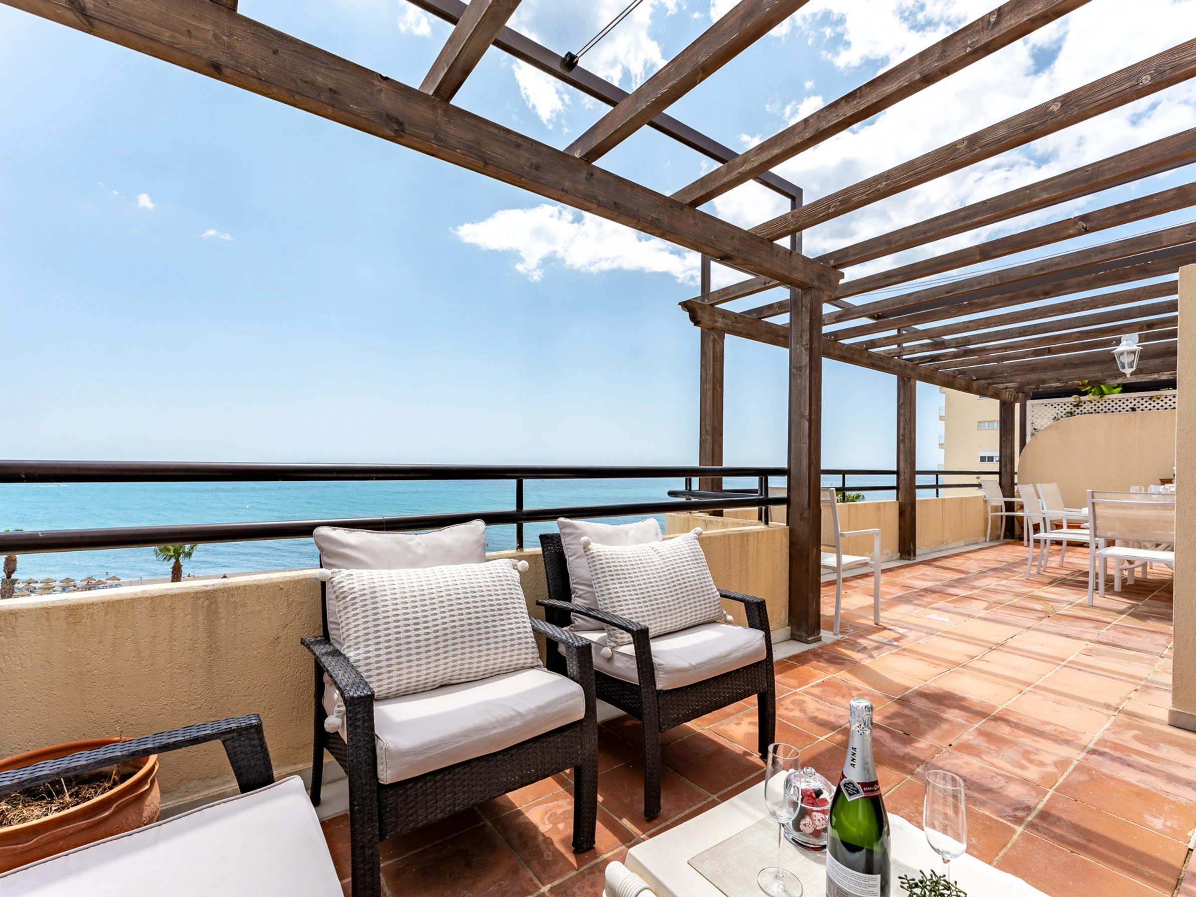 Cuenta con un gran salón con aire acondicionado y Wifi, una maravillosa terraza con vistas al mar, donde podrás deleitarte con impresionantes puestas de sol y con la posibilidad de hacer barbacoa.
