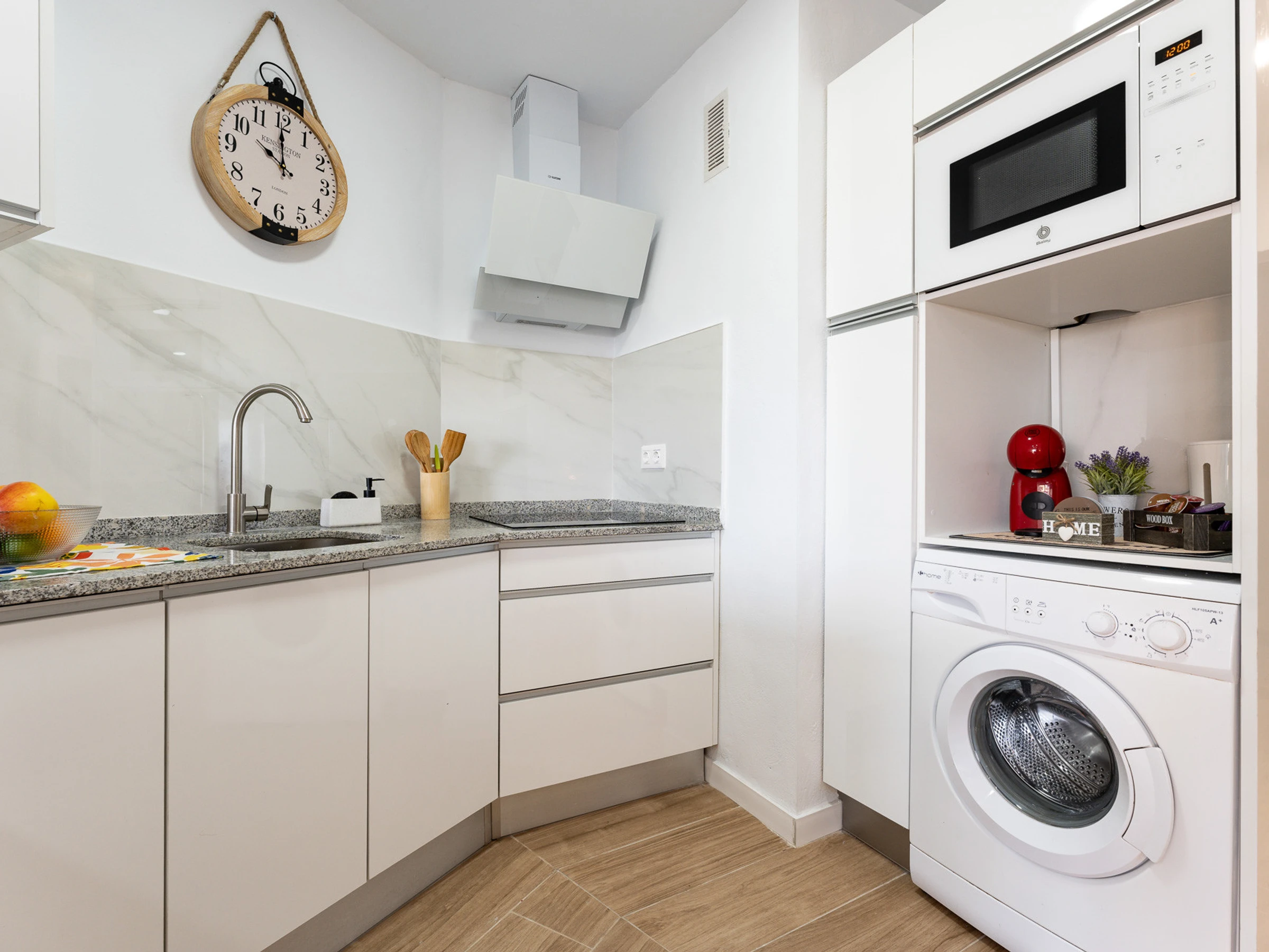 El apartamento se encuentra totalmente equipado para ofrecer a nuestros huéspedes una estancia inolvidable. Es un estudio con una cama doble, y un baño moderno con una amplia ducha. Dispone de aire acondicionado, Wi-Fi, y televisión. La cocina está equipada con nevera, microondas, lavadora, tostadora, cafetera, vajilla/cubertería y utensilios de cocina y elementos básicos como secador y plancha. Este alojamiento dispone de ascensor, parking al aire libre y piscina comunitaria para el disfrute de todos.