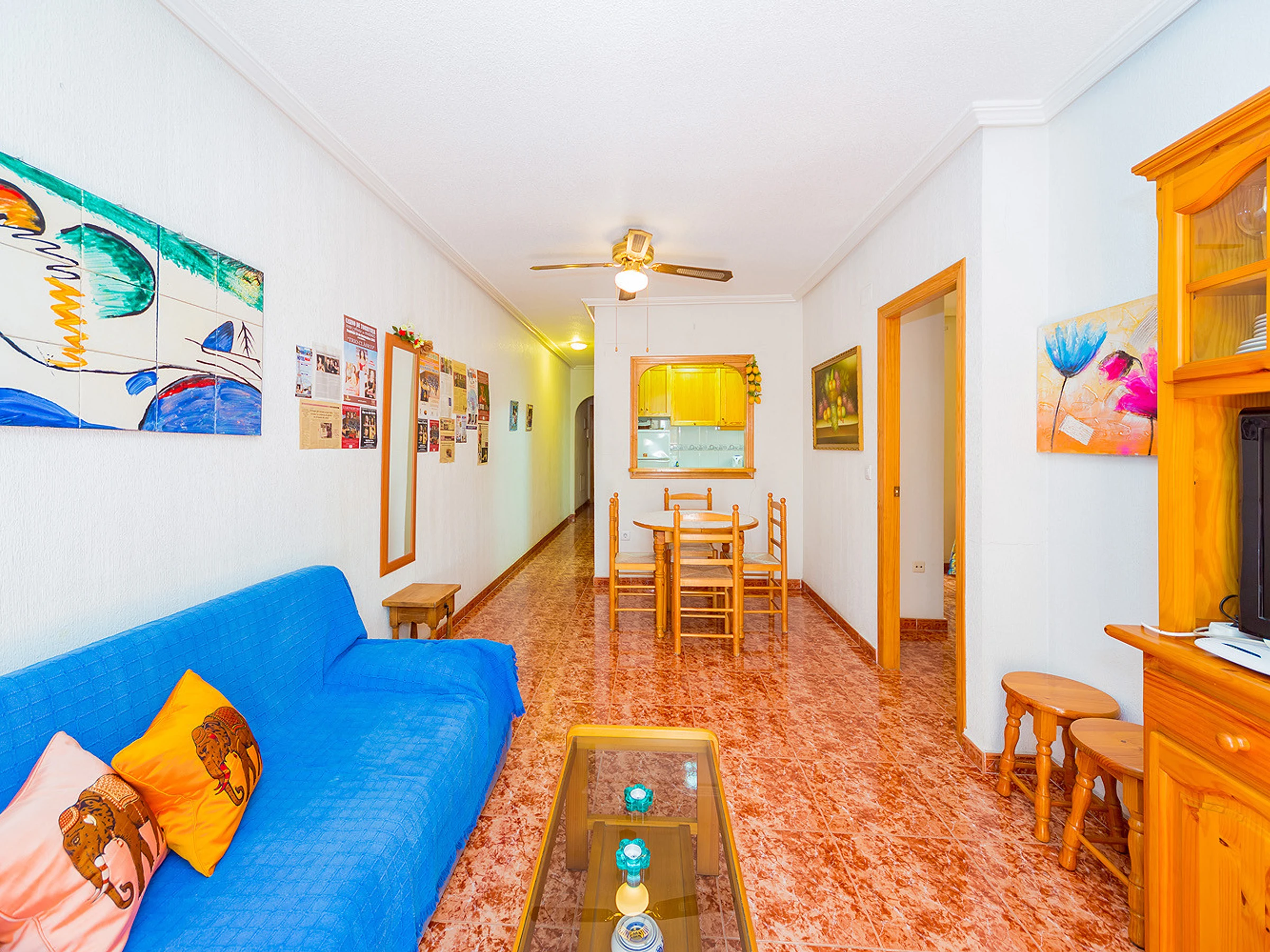 Cómodo apartamento de 2 dormitorios. Situado en una de las calles principales de la ciudad, cerca del mar. Tiendas, bares y restaurantes a poca distancia. En el edificio se encuentra el supermercados "Consum". El apartamento consta de dos dormitorios y un amplio salón con balcón. Tiene todo lo necesario para vivir: una cocina totalmente equipada con electrodomésticos, vajilla, ropa de cama y toallas, plancha, secador de pelo, aire acondicionado en el salon. El apartamento dispone de TV (española), Wi- Fi. Tiene capacidad para 5 personas.