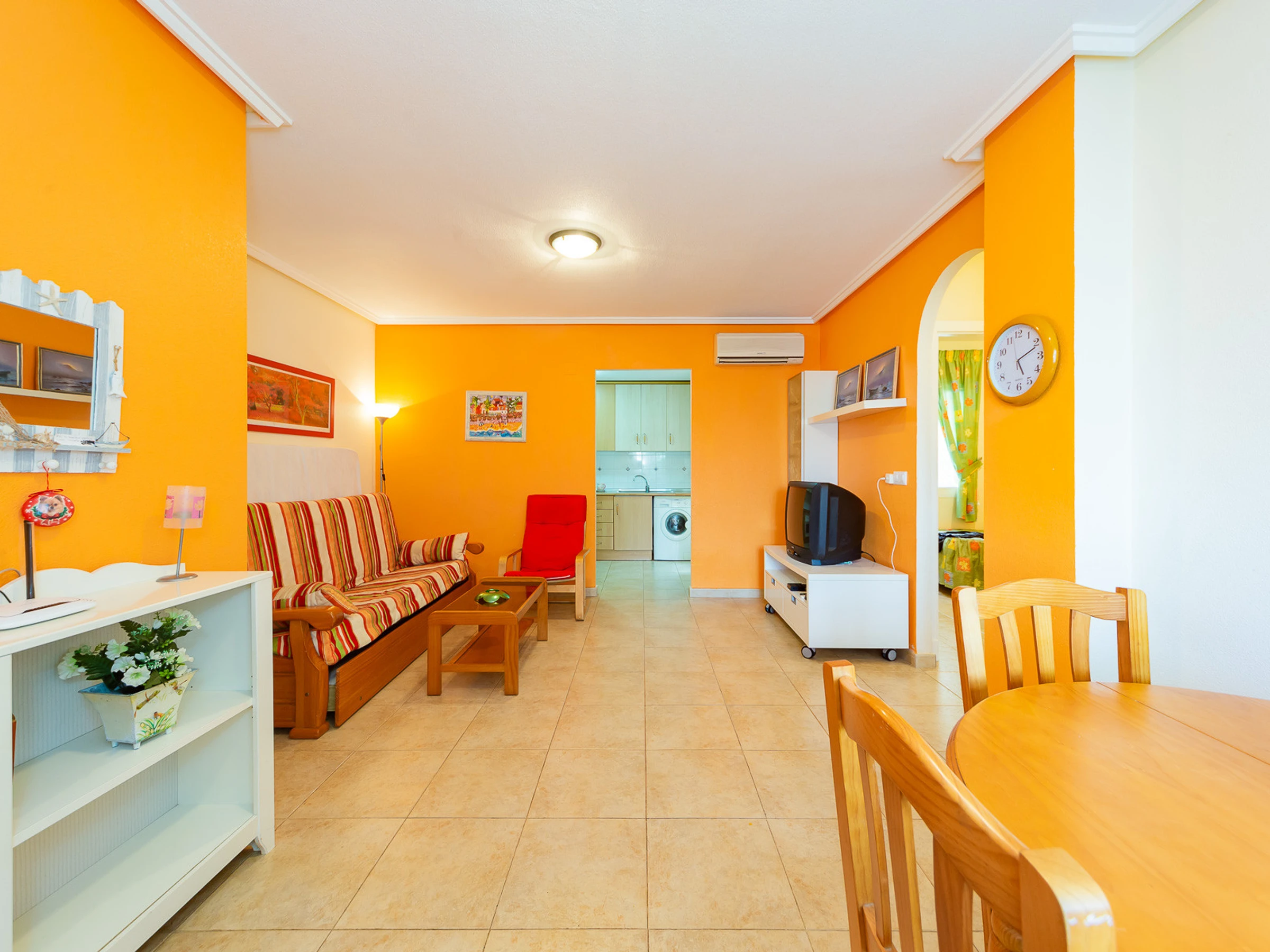 Ofrecemos en alquiler bungalow en una urbanización con piscina en el área de Aguas Nuevas Mata. Apartamento de 59 m2 consta de una sala de estar, dos dormitorios, una cocina separada y un baño. Hay un pequeño patio con muebles de verano. El apartamento tiene todo lo necesario para la vida y el descanso: muebles, electrodomésticos (incluida la cafetera), vajilla, ropa de cama y toallas. Televisión española. La vivienda está equipada con aire acondicionado. La vivienda esta muy bien ubicada. El supermercado Mercadona está a unos 200 metros. También hay bares y cafeterías cerca. Al mar unos 650 metros, a la playa de La Mata a unos 950 metros. Opción de alojamiento para hasta 4 personas (sin animales). ¡Está estrictamente prohibido fumar en el interior!