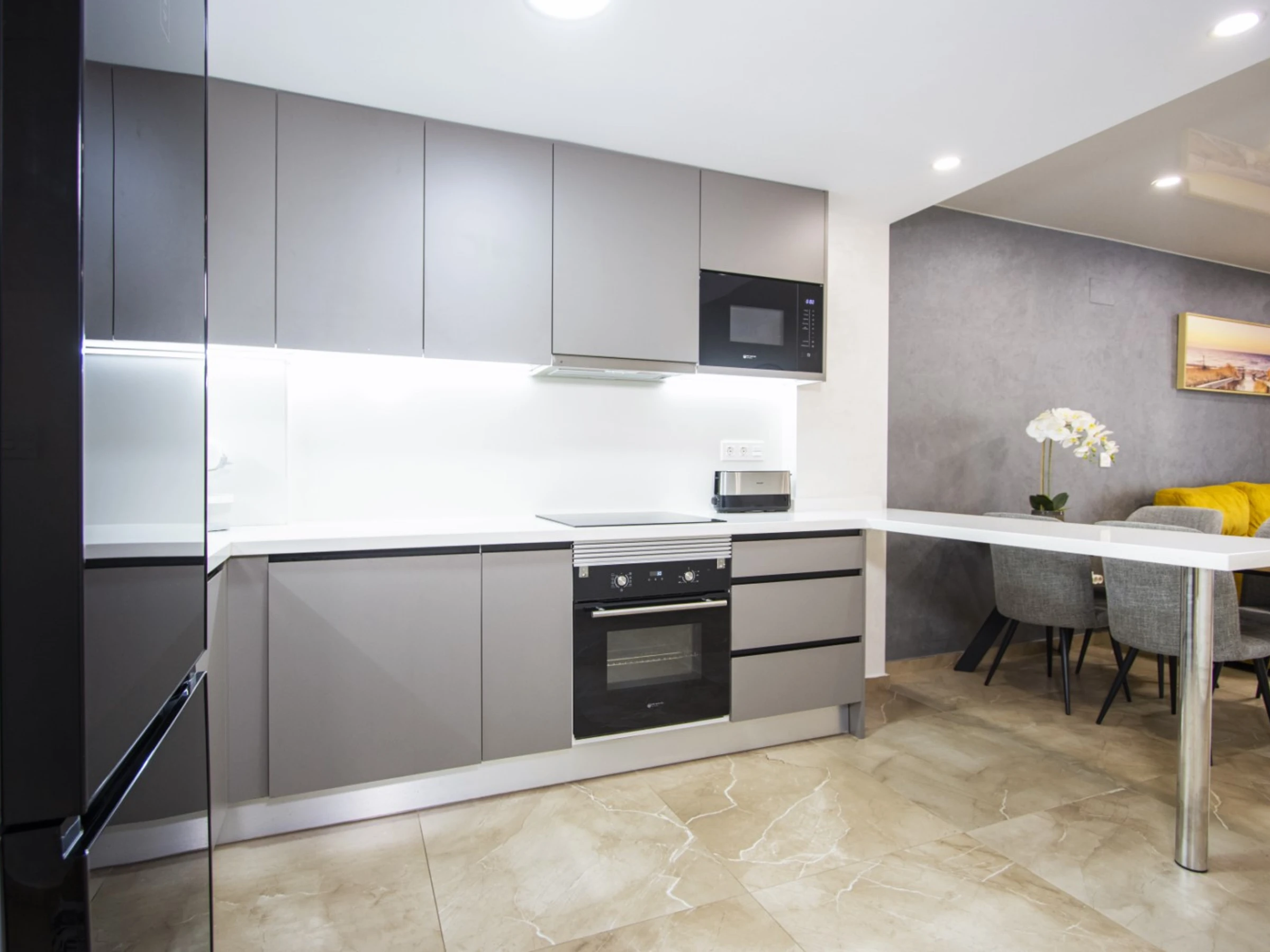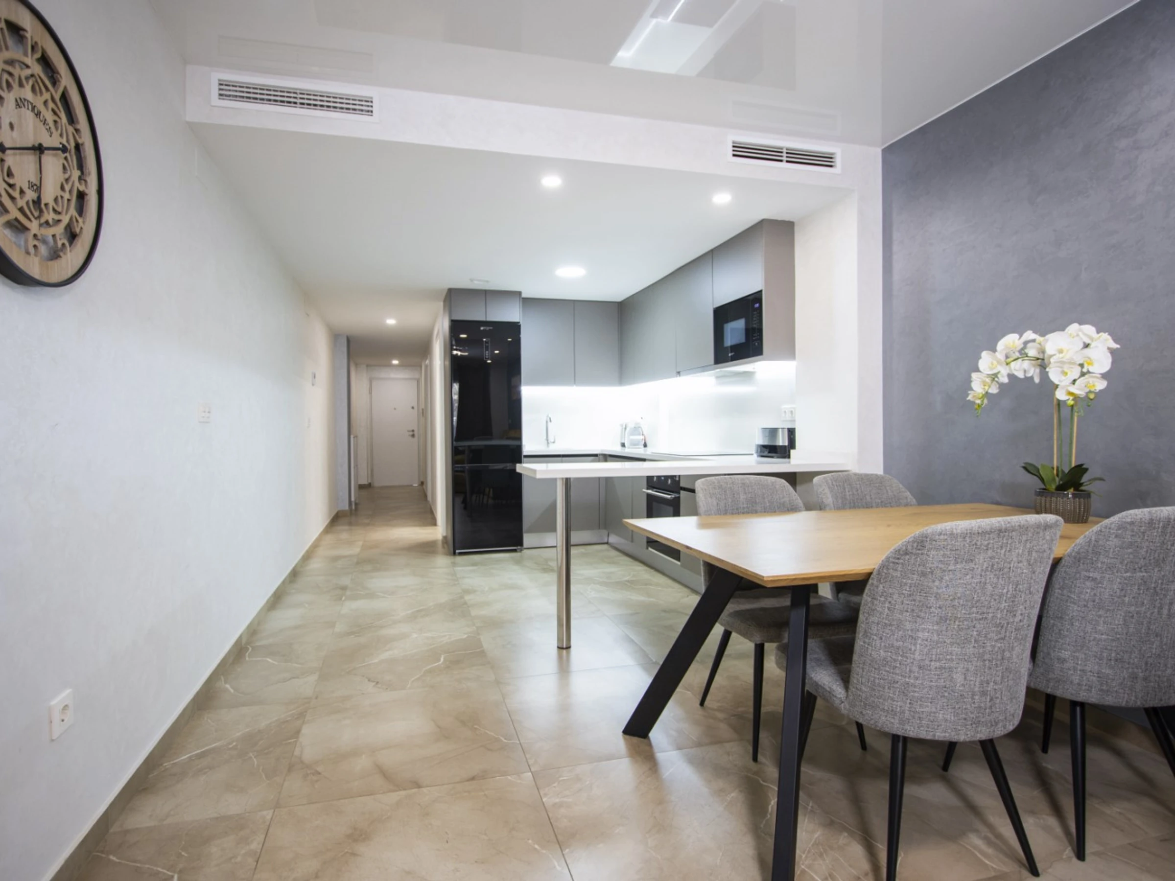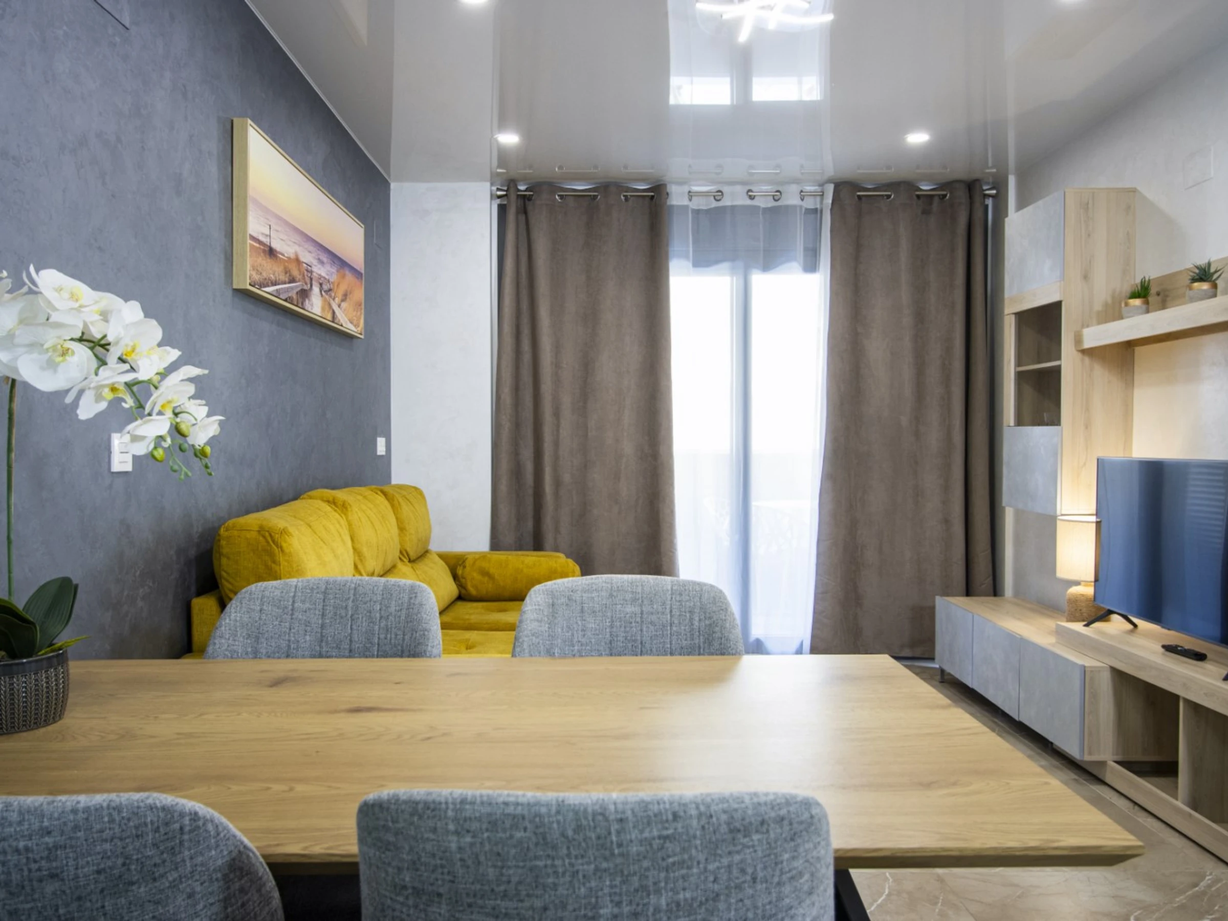 Se alquila apartamento de un dormitorio en el nuevo edificio "Residencial Alegría XII" a pocos pasos del mar y la playa. El apartamento de 60 m2 consta de un salón, un dormitorio, un baño, una cocina y un balcón. Hay todo lo necesario: muebles, electrodomésticos (incluyendo lavavajillas y cafetera), vajilla, sábanas y toallas. Aire acondicionado central, Internet inalámbrico, televisión española. El mar y la playa Los Locos están literalmente al otro lado de la calle. El complejo cuenta con una piscina cubierta y una sauna finlandesa. Los servicios de sauna se pagan aparte. A poca distancia del edificio hay un supermercado y muchos bares y cafeterías. Opción de alojamiento: hasta 4 personas (¡estrictamente sin animales!). ¡Solo se permite fumar en el balcón!