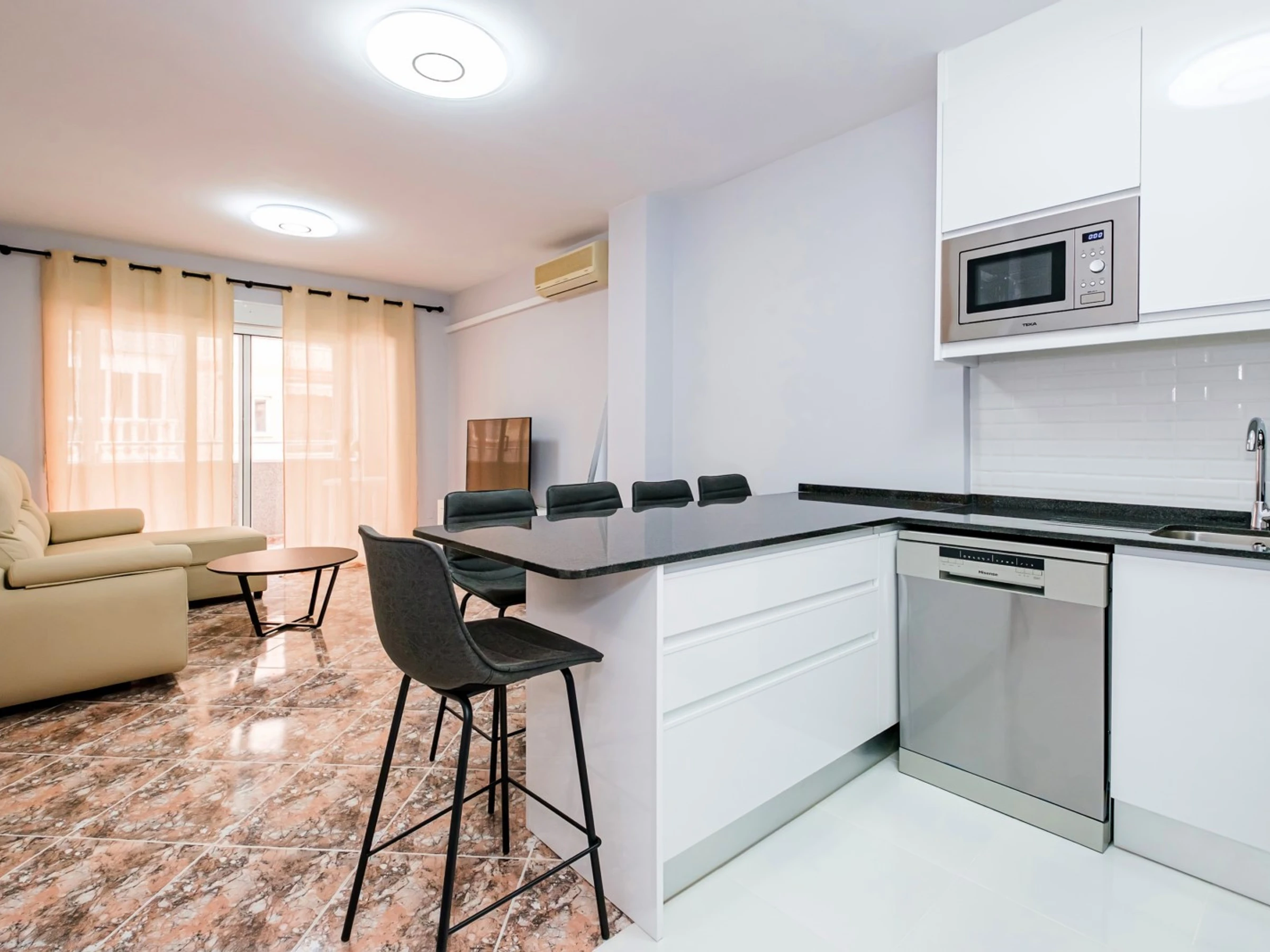 ¡Ofrecemos en alquiler turístico un acogedor y luminoso apartamento a poca distancia del mar y de dos playas de la ciudad! El piso de 79 m2 consta de salón, dos dormitorios, cocina americana, 2 baños y balcón acristalado. Hay todo lo necesario para la vida y la recreación: muebles, electrodomésticos (incluyendo lavavajillas y cafetera), vajilla, ropa de cama y toallas. El salón tiene aire acondicionado. TV española, Internet inalámbrico. La zona cuenta con una infraestructura bien desarrollada. A una distancia de 450 metros hay supermercados "Consum" y "Merkadona", ¡la tienda rusa "Kalinka" está a solo 200 metros! El bar más cercano está a solo 30 metros, hay muchos restaurantes en las calles de los alrededores. La estación de autobuses de la ciudad está a 500 metros. A la playa de la ciudad de Del Cura 550 metros, a la playa de Los Locos 800 metros. Opción de alojamiento: hasta 4 personas (¡sin animales!). ¡Está terminantemente prohibido fumar en el apartamento!