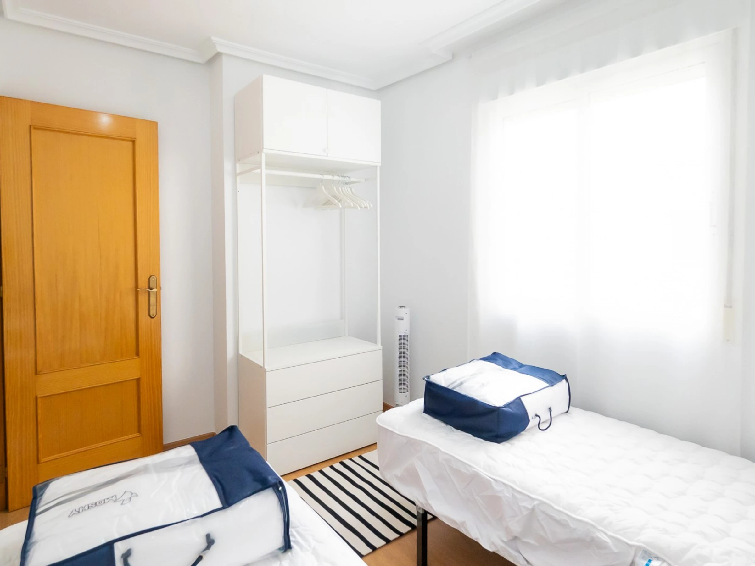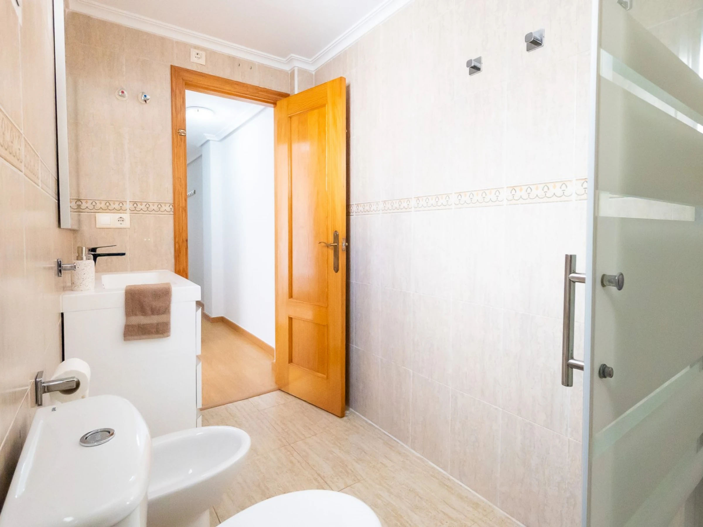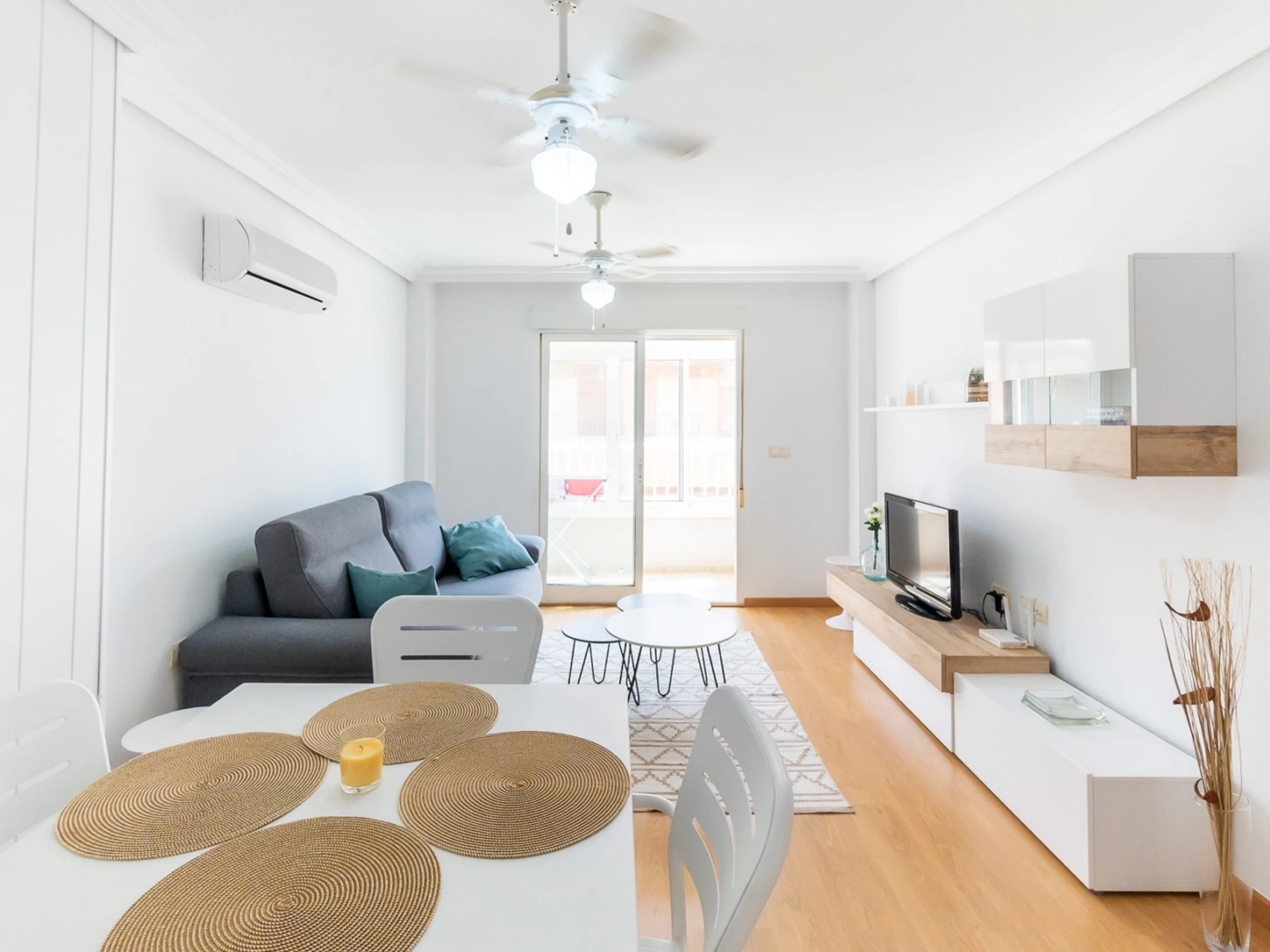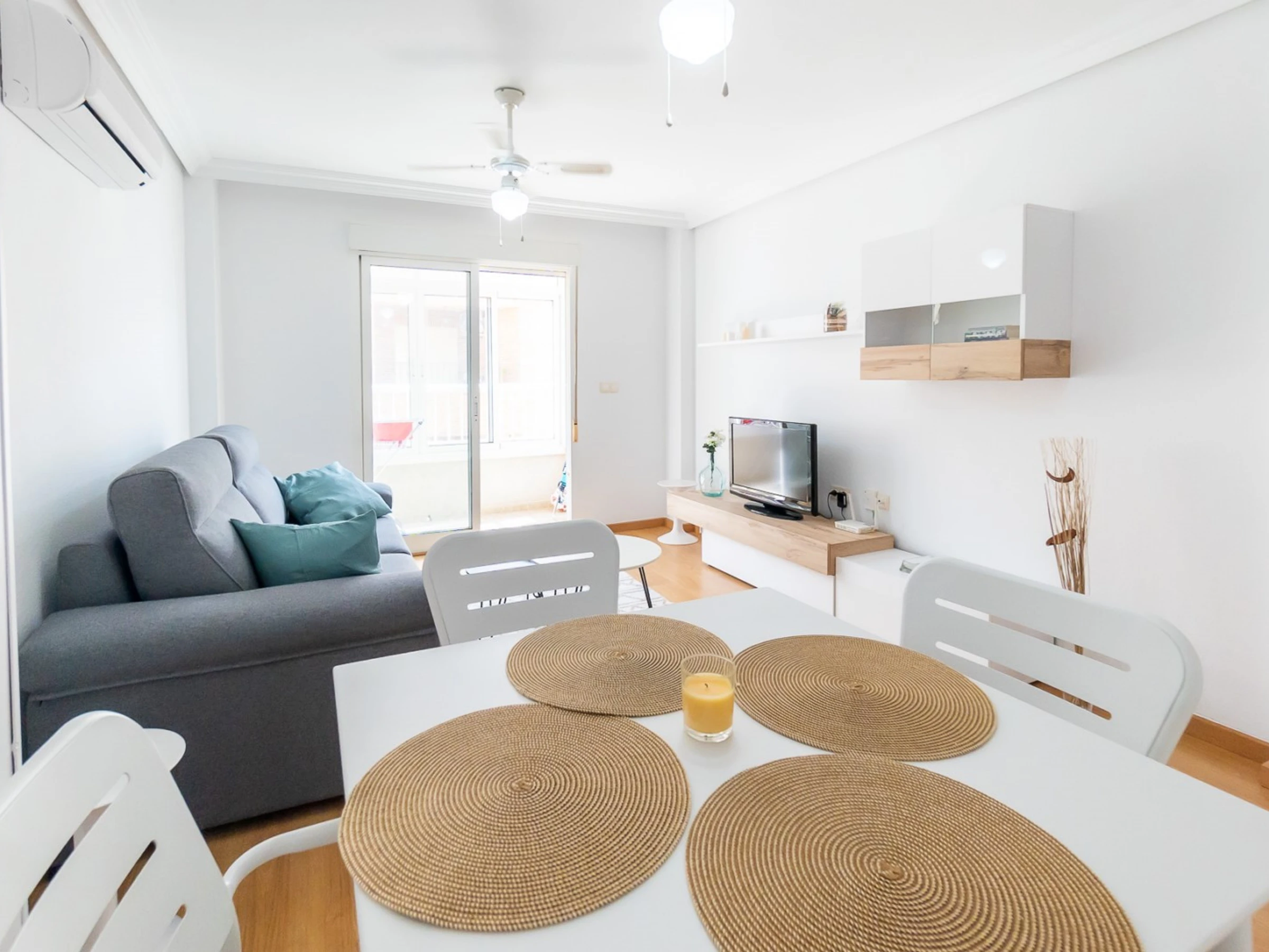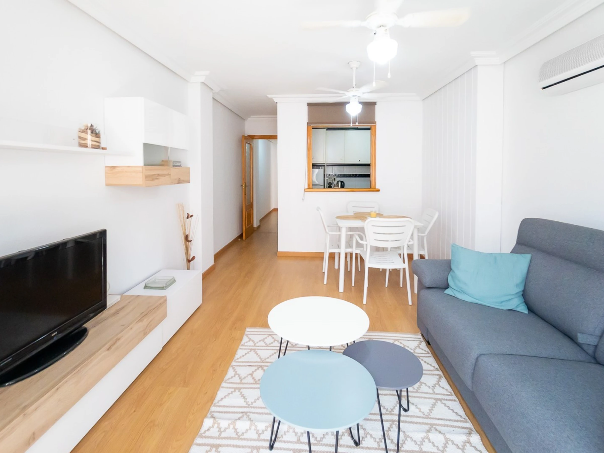 Ofrecemos para alquiler turístico un acogedor apartamento de dos dormitorios en el centro de la ciudad. El apartamento de 67 m2 consta de una sala de estar, dos dormitorios, una cocina de estilo francés, un baño con cabina de ducha y un balcón acristalado. Todo lo que necesita para vivir y relajarse está disponible: muebles, electrodomésticos, platos, ropa de cama y toallas. La cabina tiene aire acondicionado. TV en español, Internet inalámbrico. El área cuenta con una infraestructura bien desarrollada. La tienda rusa está a 40 metros, el supermercado «Consum» está a 250 metros. Hay muchos bares y cafeterías en un radio de 100 metros. La estación de autobuses está a 300 metros y la cadena de supermercados Mercadona está un poco más lejos. El mar y la popular playa del Cura de la ciudad están a unos 550 metros. Opción de alojamiento para hasta 6 personas (¡no se admiten mascotas!). ¡Está estrictamente prohibido fumar! ¡La multa por la infracción es de 200 euros!