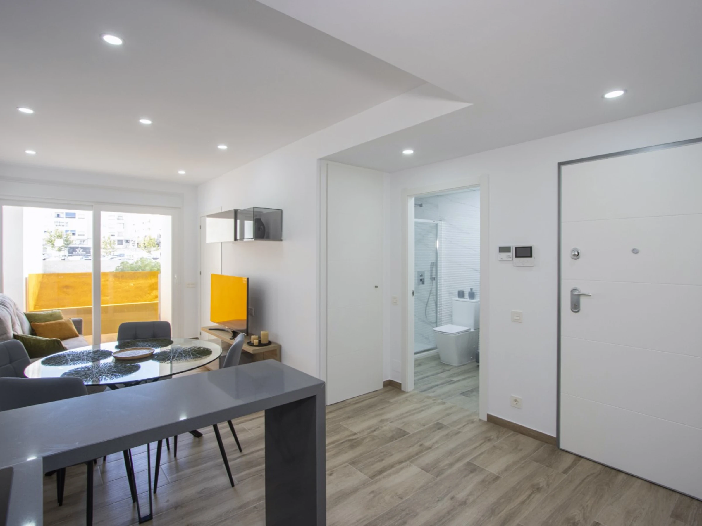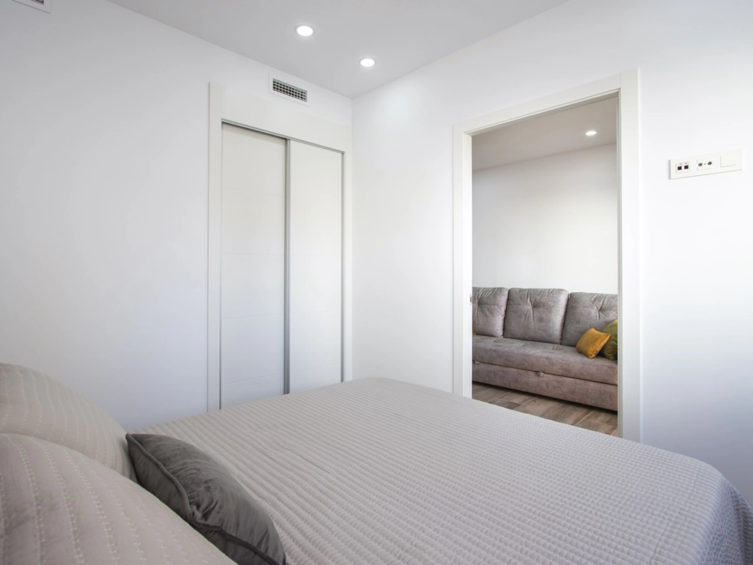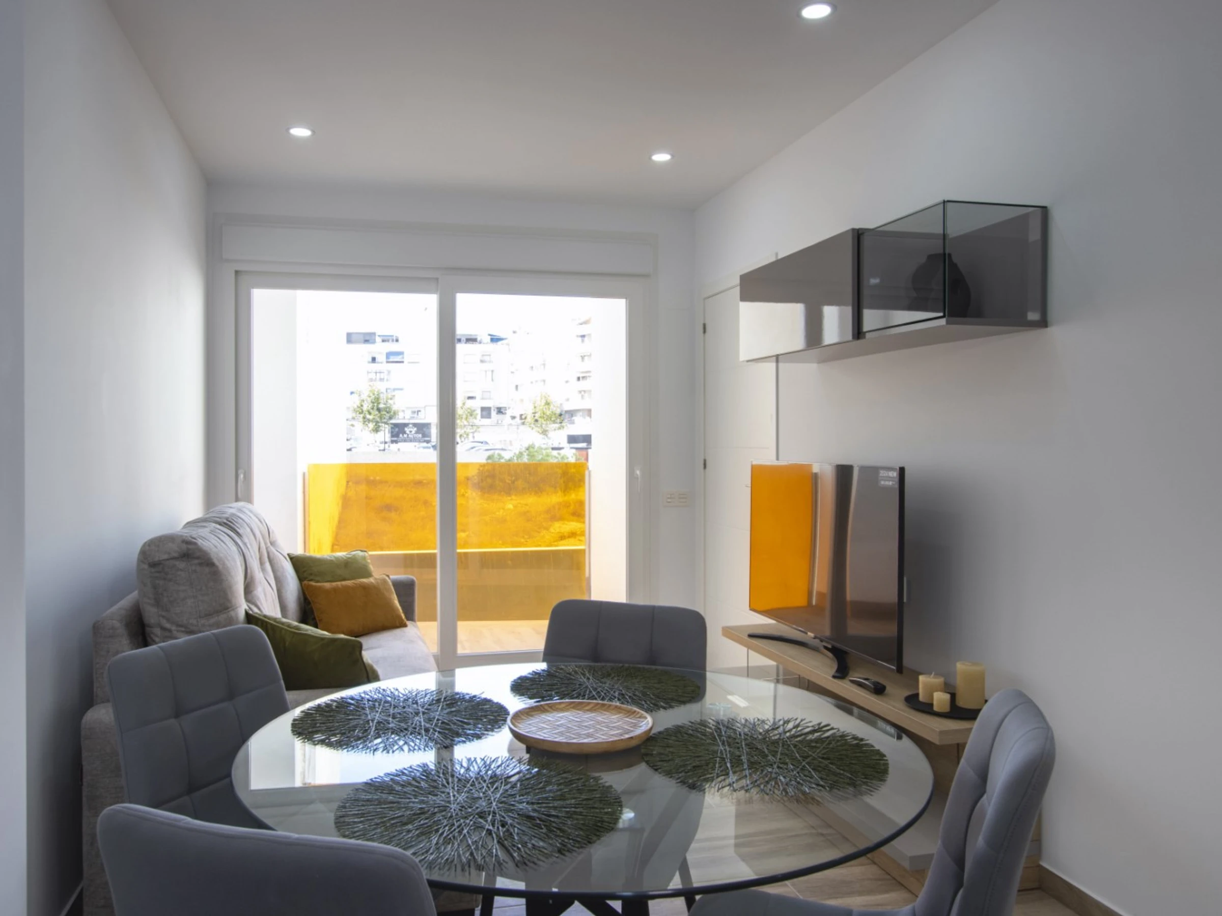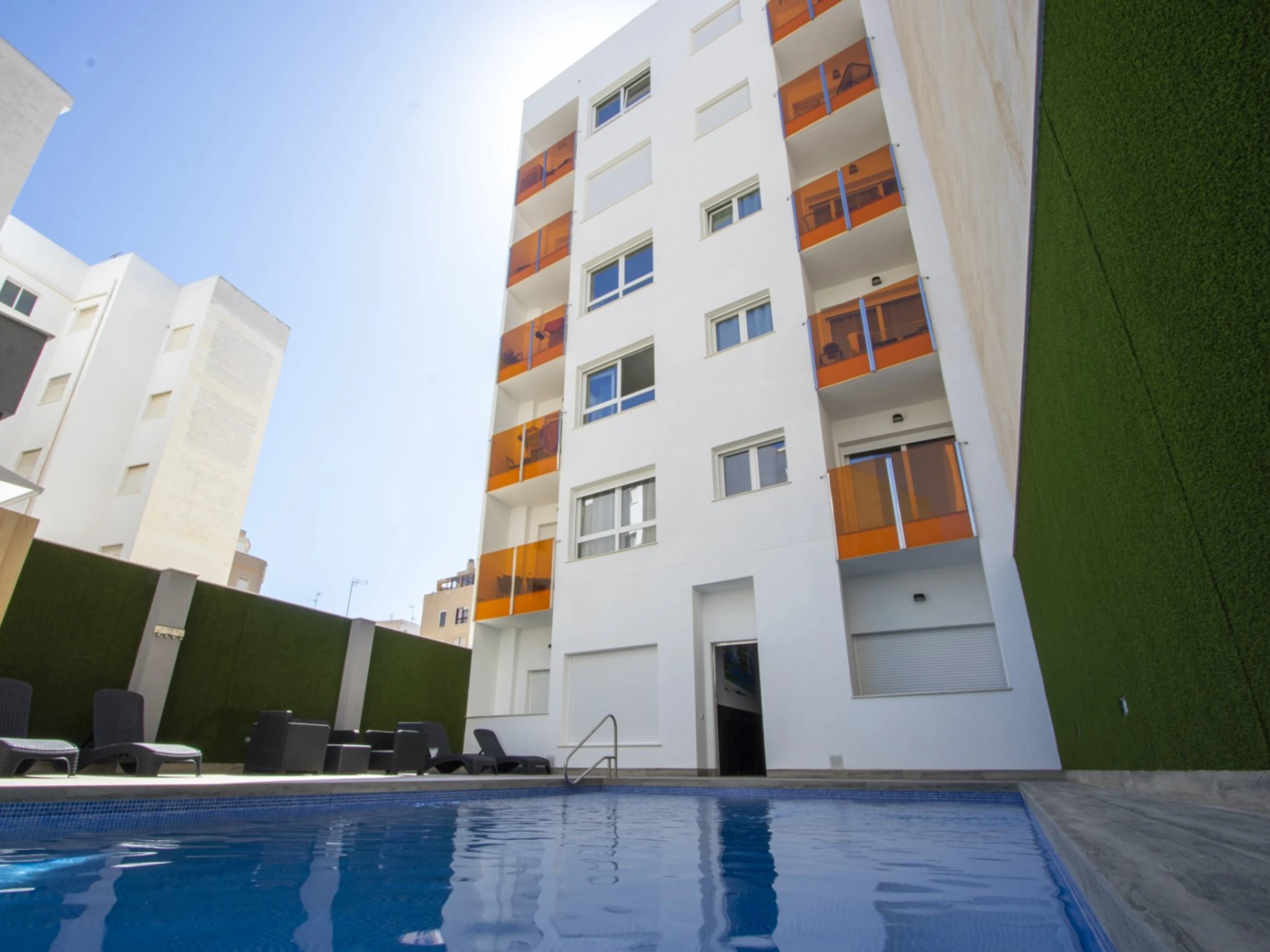 Ofrecemos alquiler turístico de un apartamento de un dormitorio en el nuevo y moderno complejo Residencial Alegría XVII, a un paso del mar y la playa. El apartamento de 47 m² consta de salón, dormitorio, cocina americana, baño y balcón. Dispone de todo lo necesario para una estancia cómoda y relajante: muebles, electrodomésticos (incluidos lavavajillas y cafetera), vajilla, ropa de cama y toallas. Aire acondicionado central (frío-calor). Televisión española e internet inalámbrico. El complejo cuenta con piscina, acceso a un solárium con zona de barbacoa y sauna finlandesa (los servicios de sauna no están incluidos en el precio del alquiler y se pagan aparte). La zona cuenta con una infraestructura bien desarrollada. El supermercado «Mercadona» está a 300 metros y la tienda rusa Kalinka a 100 metros. El restaurante más cercano está a 200 metros. El mar y la popular playa urbana del Cura están a 400 metros. Opción de alojamiento: hasta 4 personas (¡no se admiten animales!). Solo se permite fumar en el balcón (en caso de incumplimiento, se aplicará una multa de 200 euros).