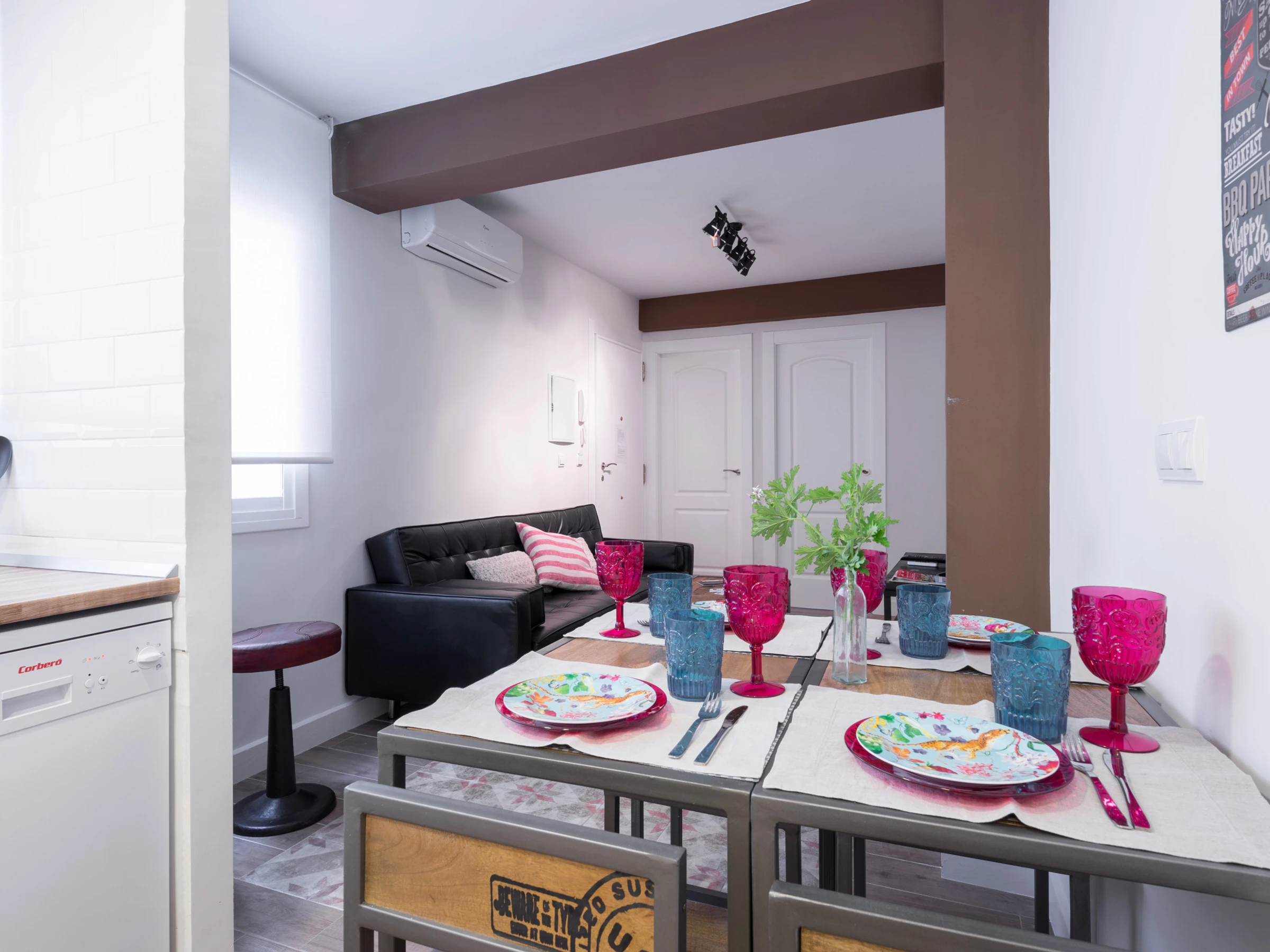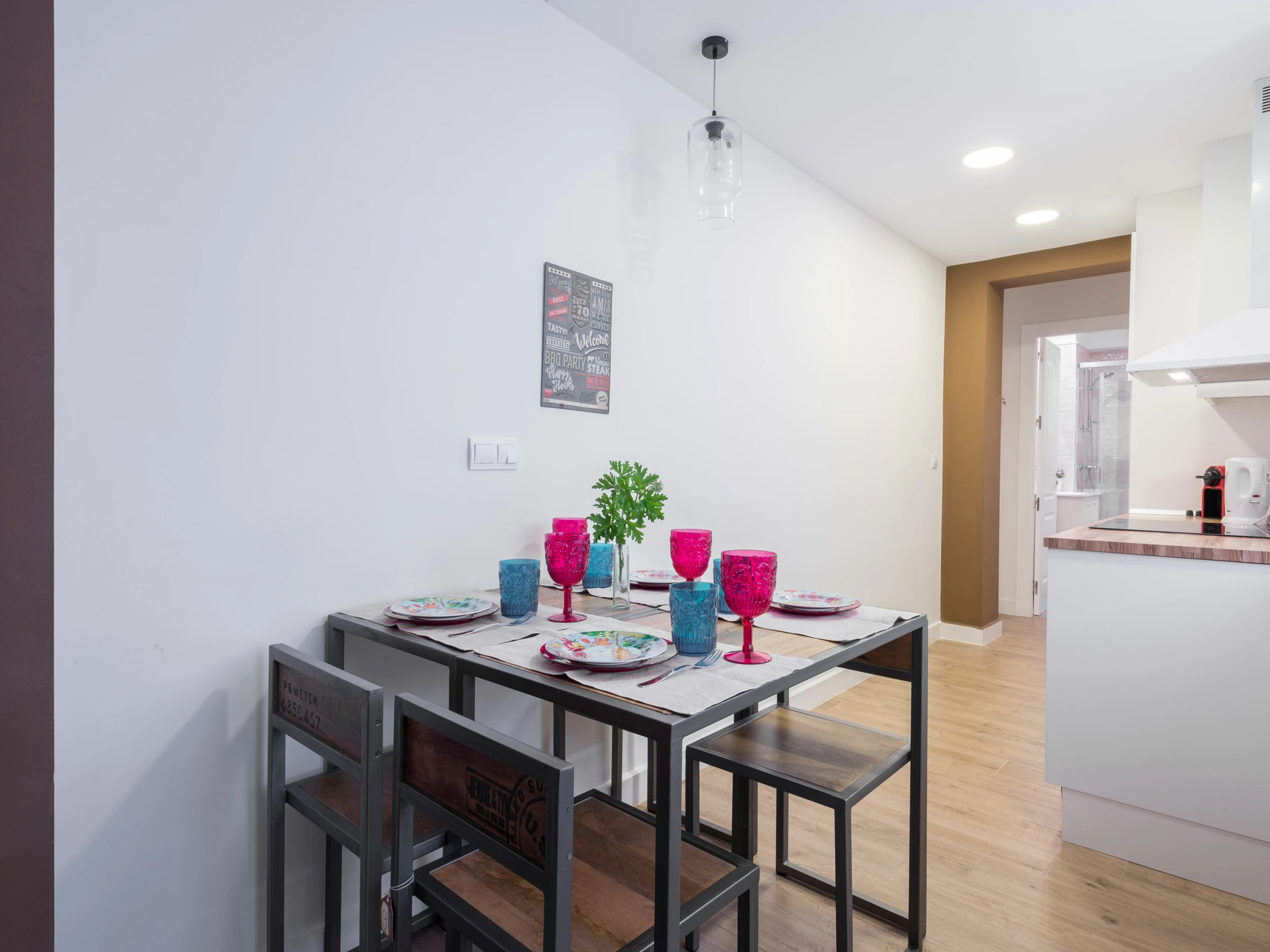 El apartamento dispone de dos baños con ducha, pensados para brindar practicidad y privacidad a todos los huéspedes. El salón-comedor con cocina abierta crea un ambiente moderno y acogedor, perfecto para compartir comidas, relajarse después de un día de turismo o simplemente disfrutar de un momento tranquilo en casa.