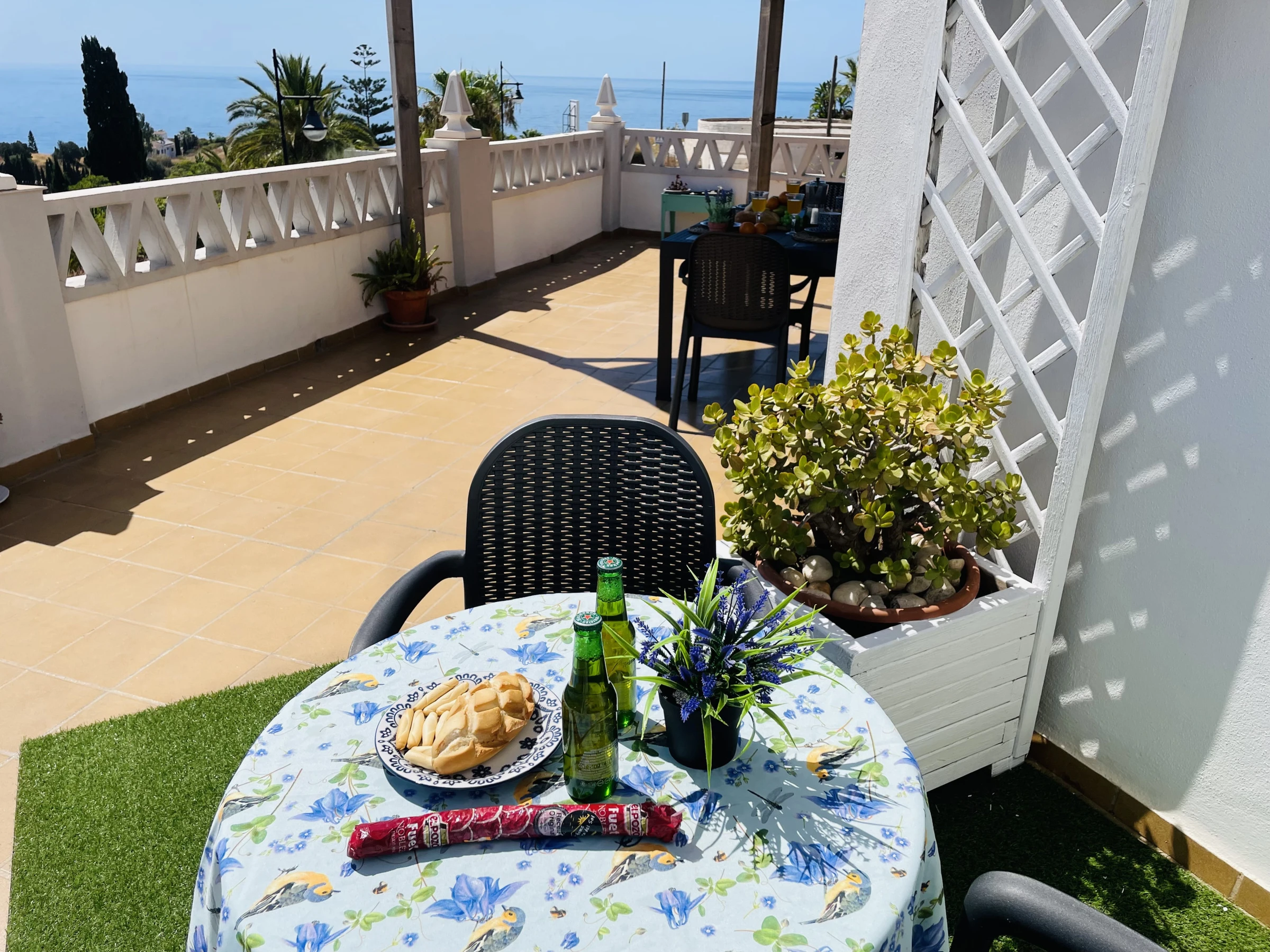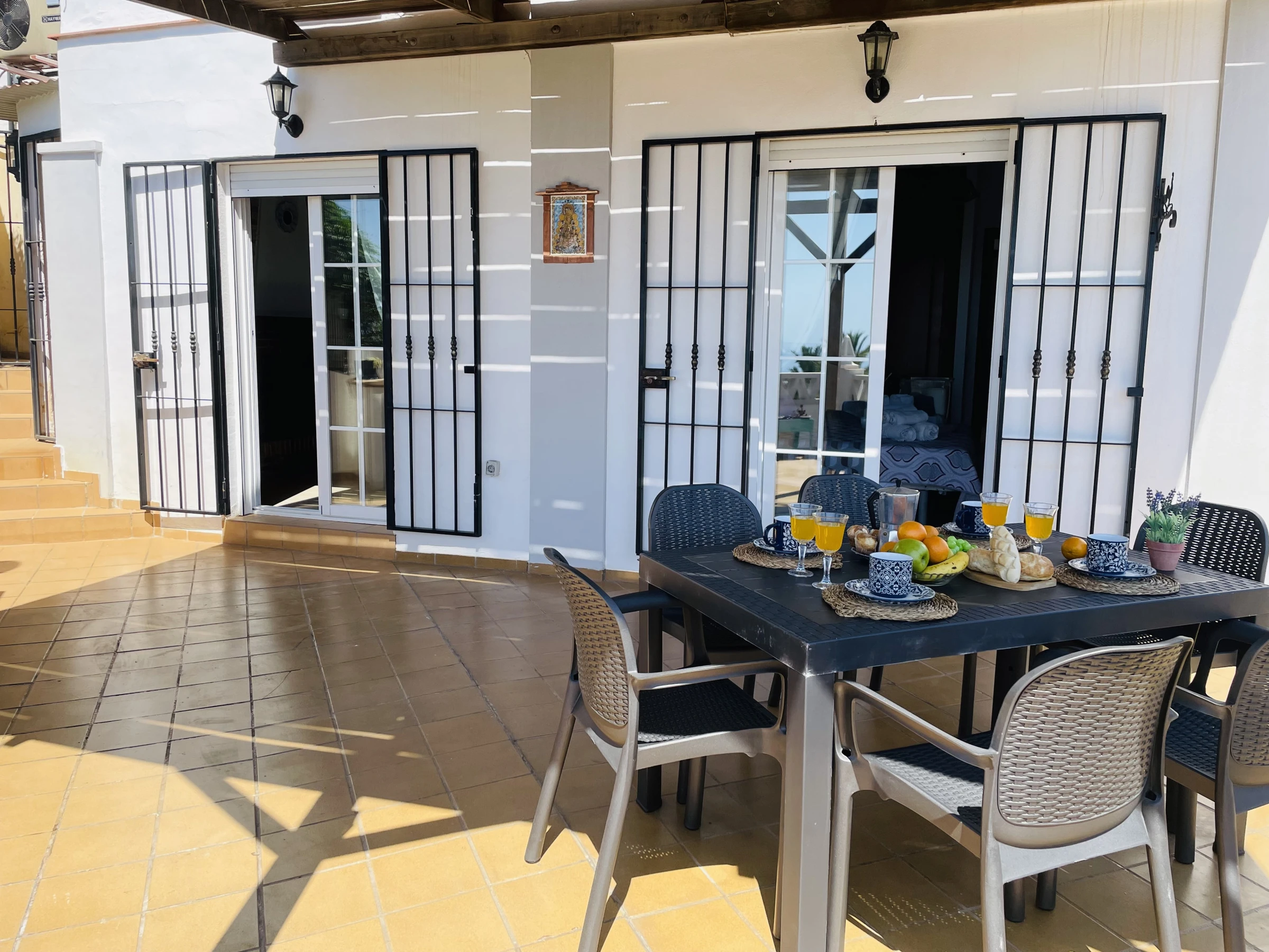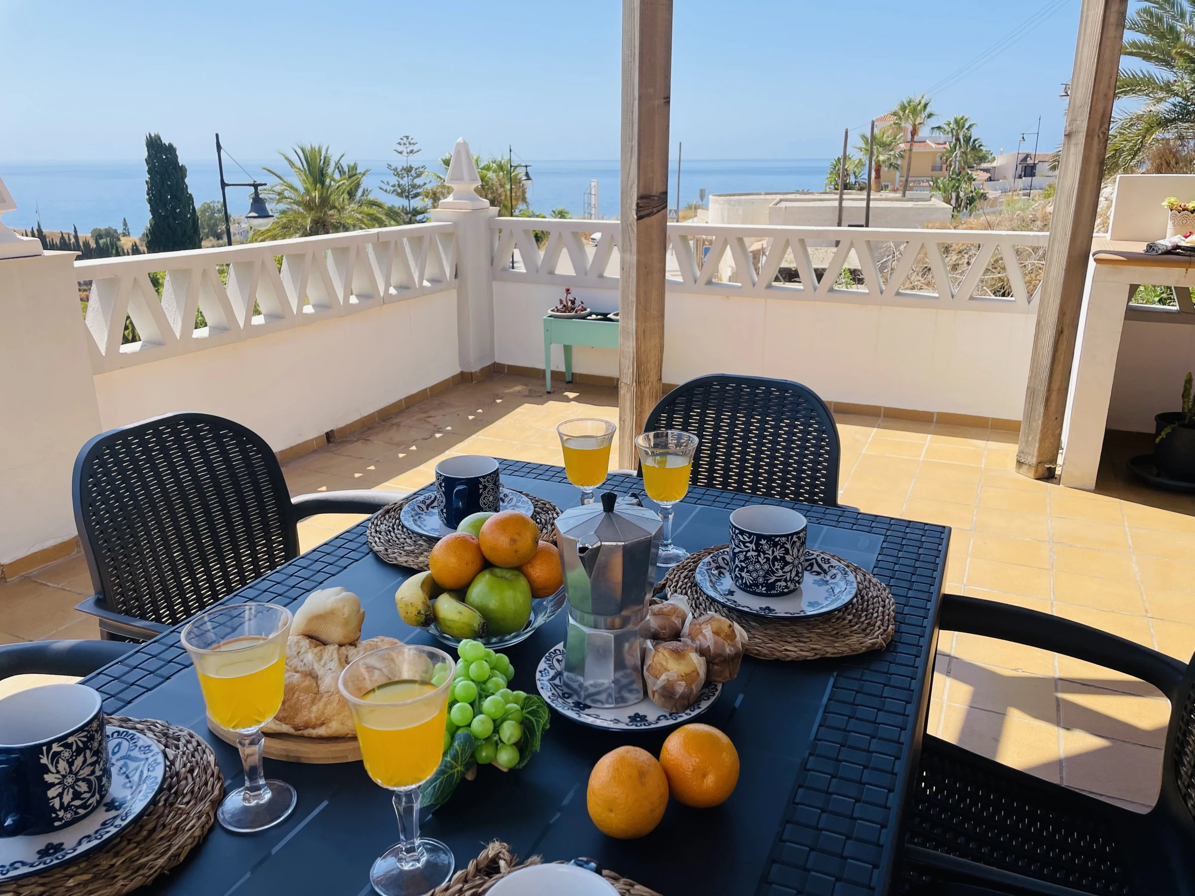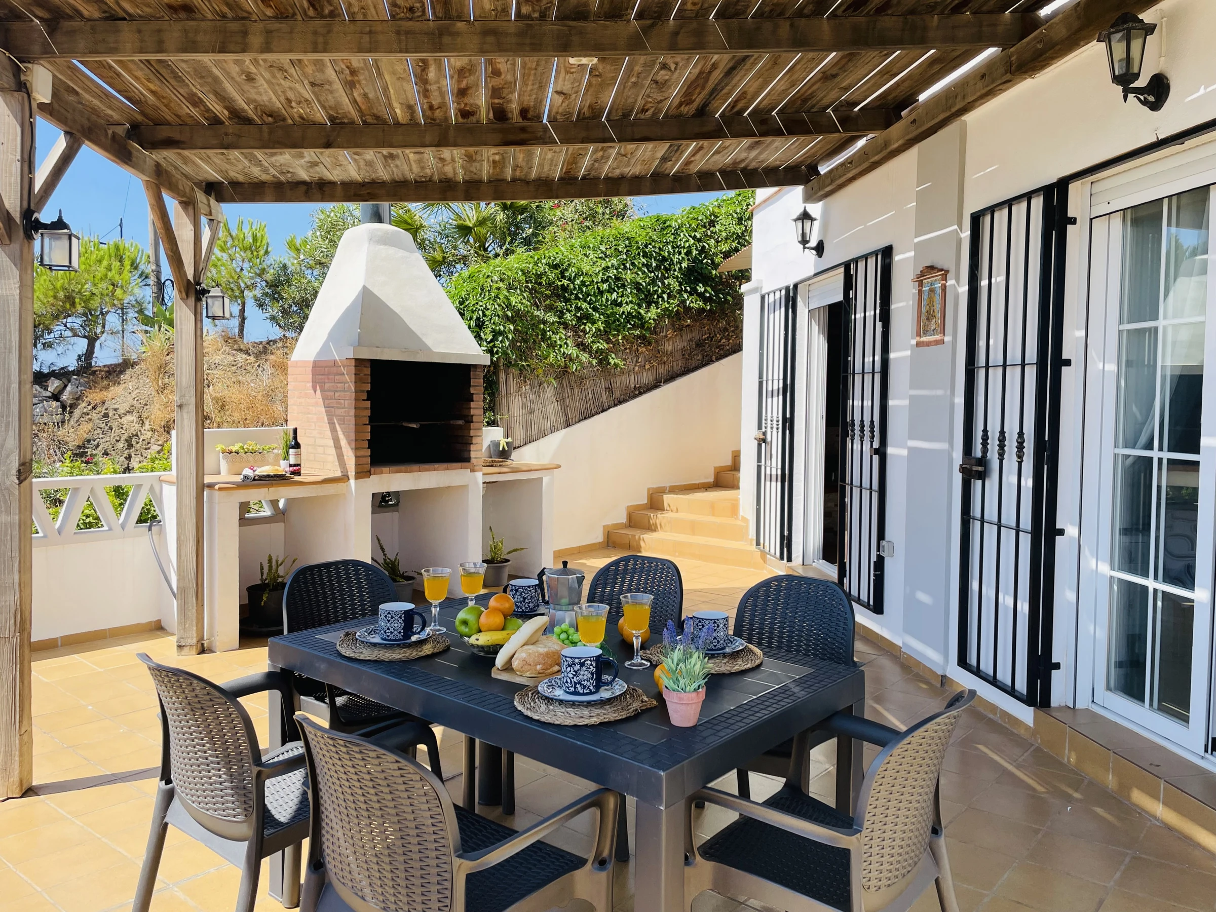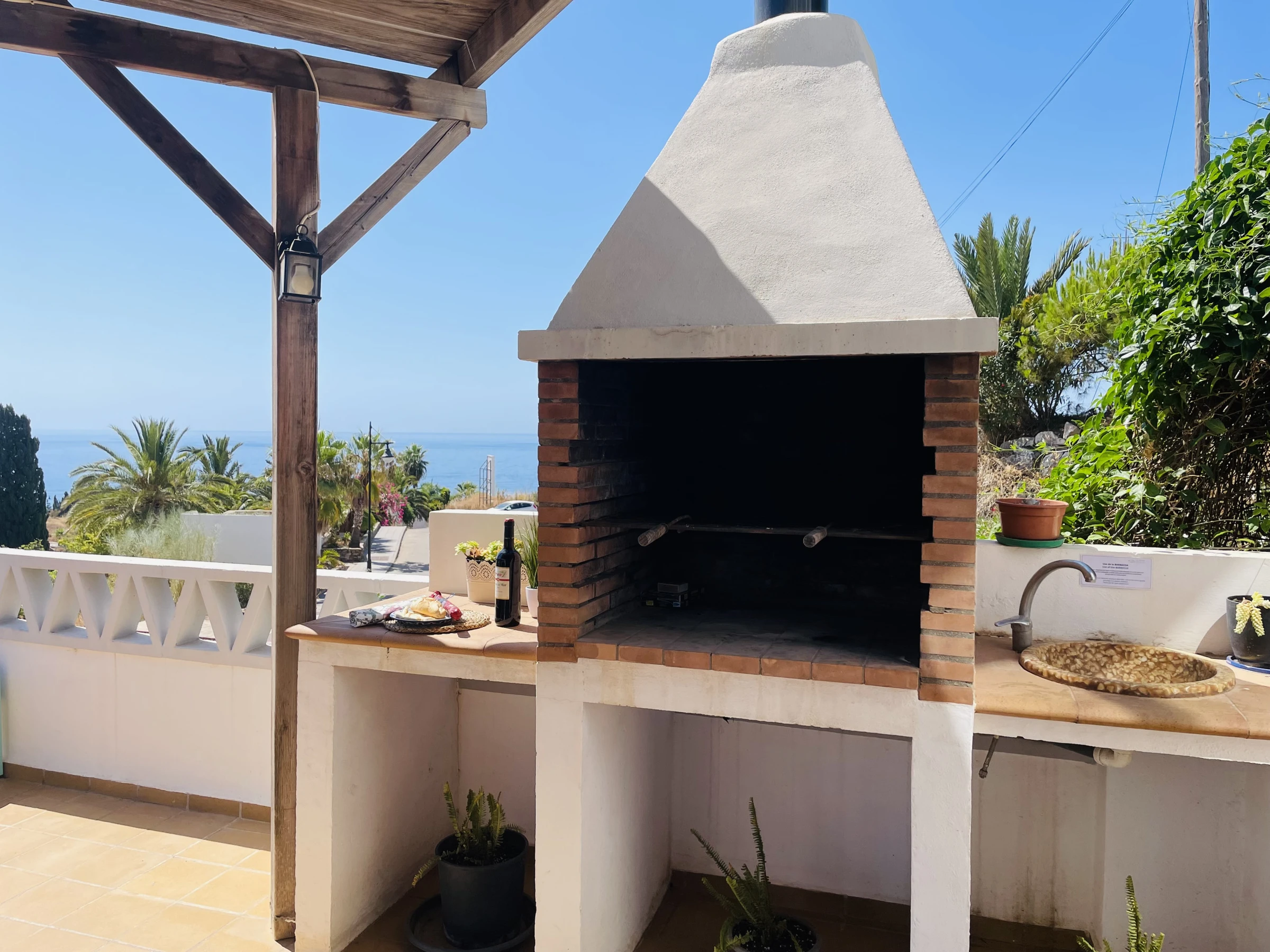 La joya de la casa es su terraza privada con vistas al mar: equipada con barbacoa, pérgola para comer al aire libre, tumbonas para tomar el sol y un rincón pensado para disfrutar del té o simplemente relajarse con el sonido del mar de fondo.