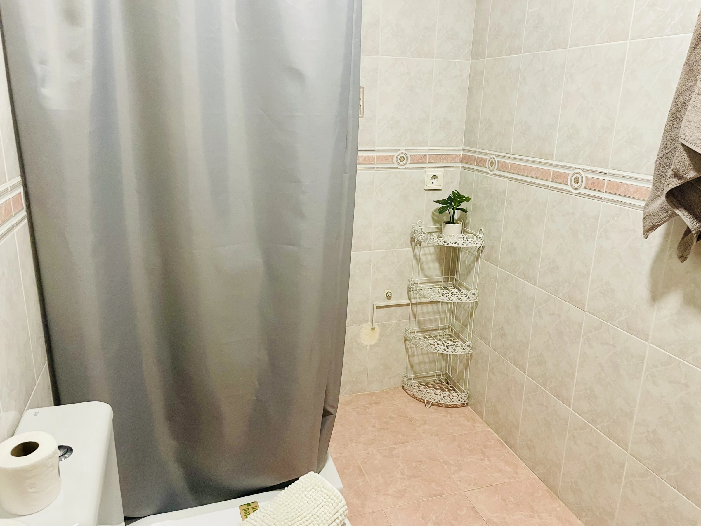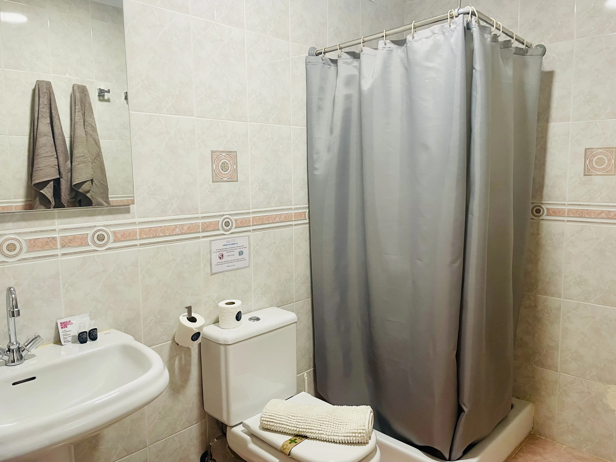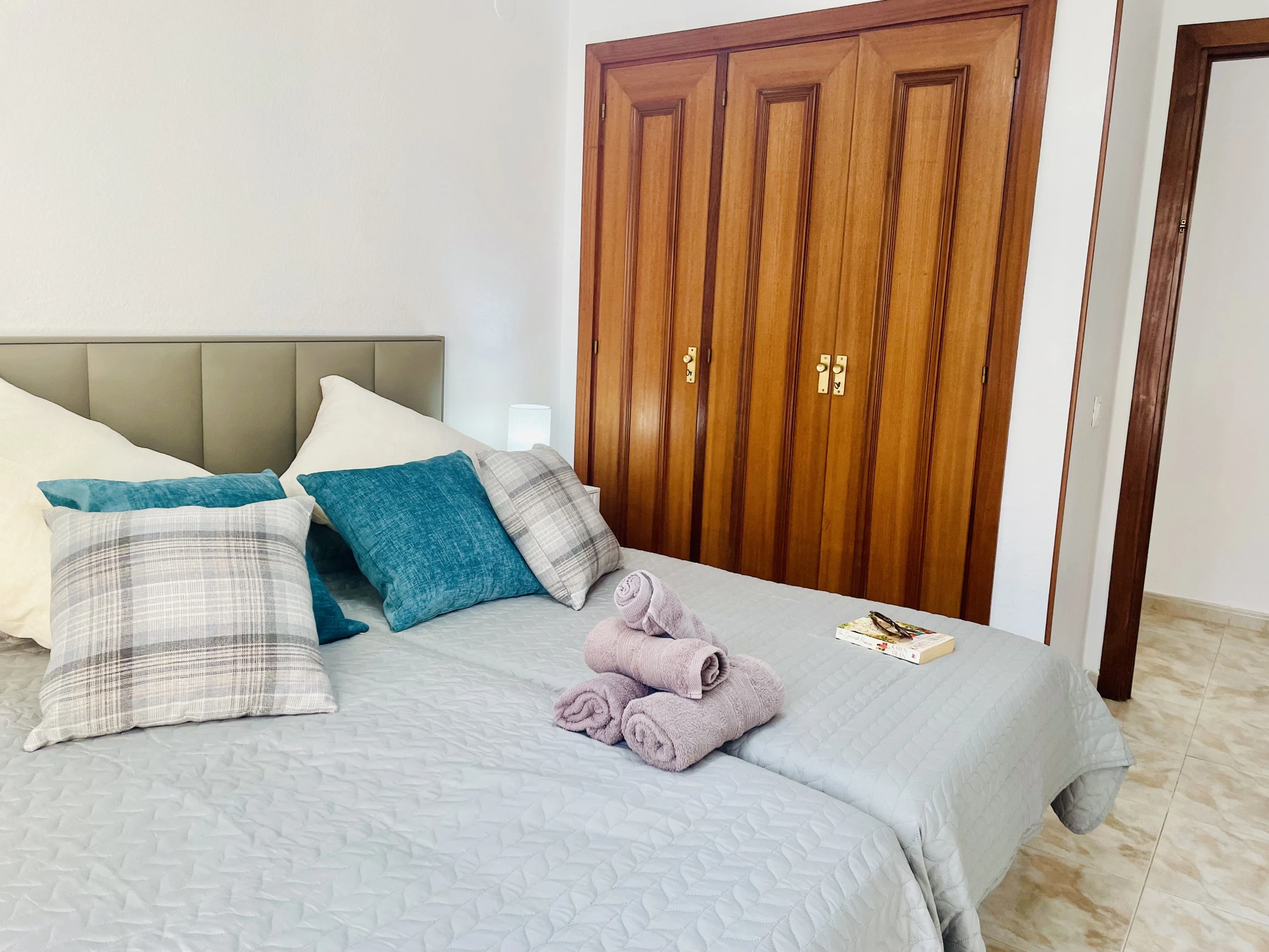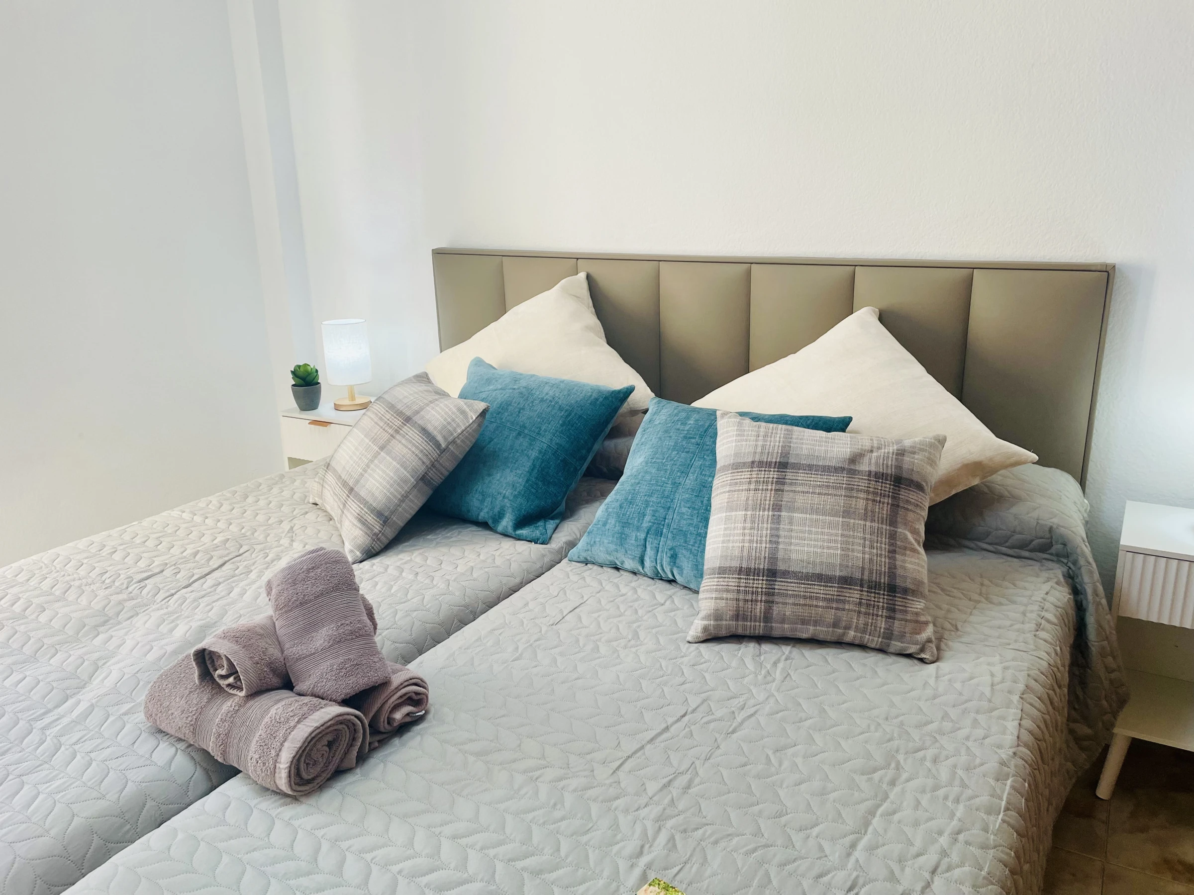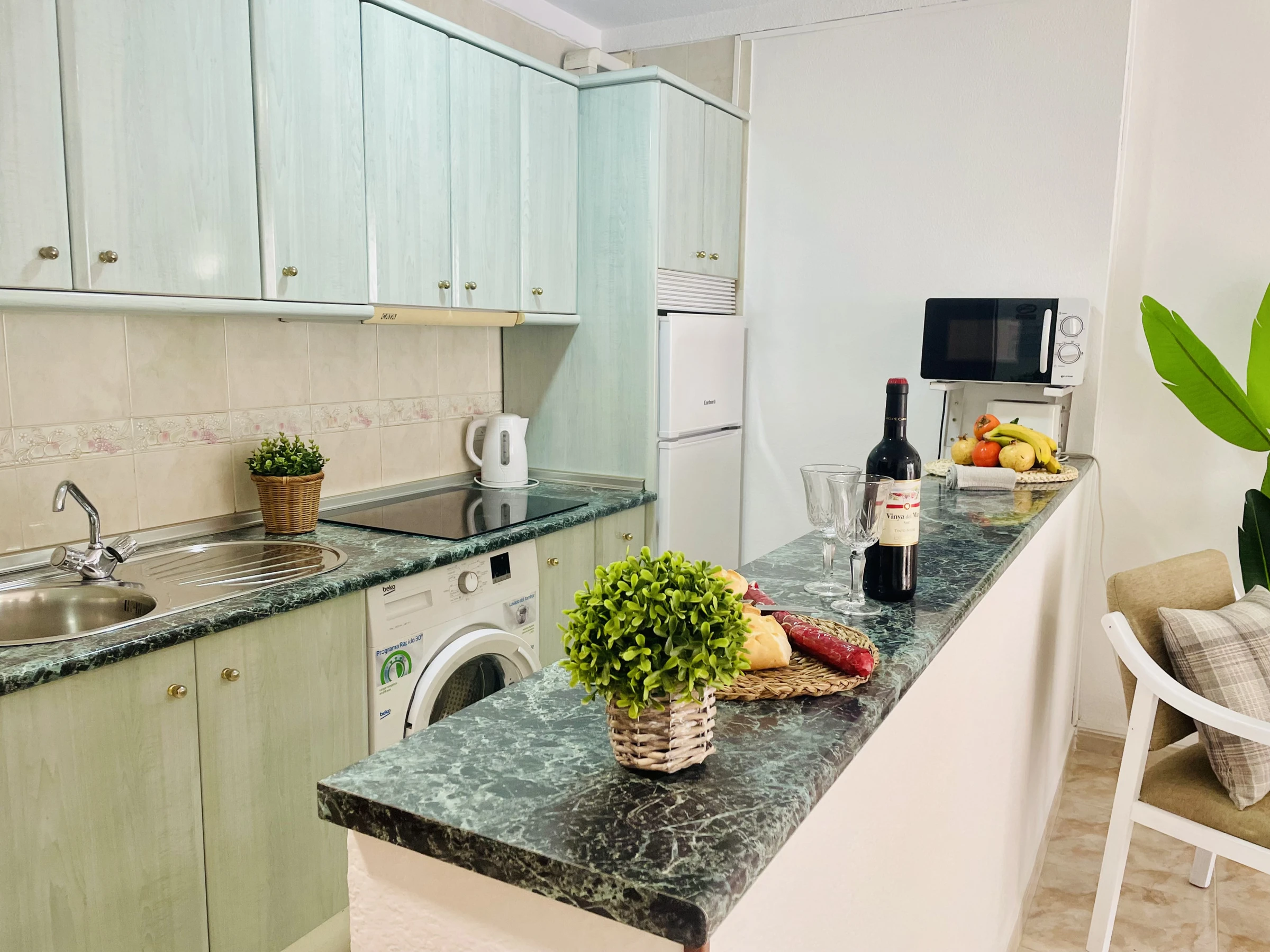 Este acogedor apartamento de 1 dormitorio dispone de dos camas individuales y ventilador de techo, ideal para descansar después de un día de playa o paseos. El baño completo incluye ducha y lavadora, garantizando todo el confort durante la estancia.