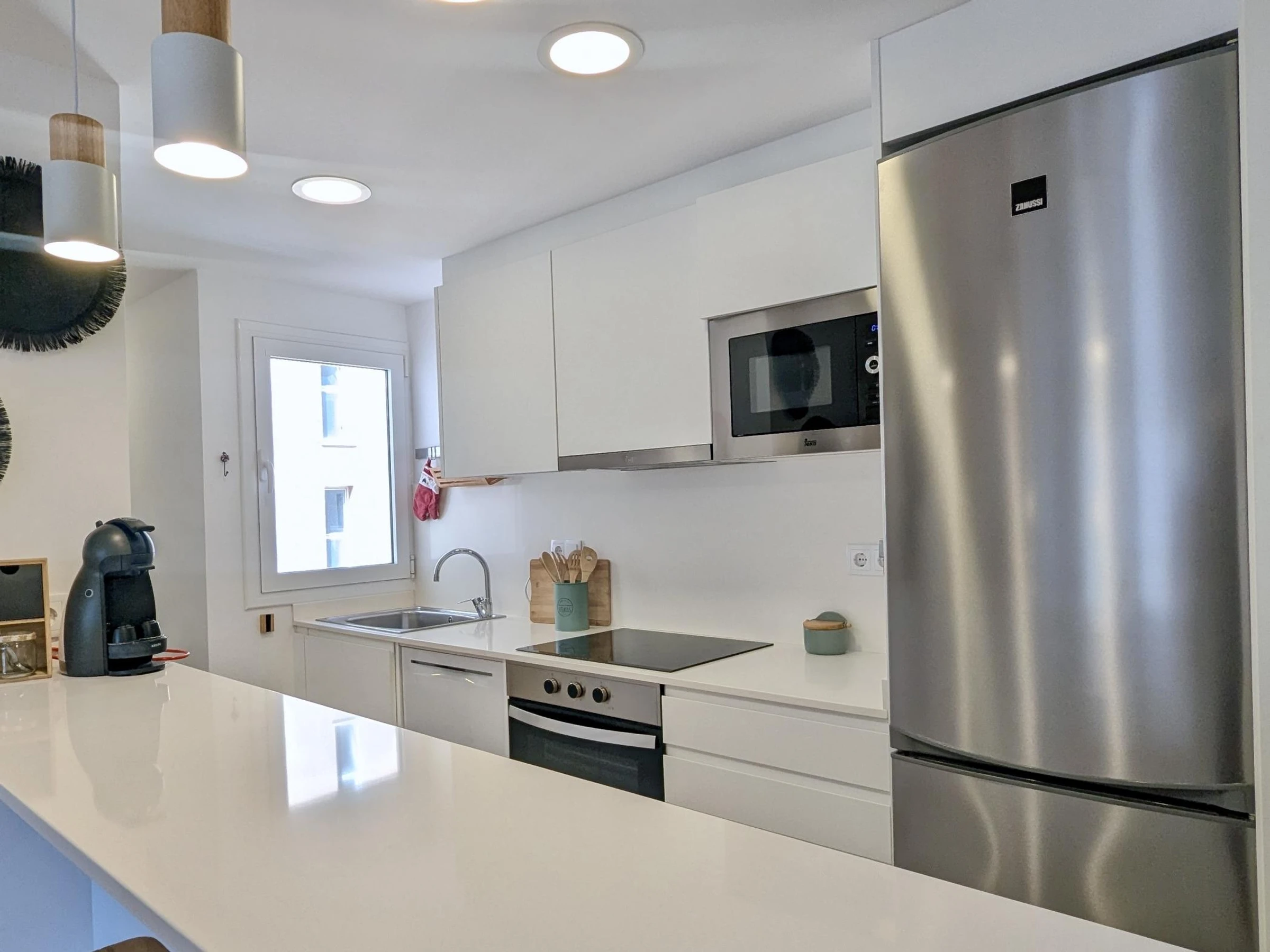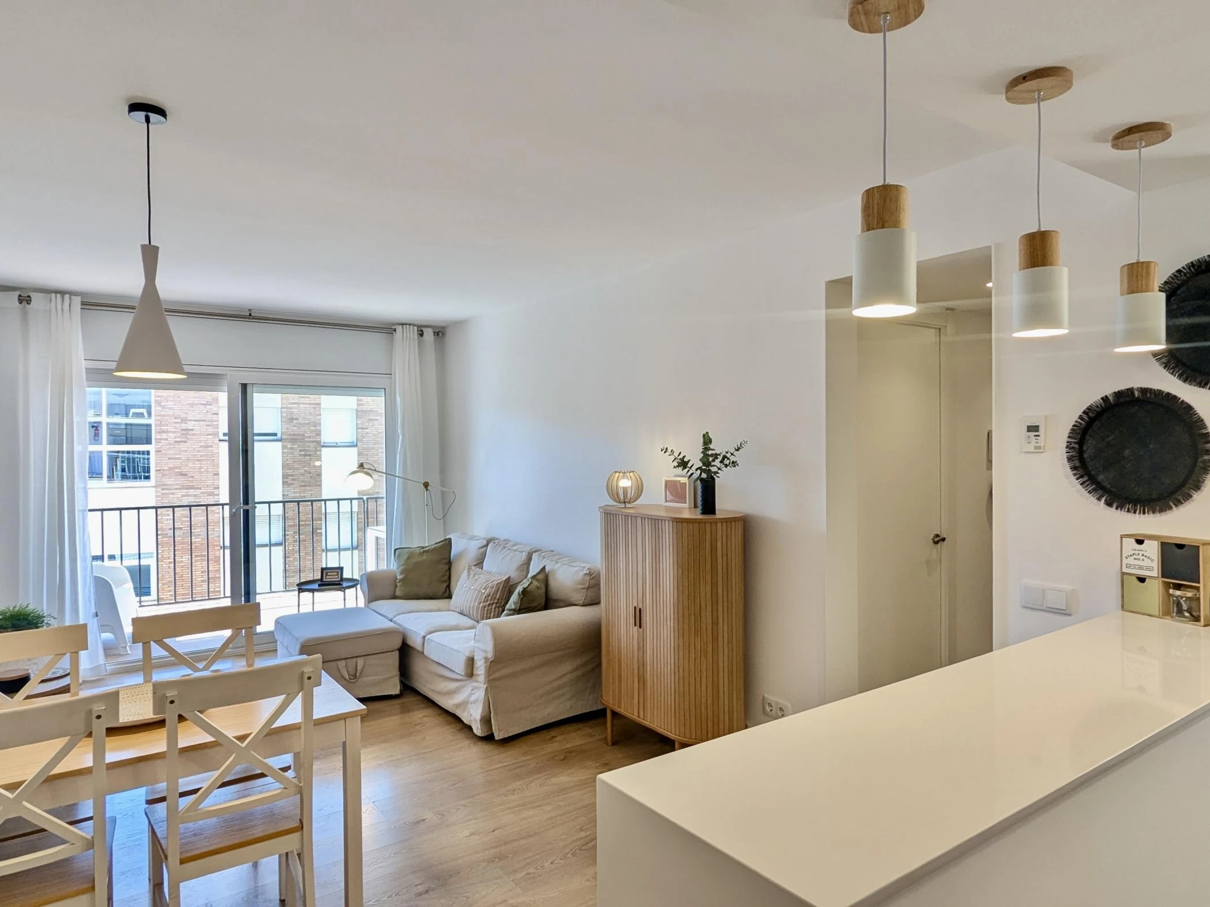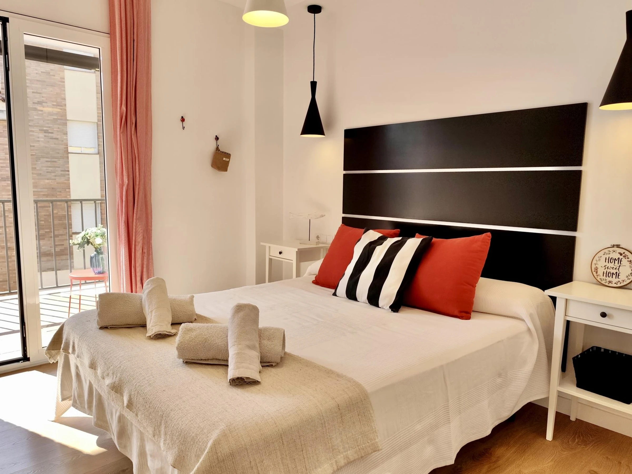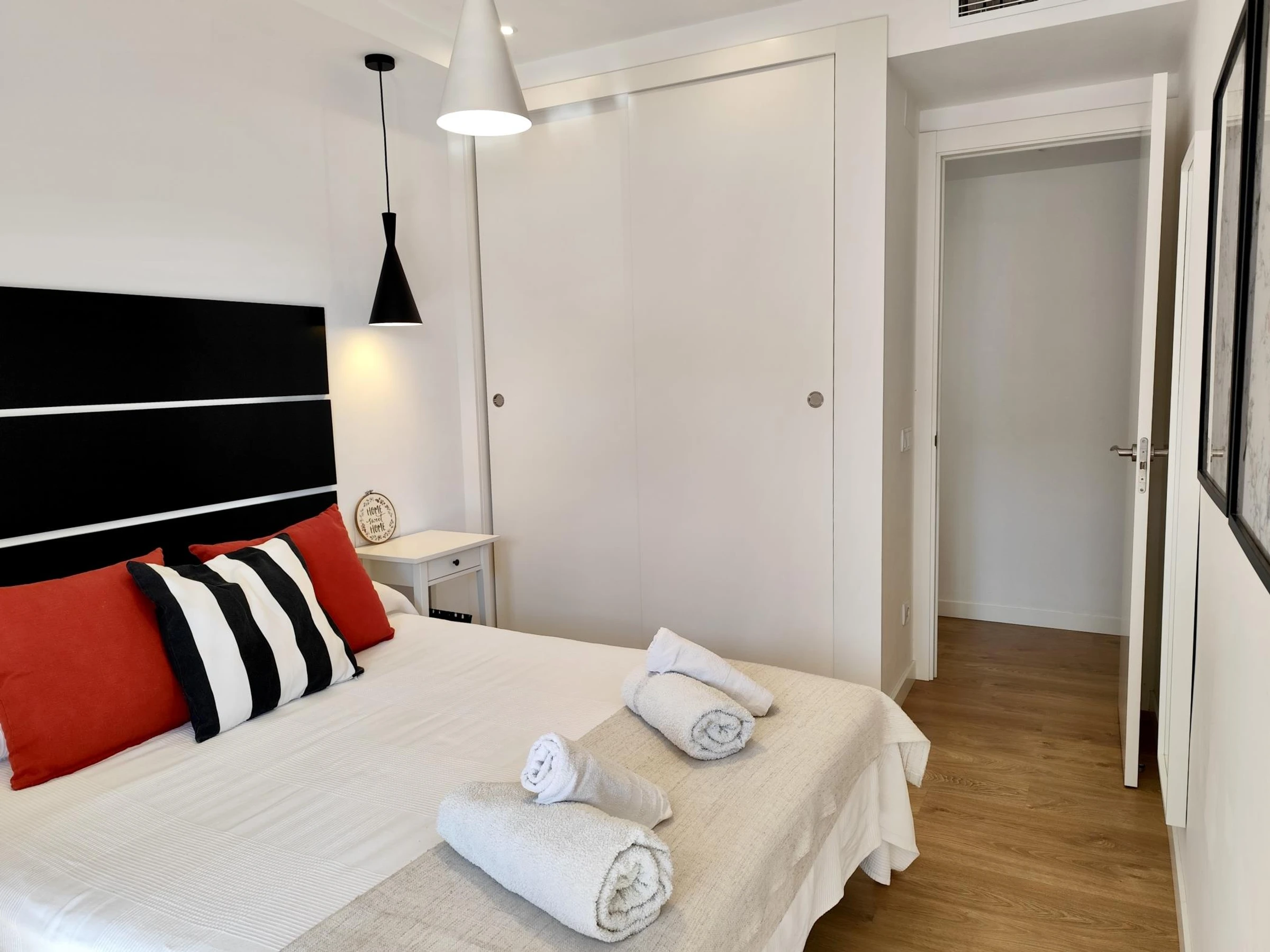 El apartamento cuenta con 2 habitaciones: una con cama doble y otra con dos camas individuales, además de un baño completo. Está completamente equipado con aire acondicionado, wifi para que puedas mantenerte conectado durante tu estancia y un gran balcón donde relajarte después de un día de playa.