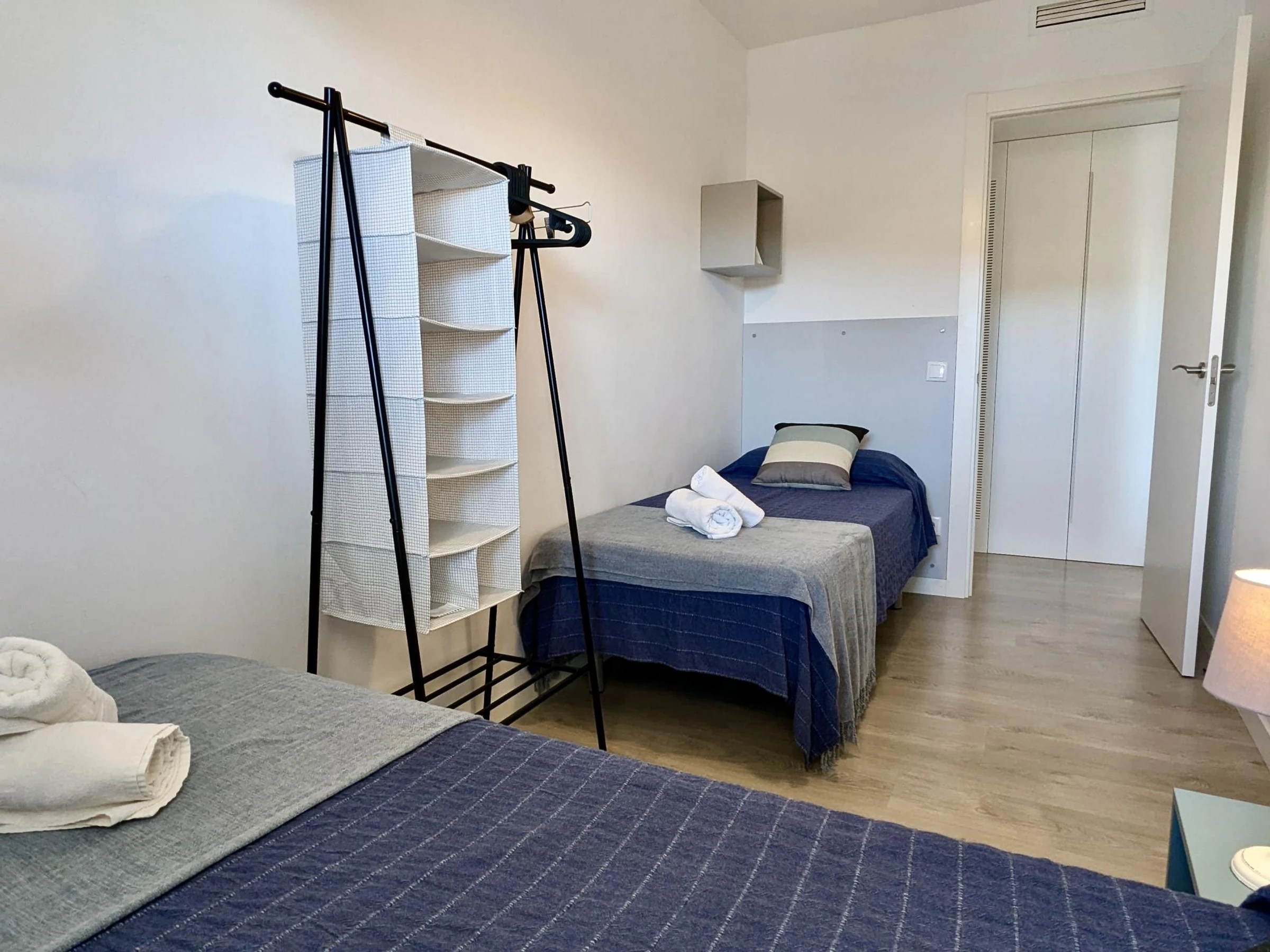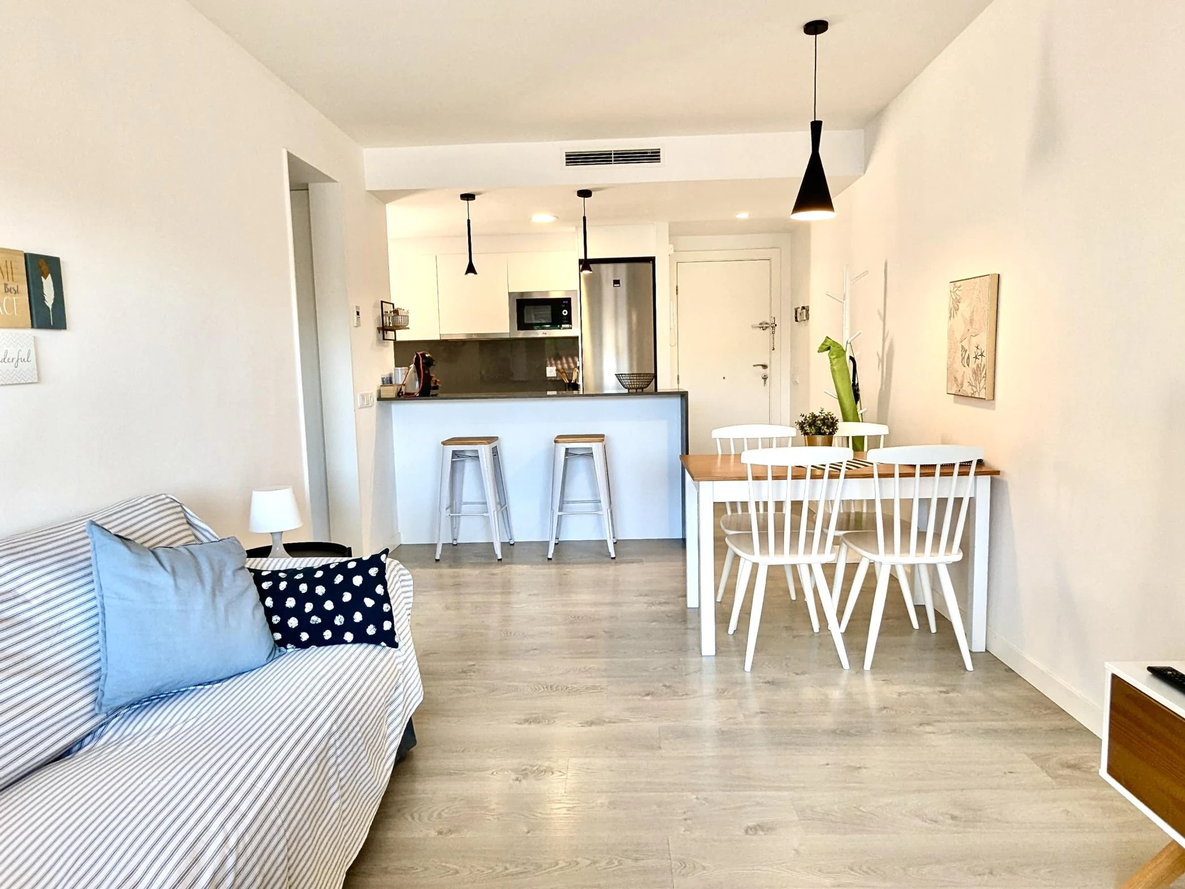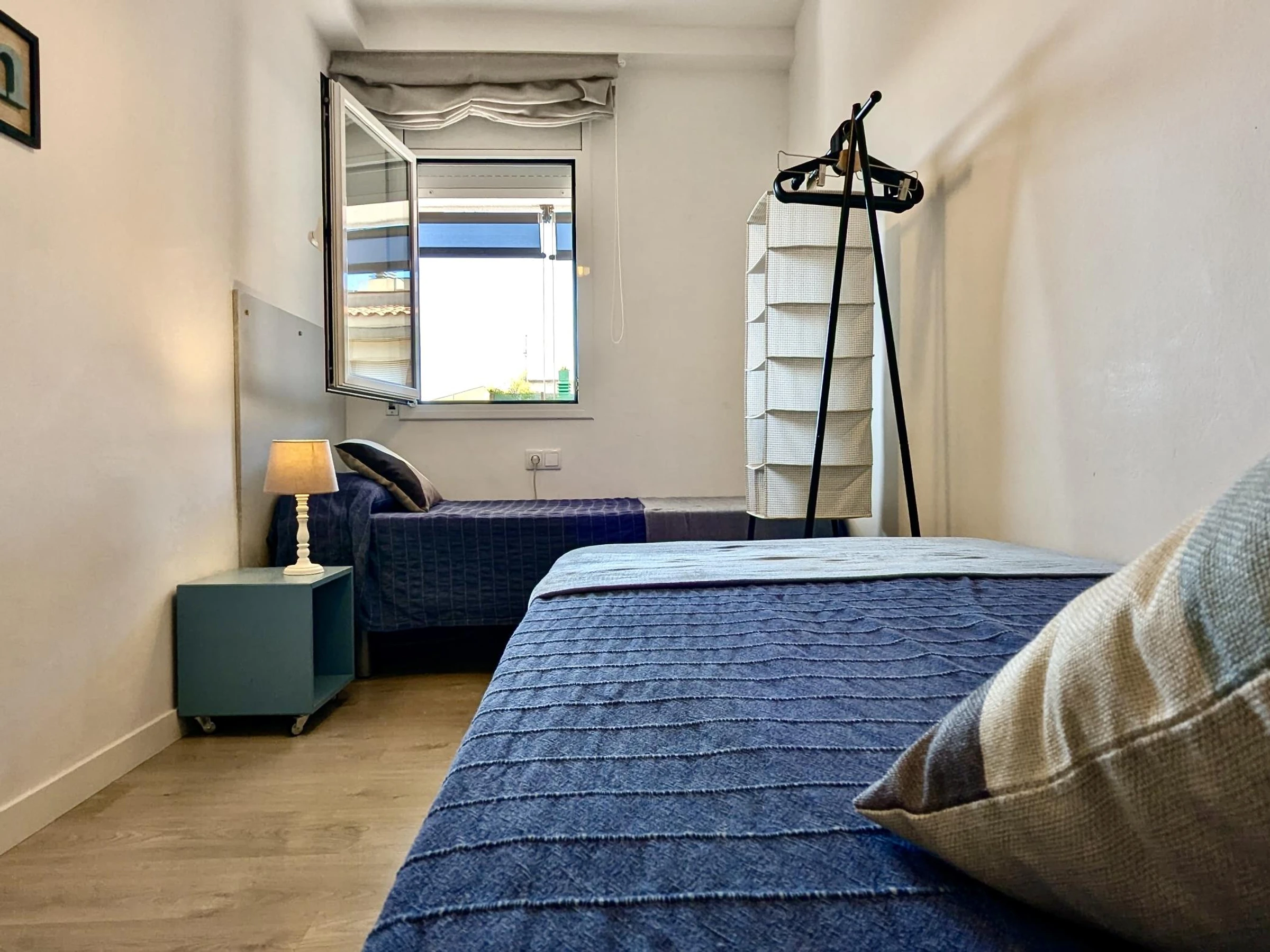 El apartamento cuenta con 2 habitaciones: una con cama doble y otra con dos camas individuales, además de un baño completo. Está completamente equipado, aire acondicionado, con wifi para que puedas mantenerte conectado durante tu estancia y un gran balcón donde relajarte después de un día de playa.