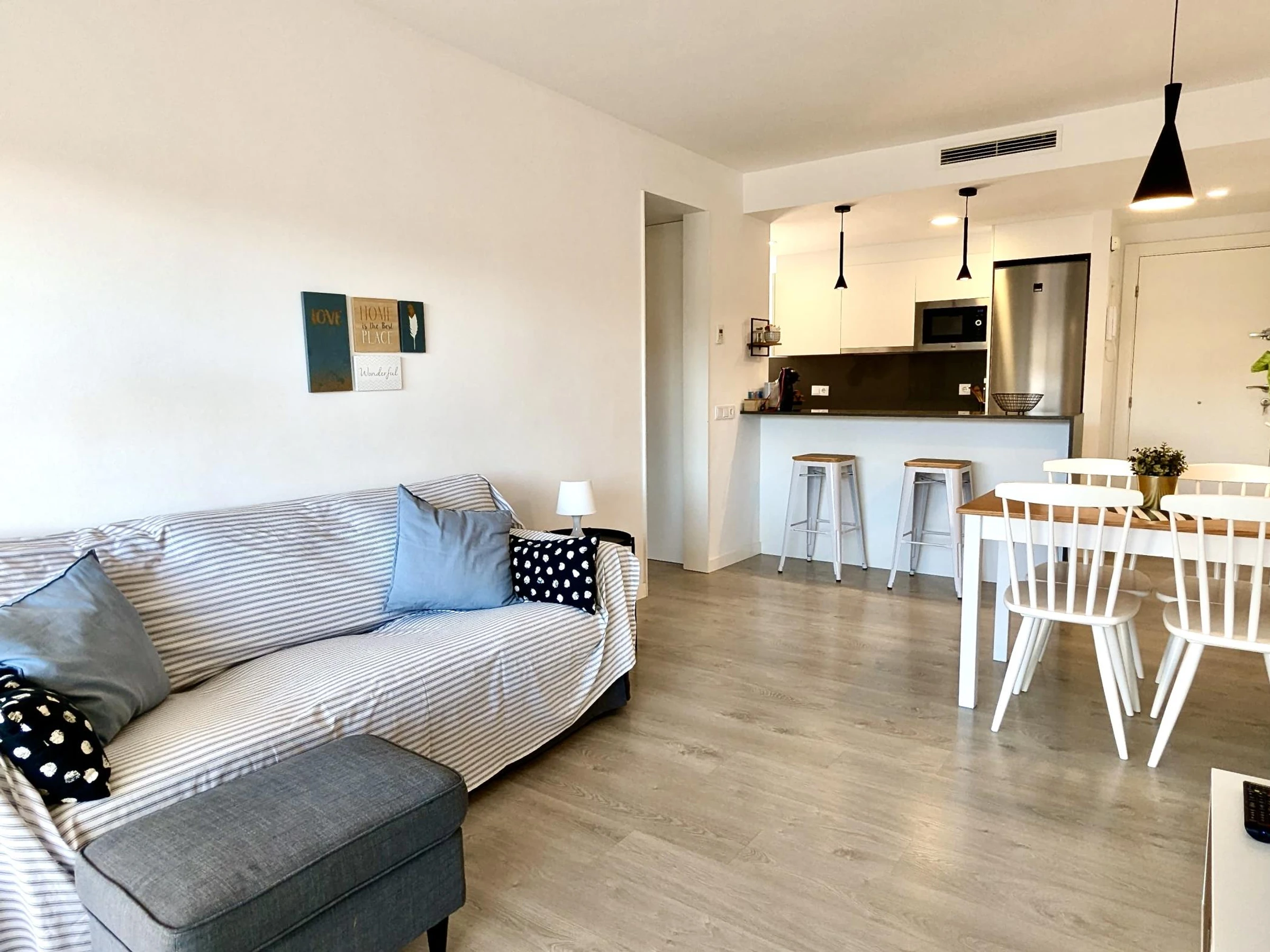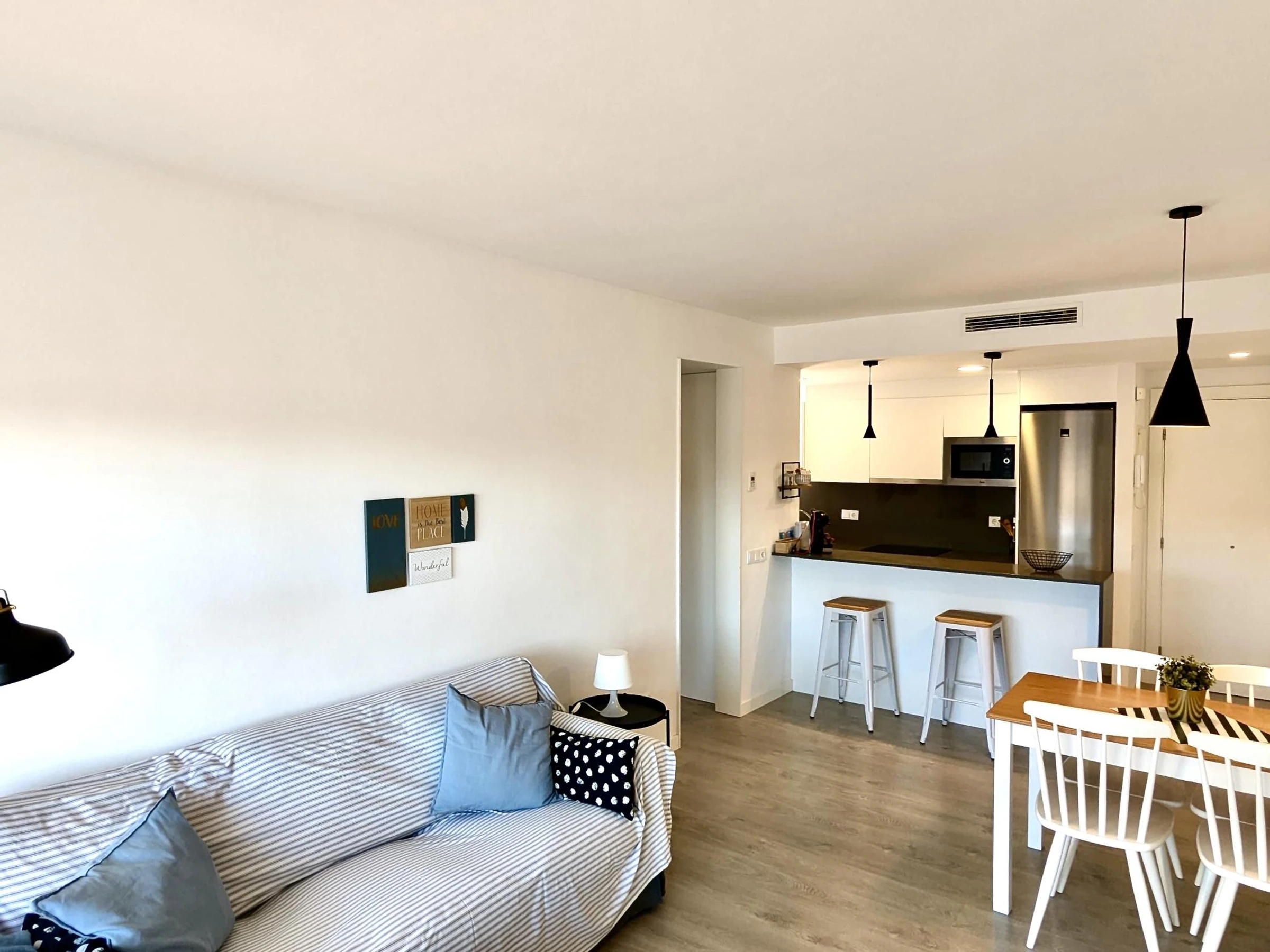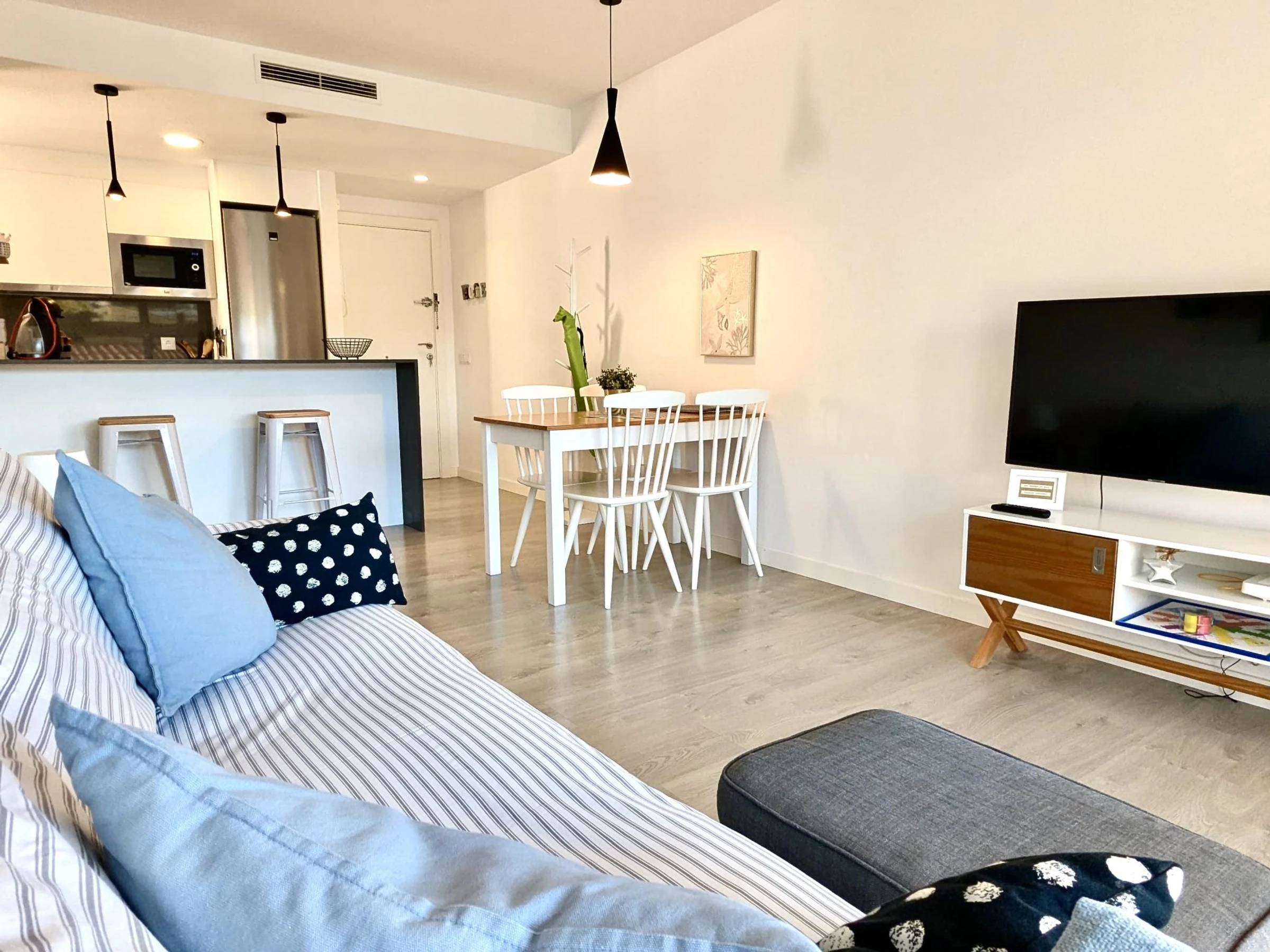 El apartamento cuenta con 2 habitaciones: una con cama doble y otra con dos camas individuales, además de un baño completo. Está completamente equipado, aire acondicionado, con wifi para que puedas mantenerte conectado durante tu estancia y un gran balcón donde relajarte después de un día de playa.