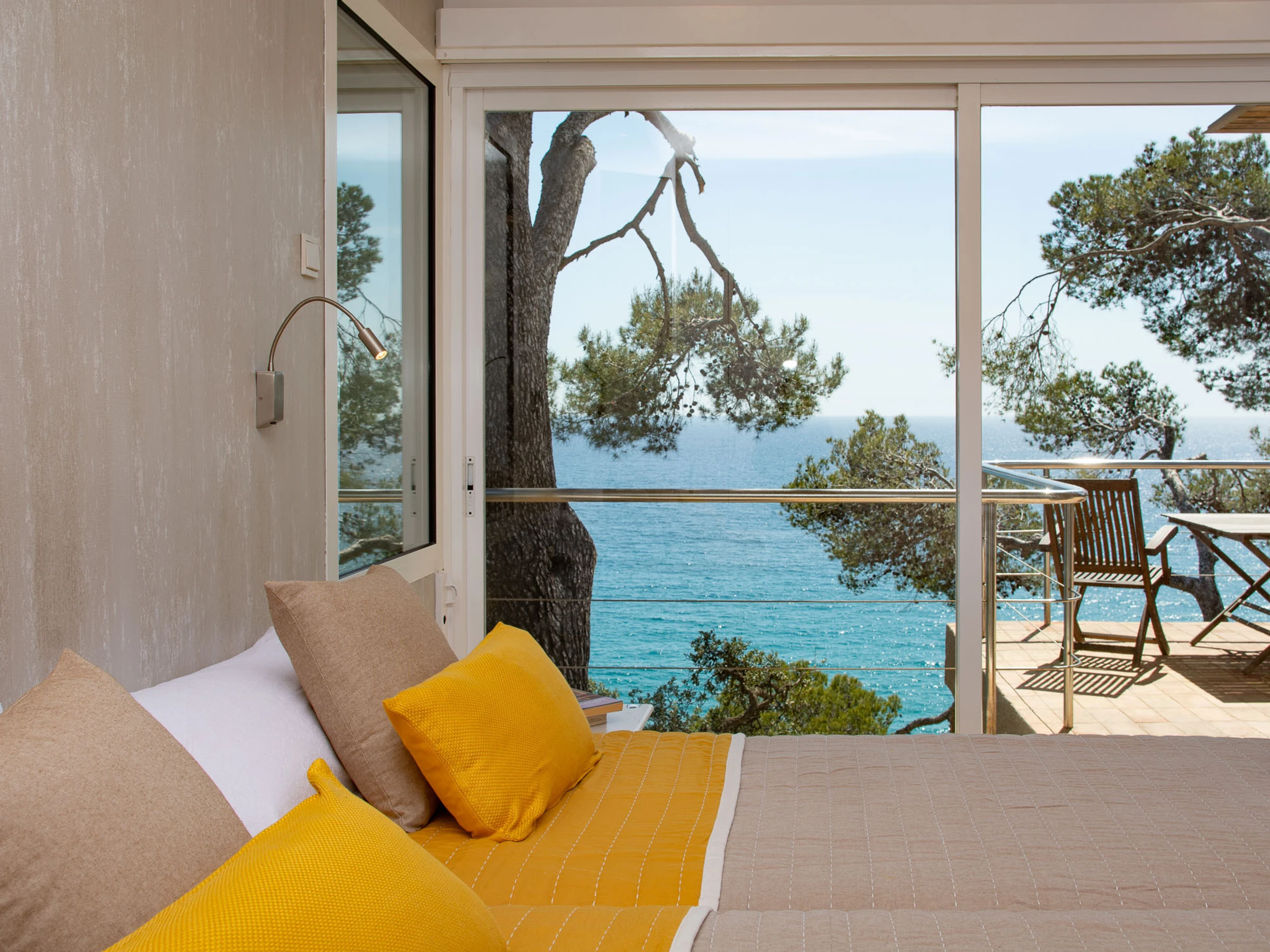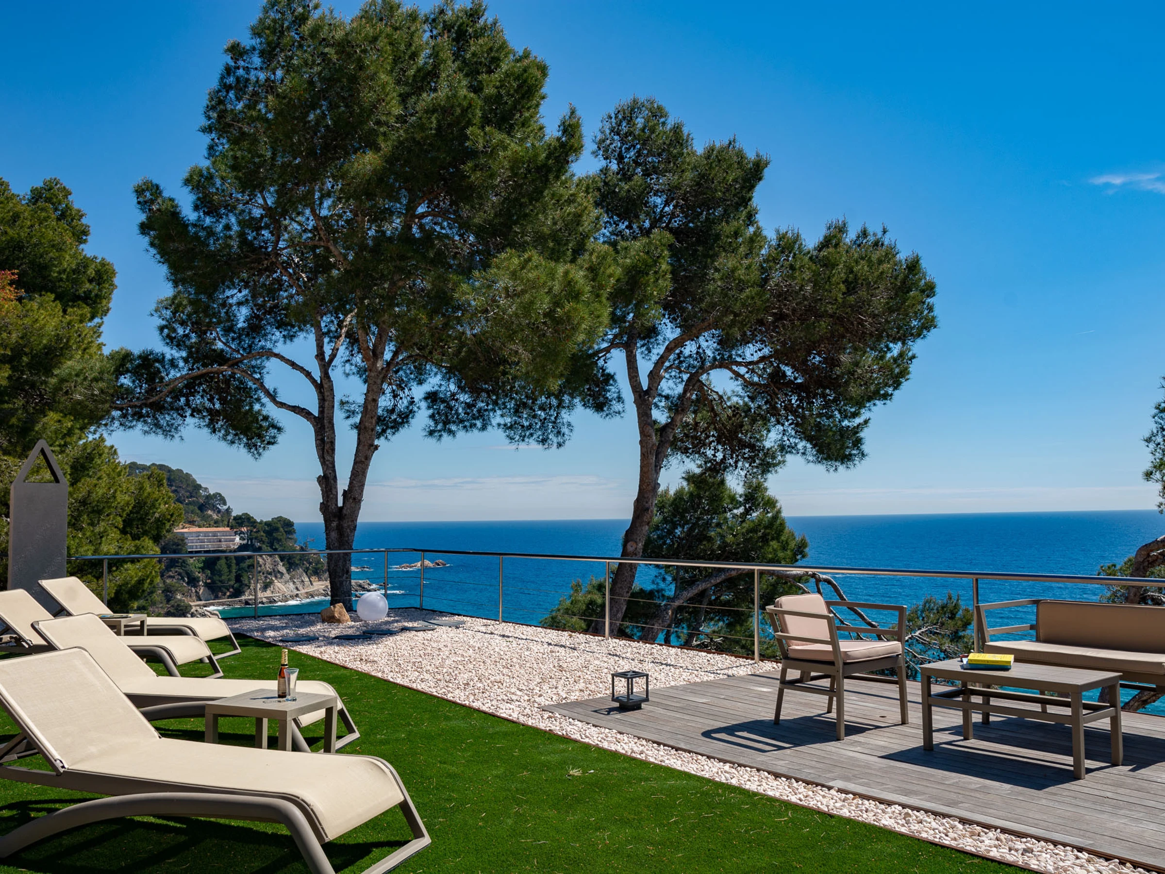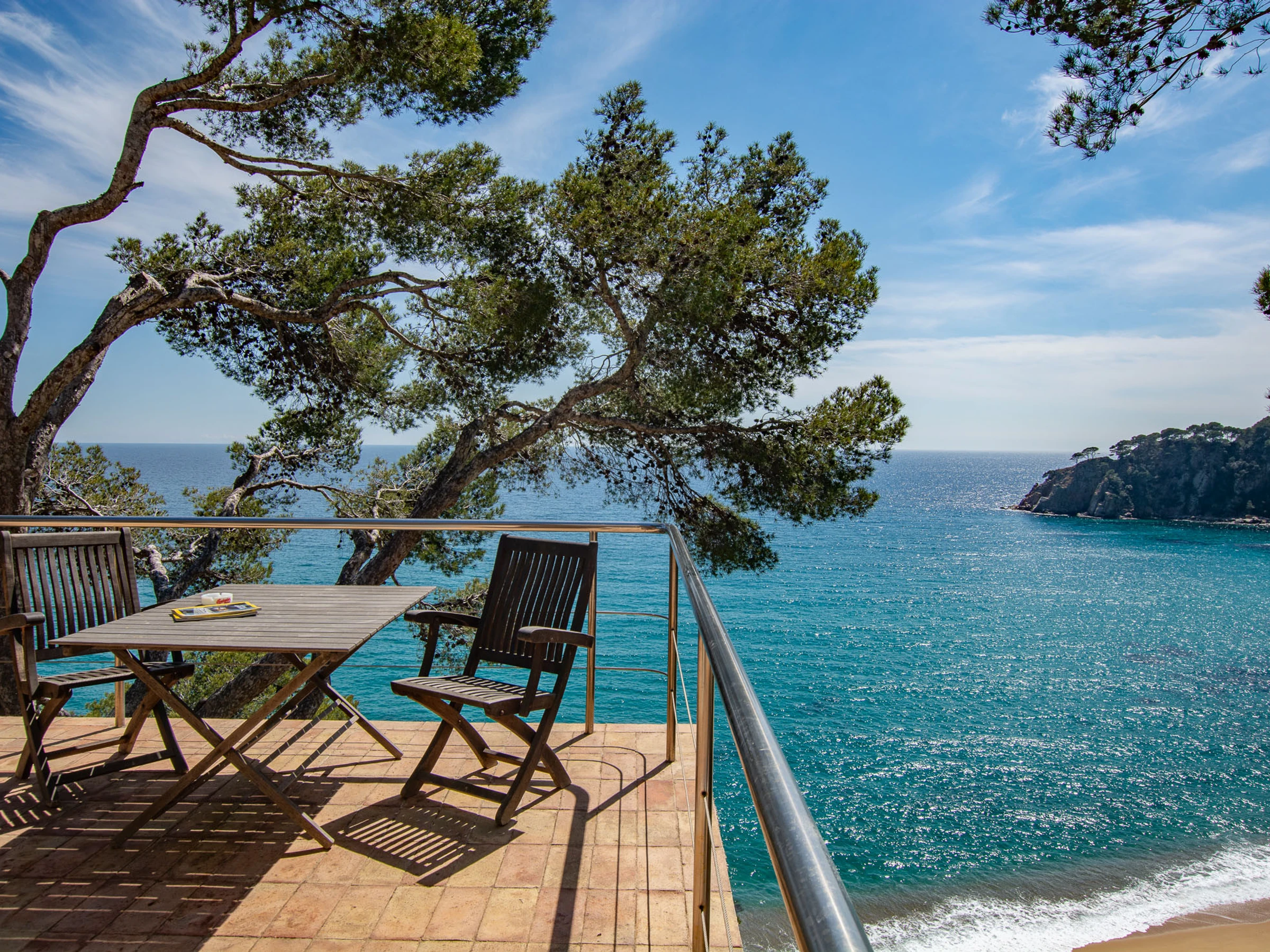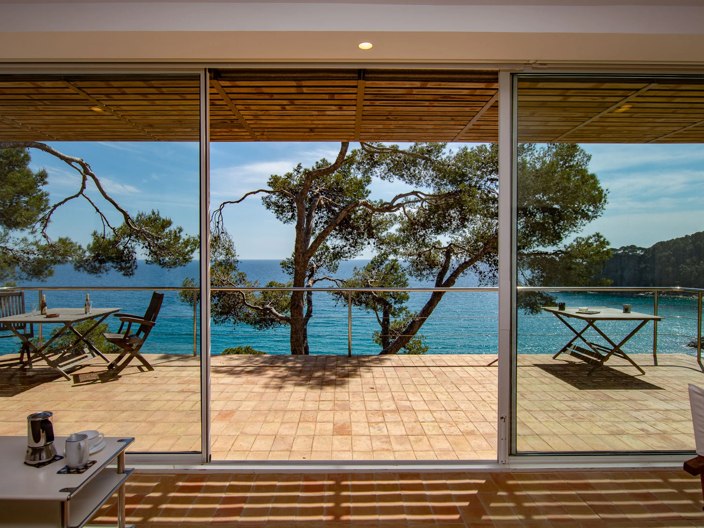 Las vistas desde esta villa son absolutamente impresionantes, con vistas a la playa a cada lado de la villa y a la hermosa Costa Brava con sus aguas cristalinas, rocas y pinos.