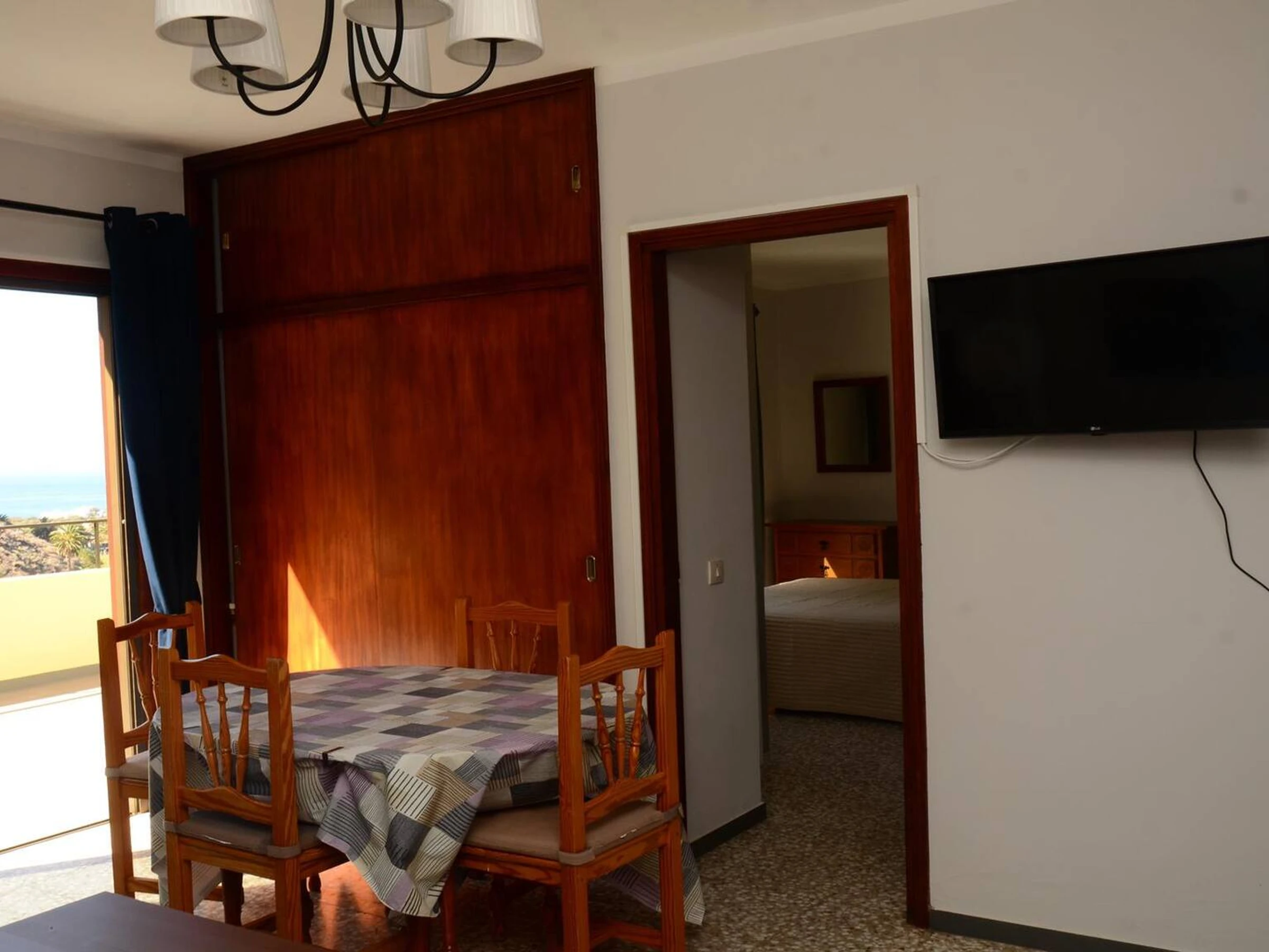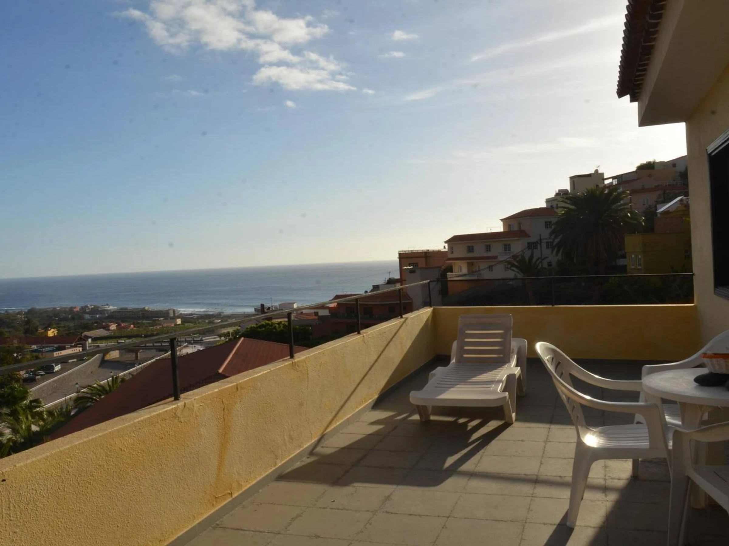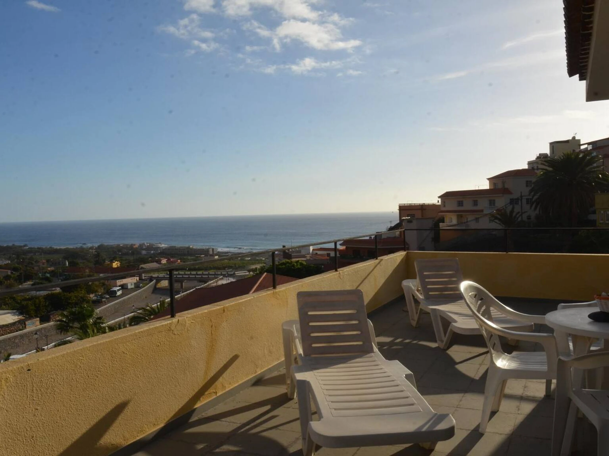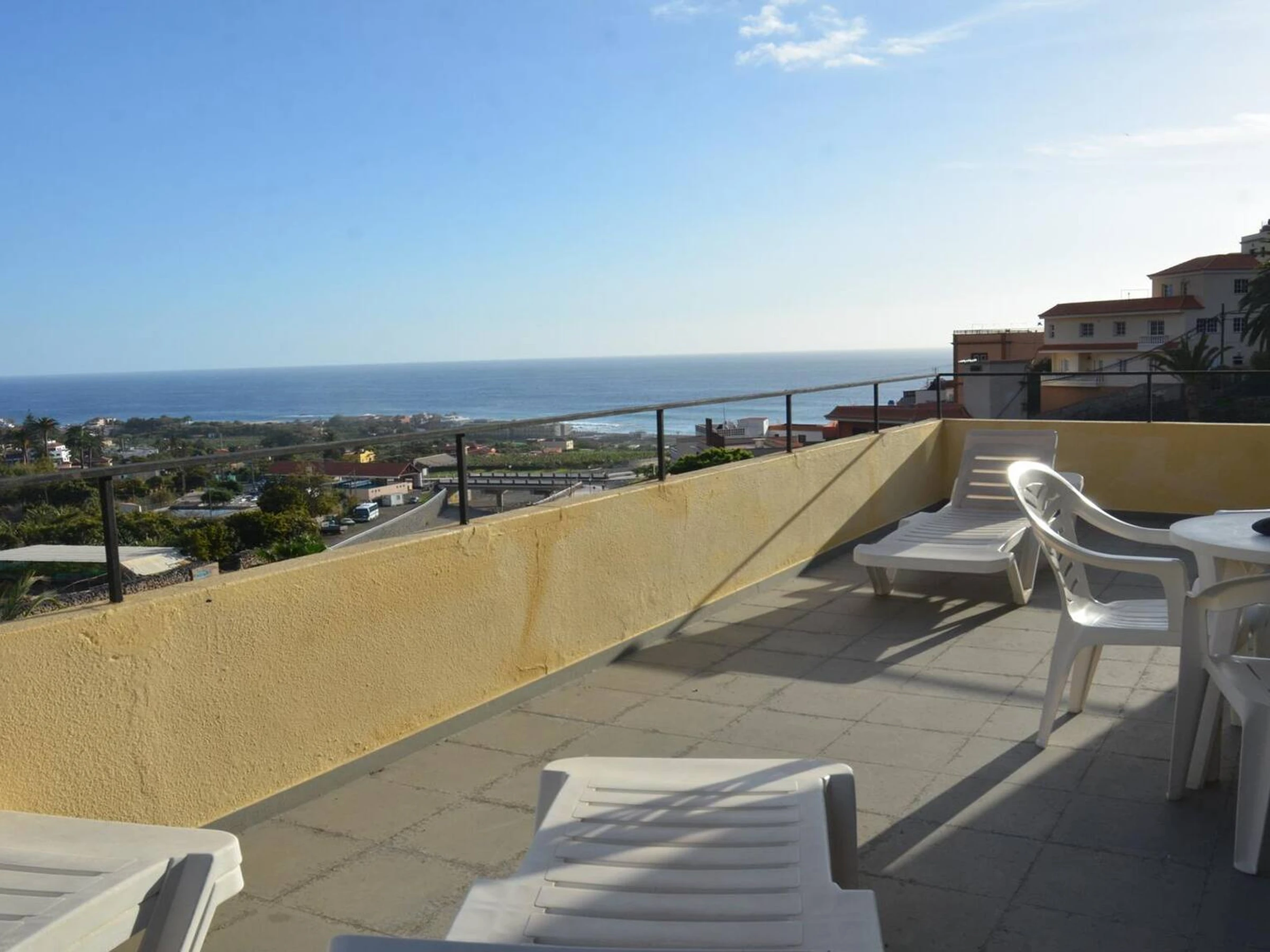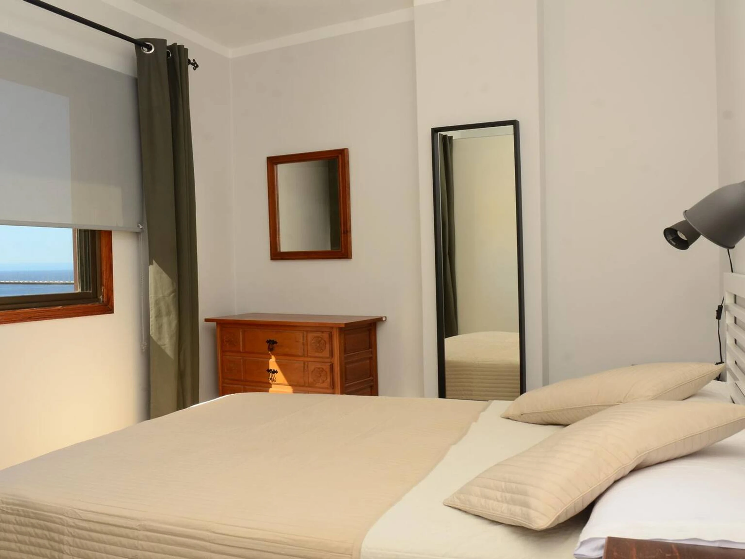 Tiene dos dormitorios con 2 camas el uno y el otro con cama matrimonio, salón-cocina, baño, y una terraza grande con la vista hacia al mar.