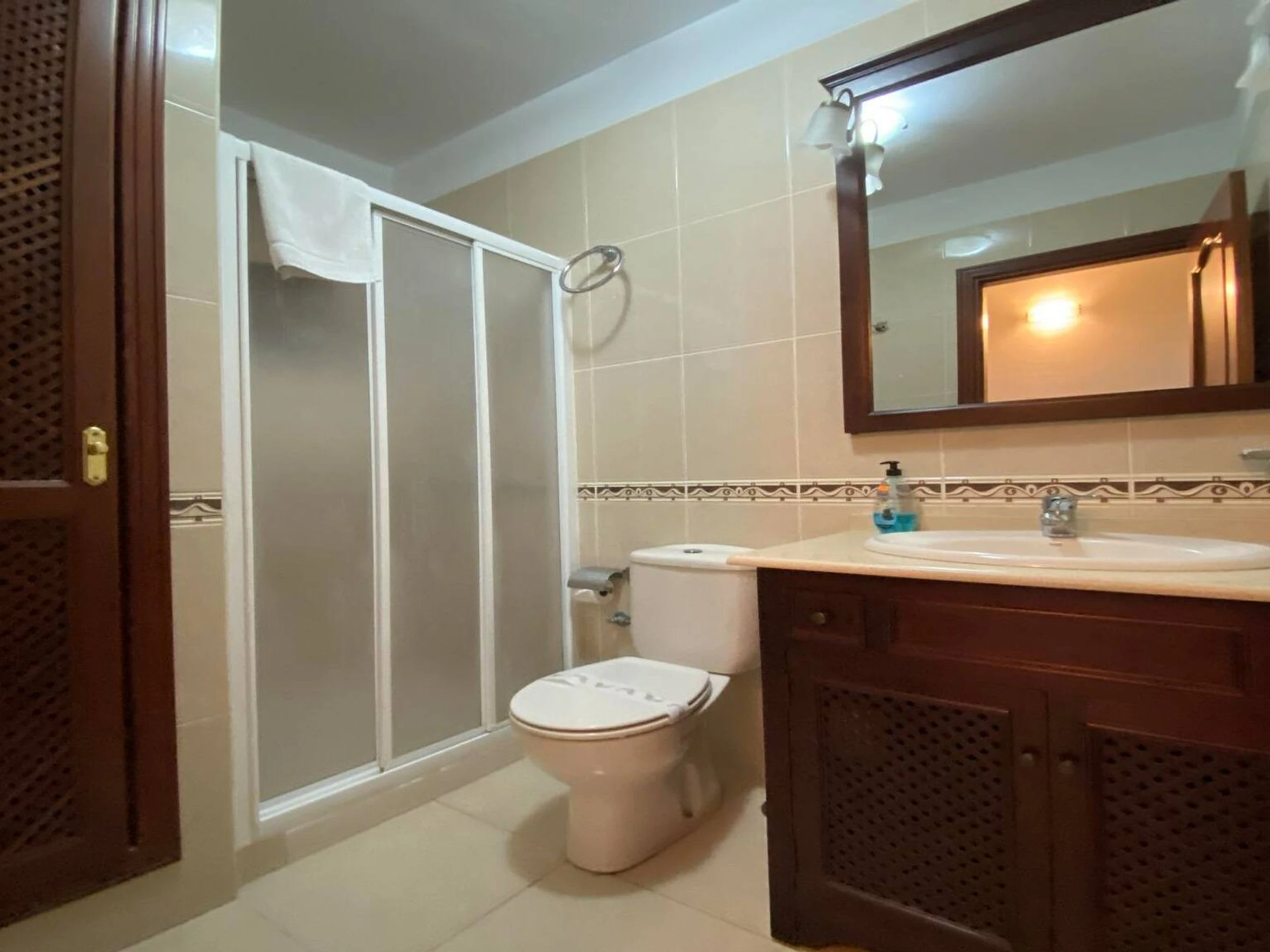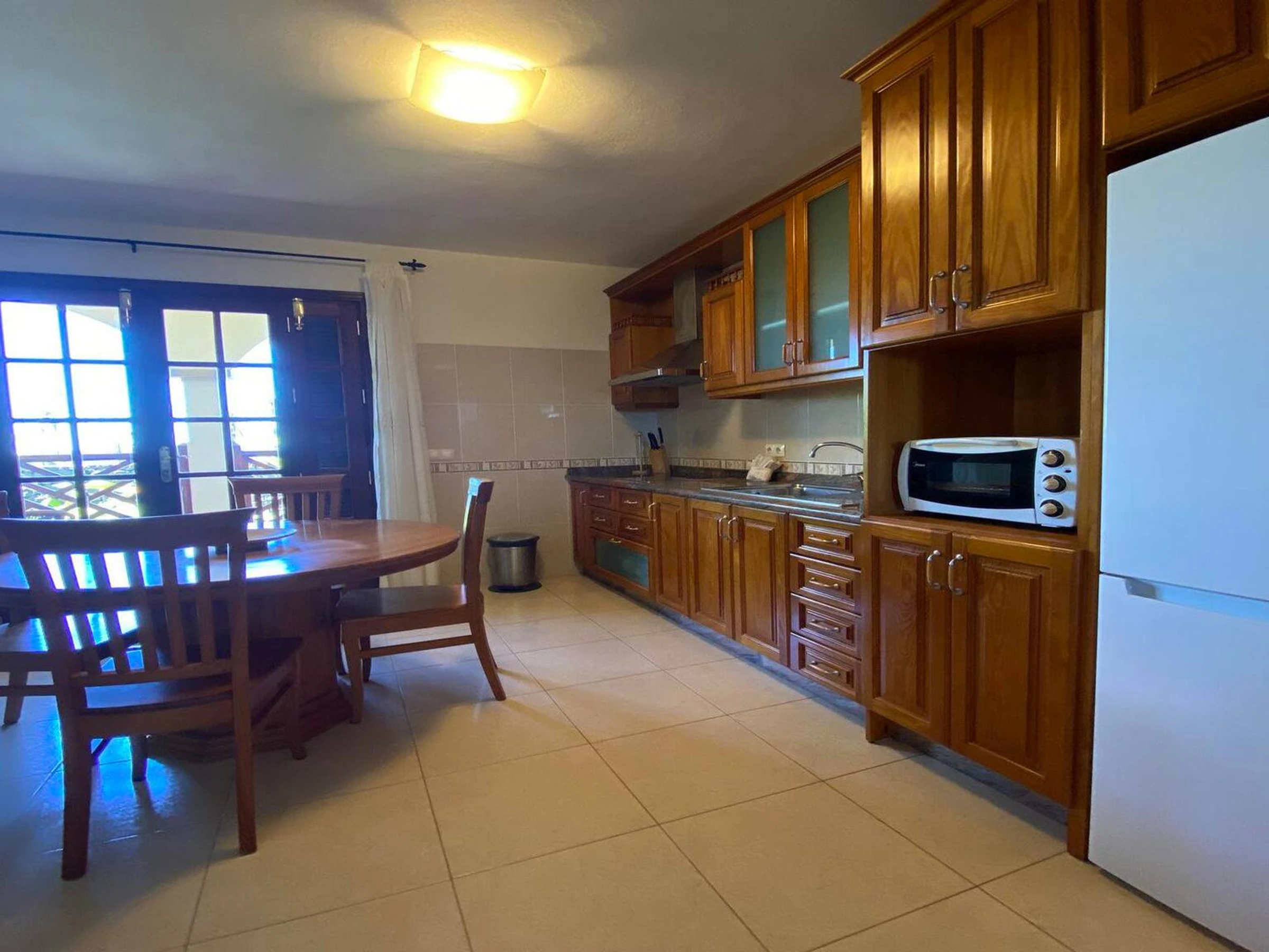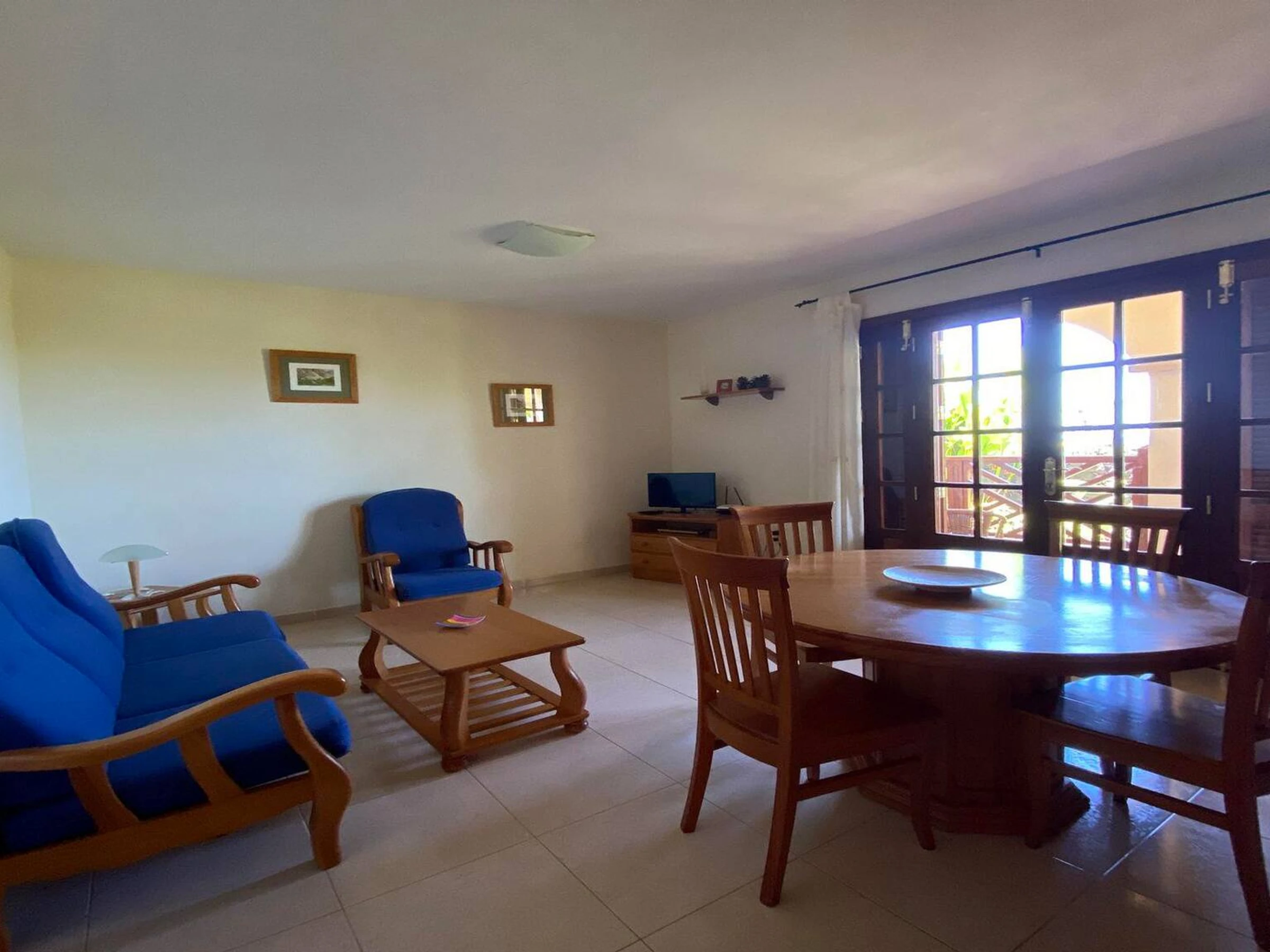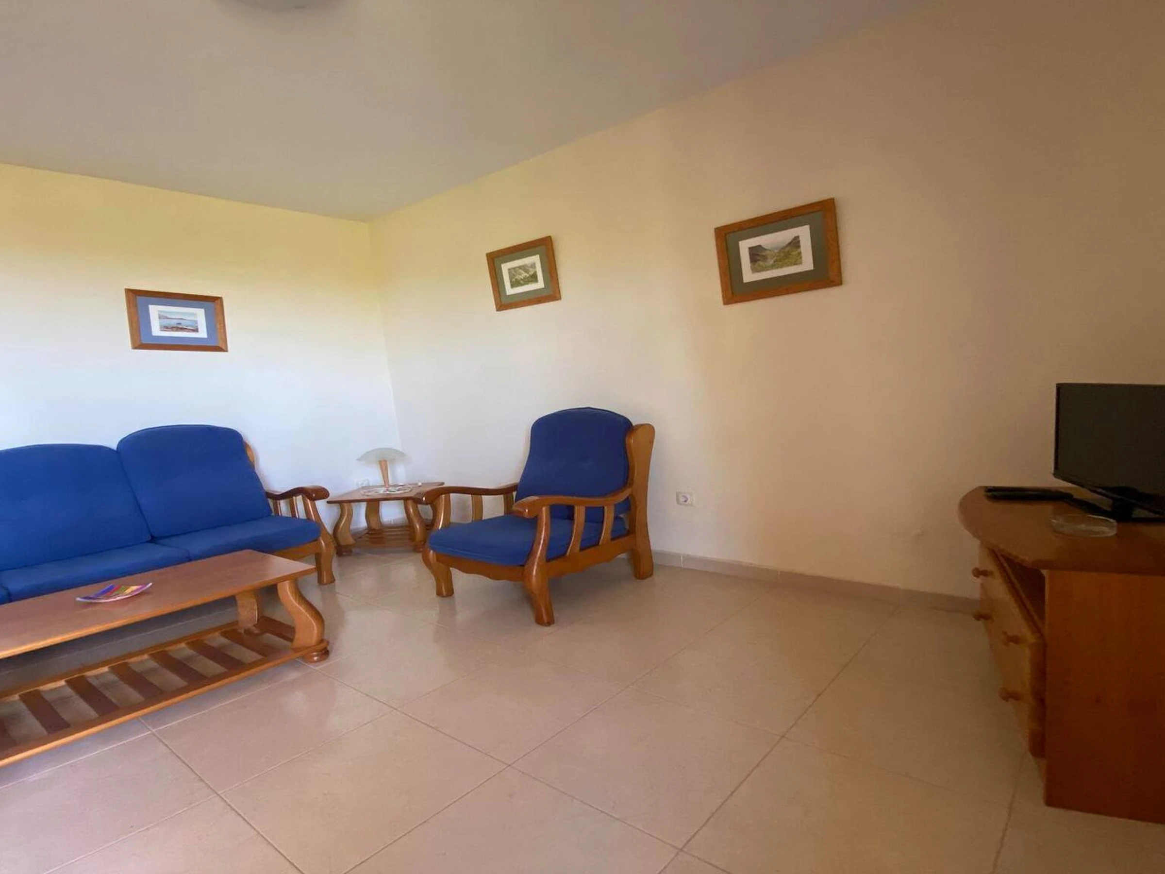El apartamento nº 2 está en la planta baja. El dormitorio no tiene ventana al exterior, si no al pasillo. Tiene un salón grande con cocina, baño y balcón con vista a las plataneras.