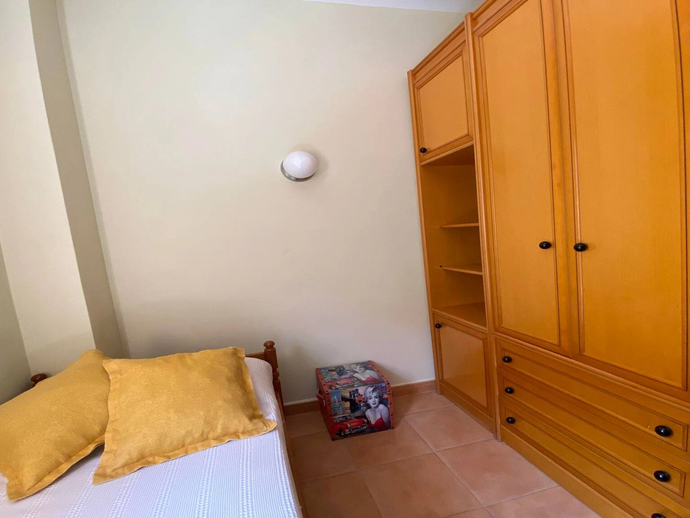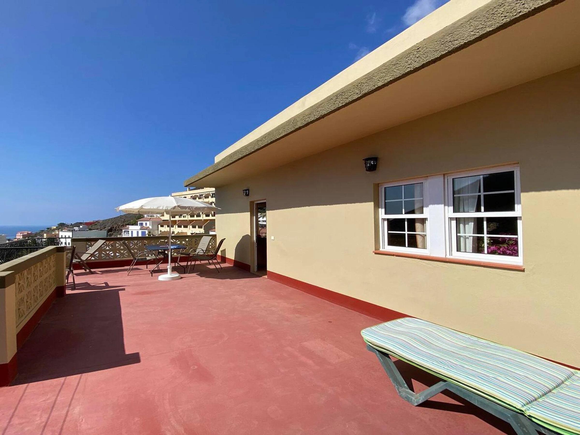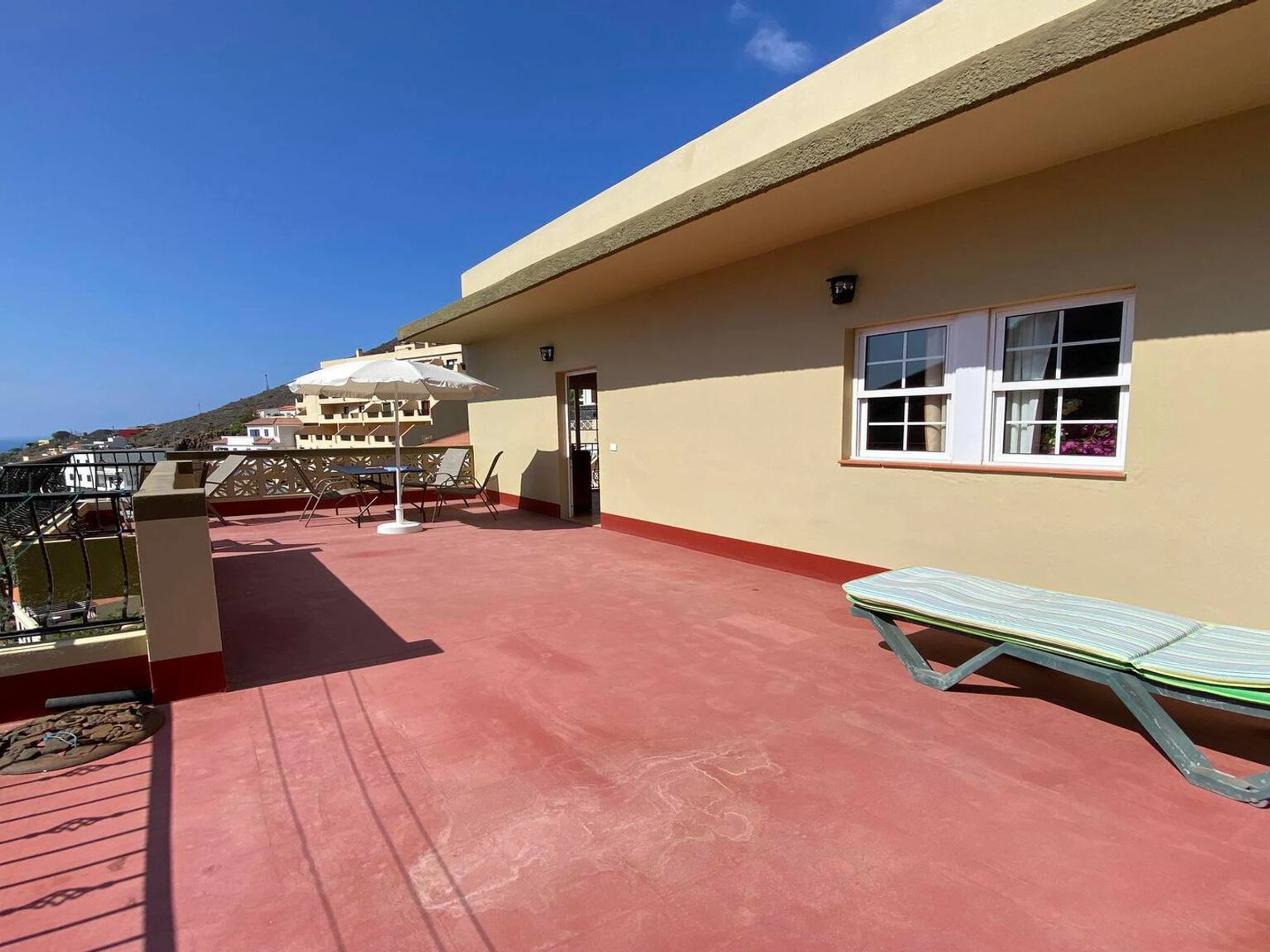 El Apartamentos Nº 8 es el ático, tiene tres dormitorios, salón, cocina, baño y una terraza grande amueblada con tumbonas, sillas y mesa y con vista al mar.
