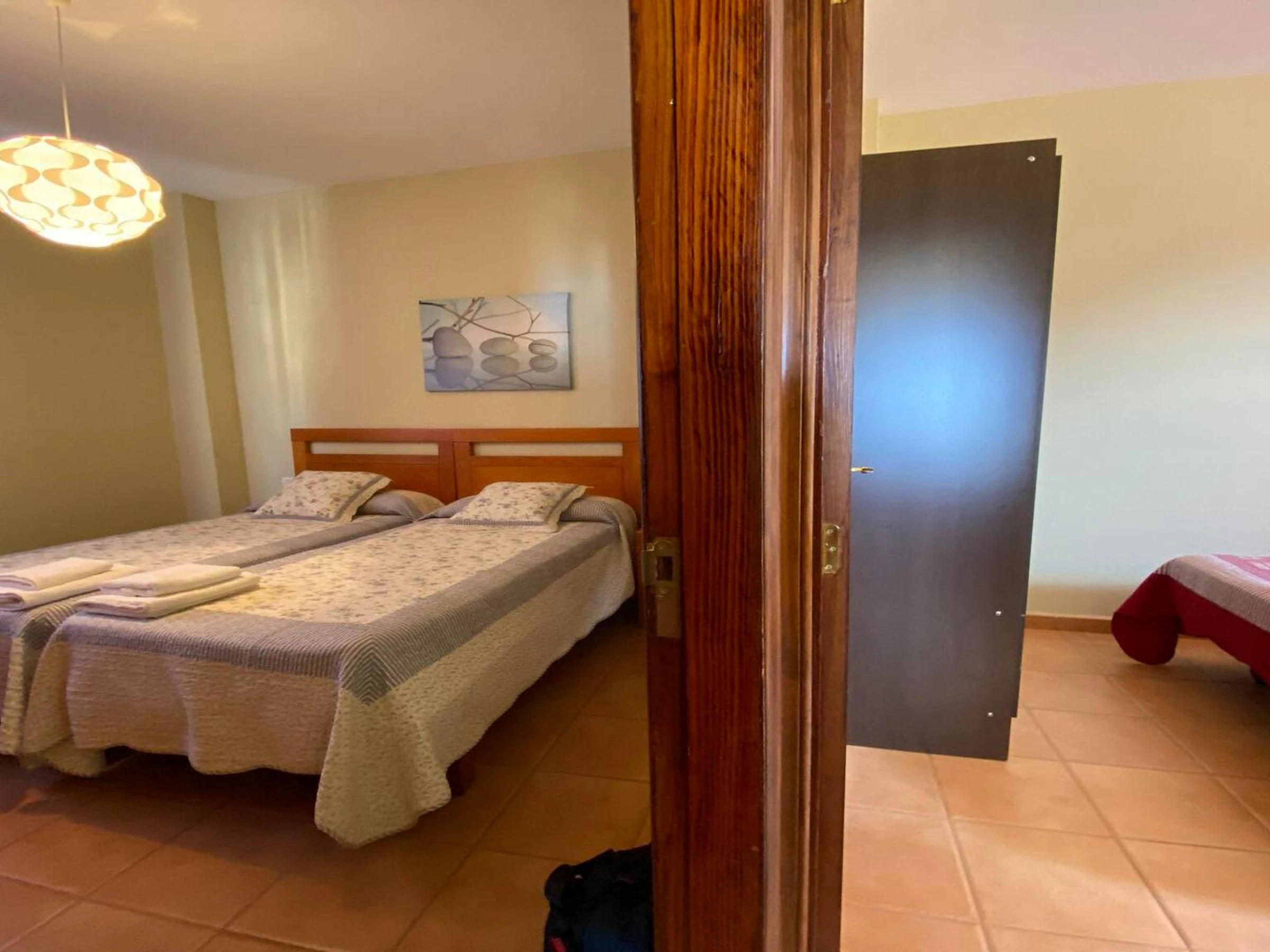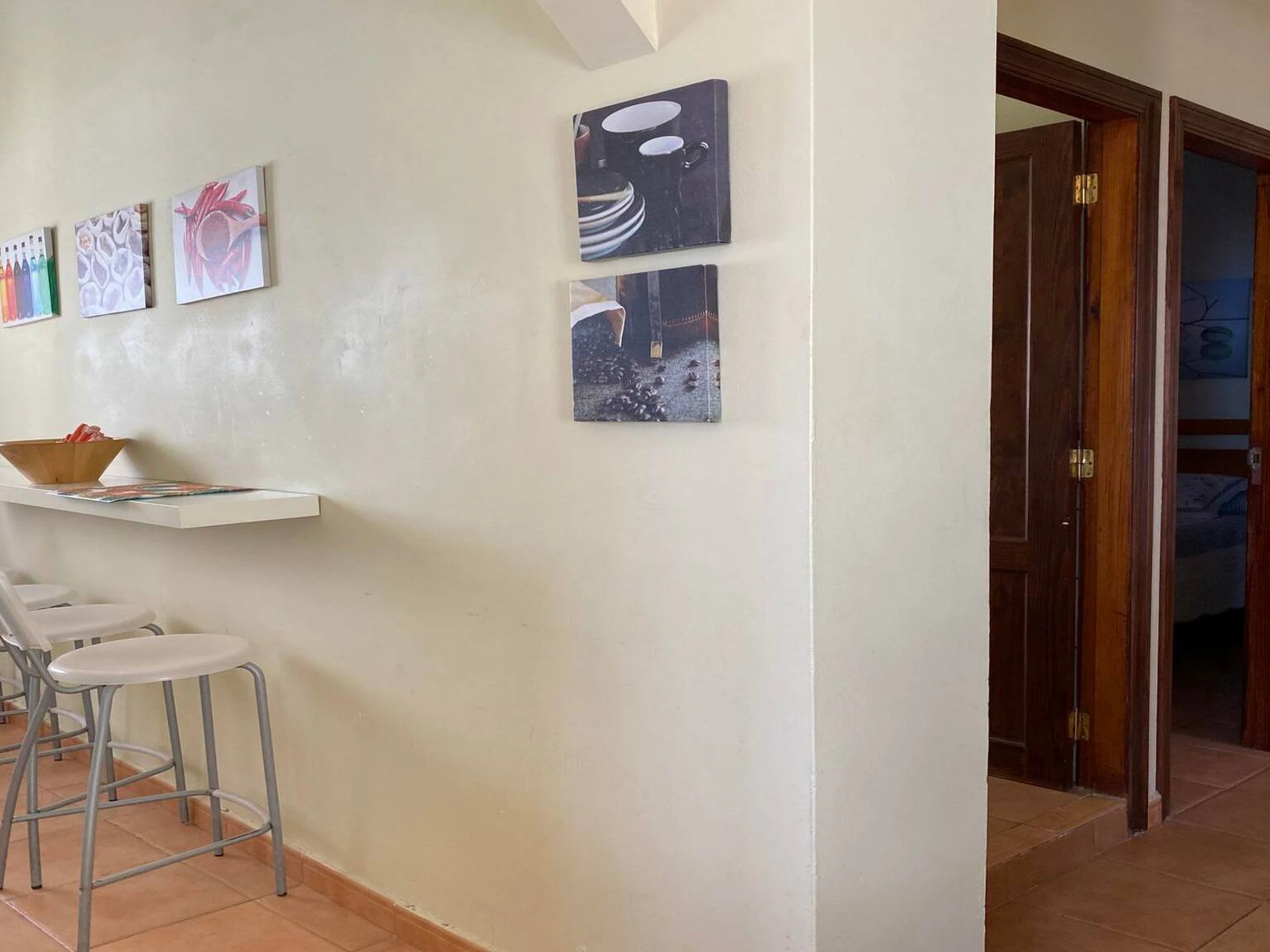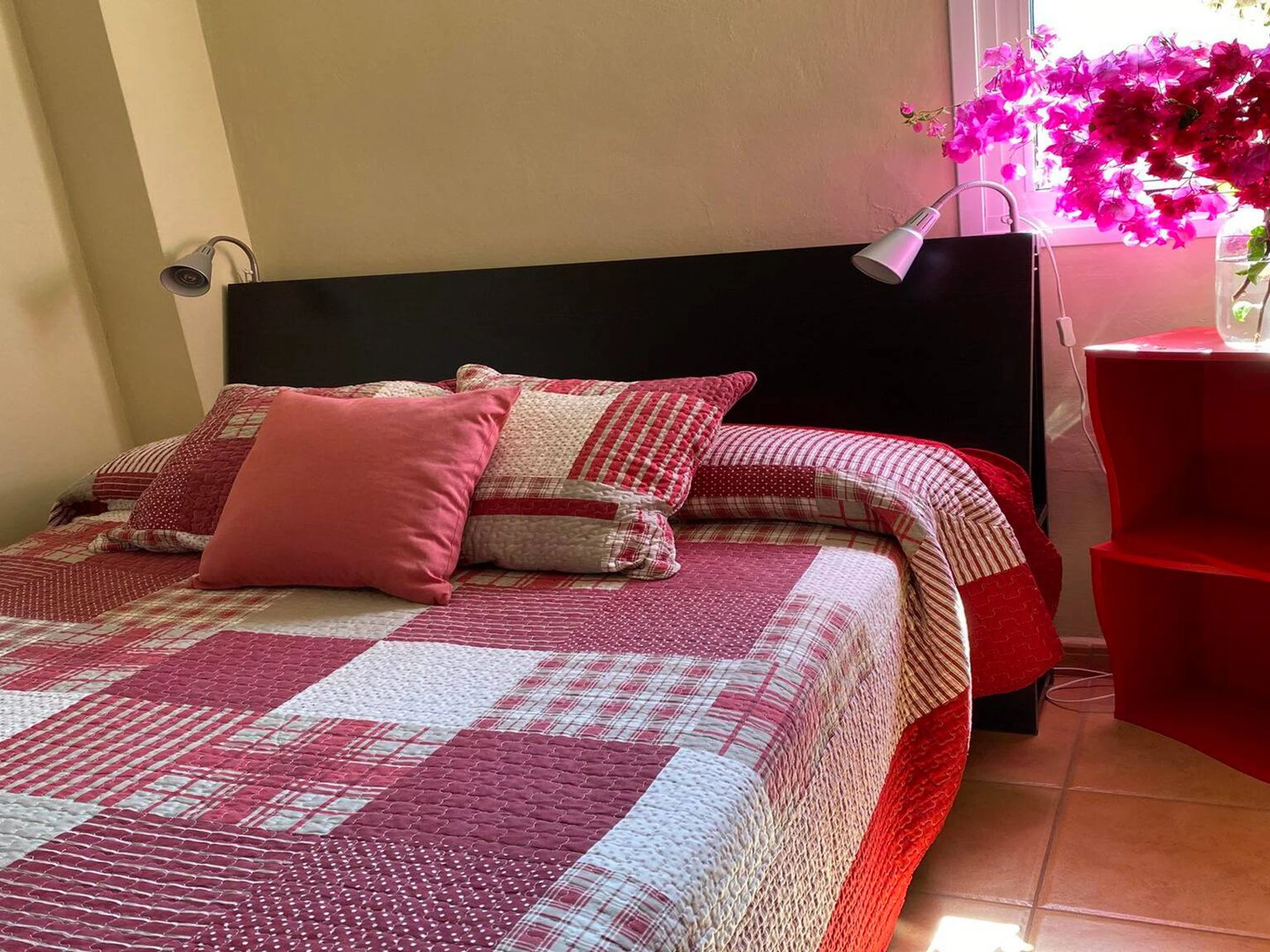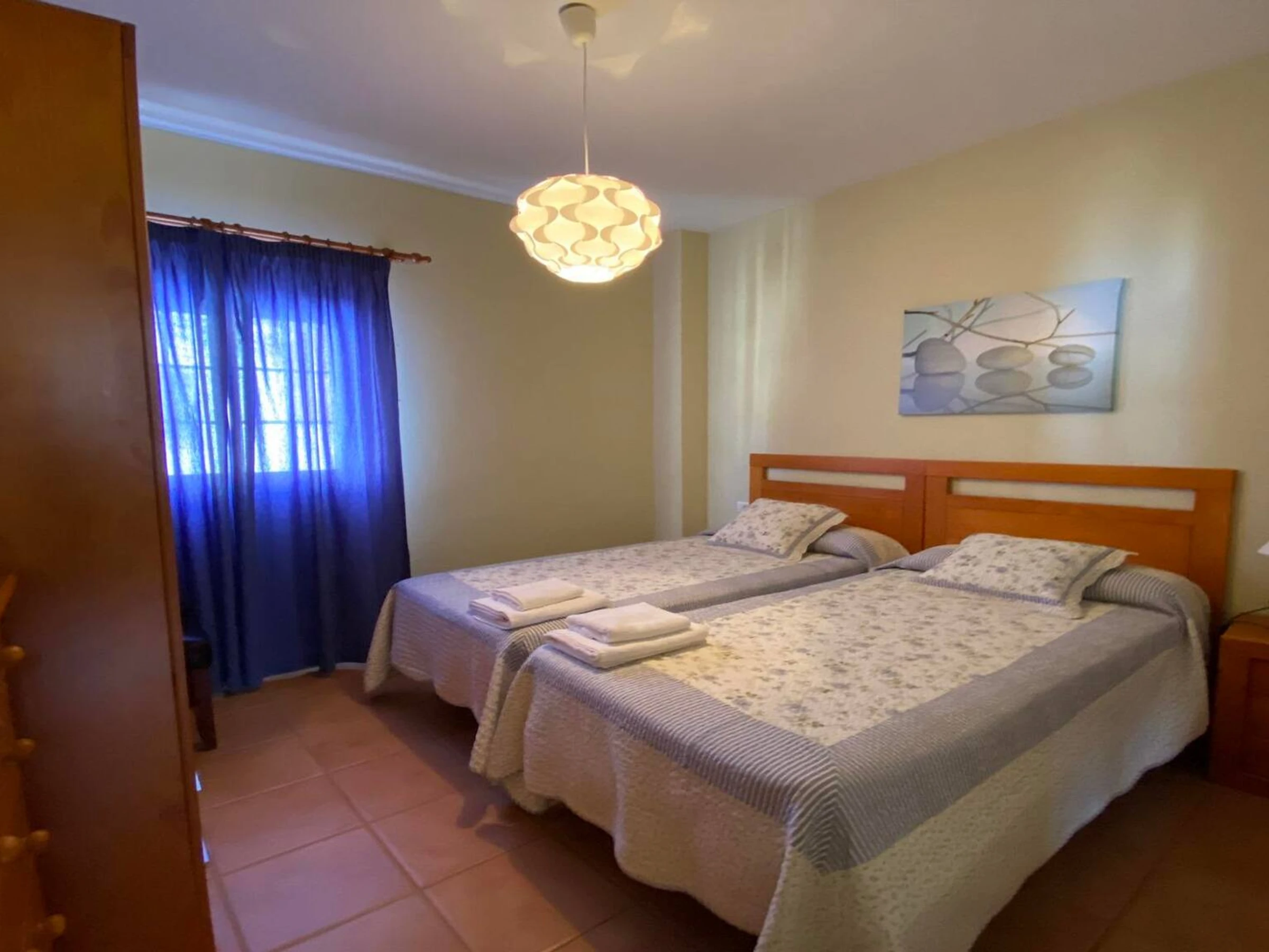 El Apartamentos Nº 8 es el ático, tiene tres dormitorios, salón, cocina, baño y una terraza grande amueblada con tumbonas, sillas y mesa y con vista al mar.