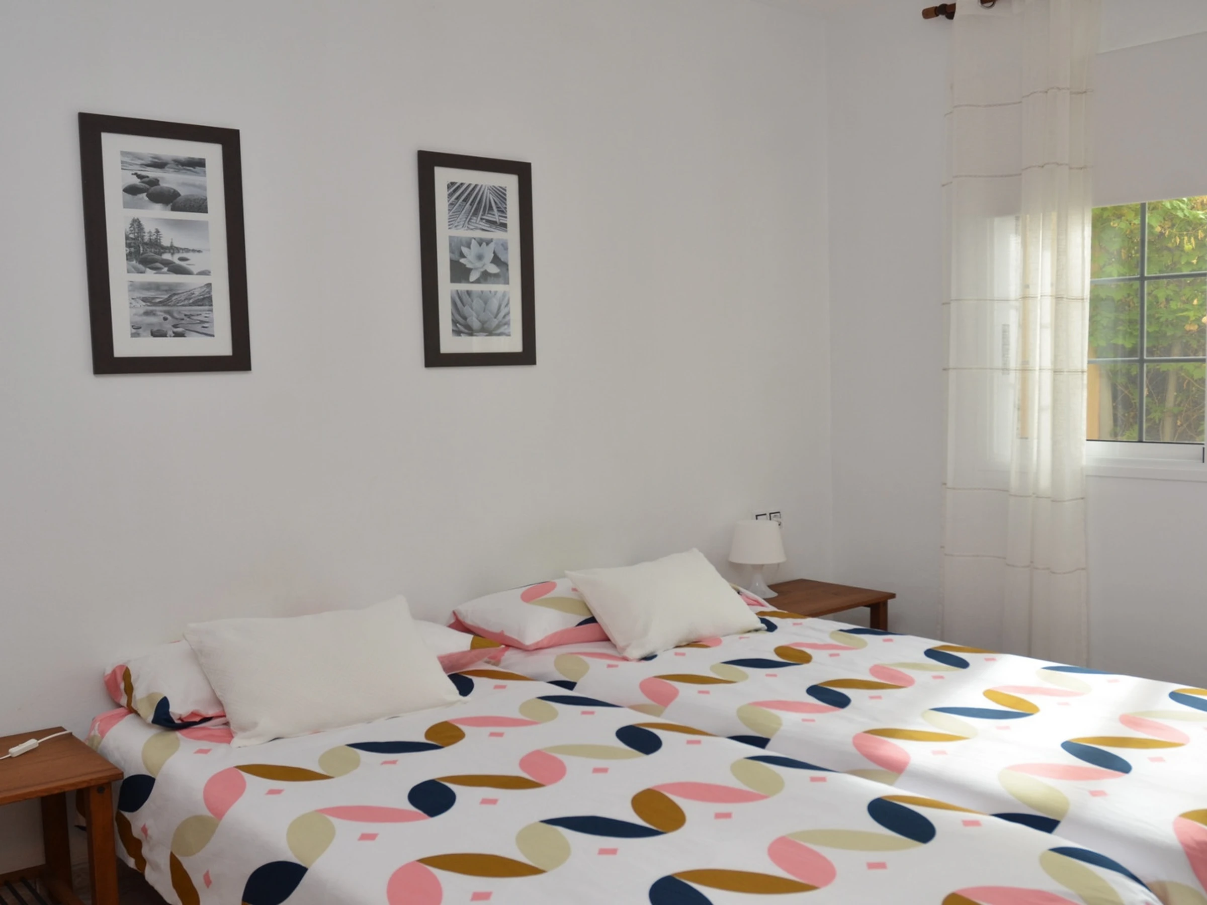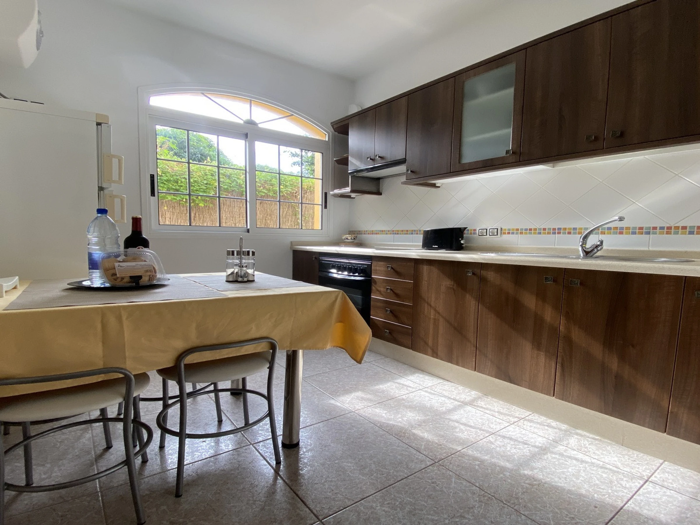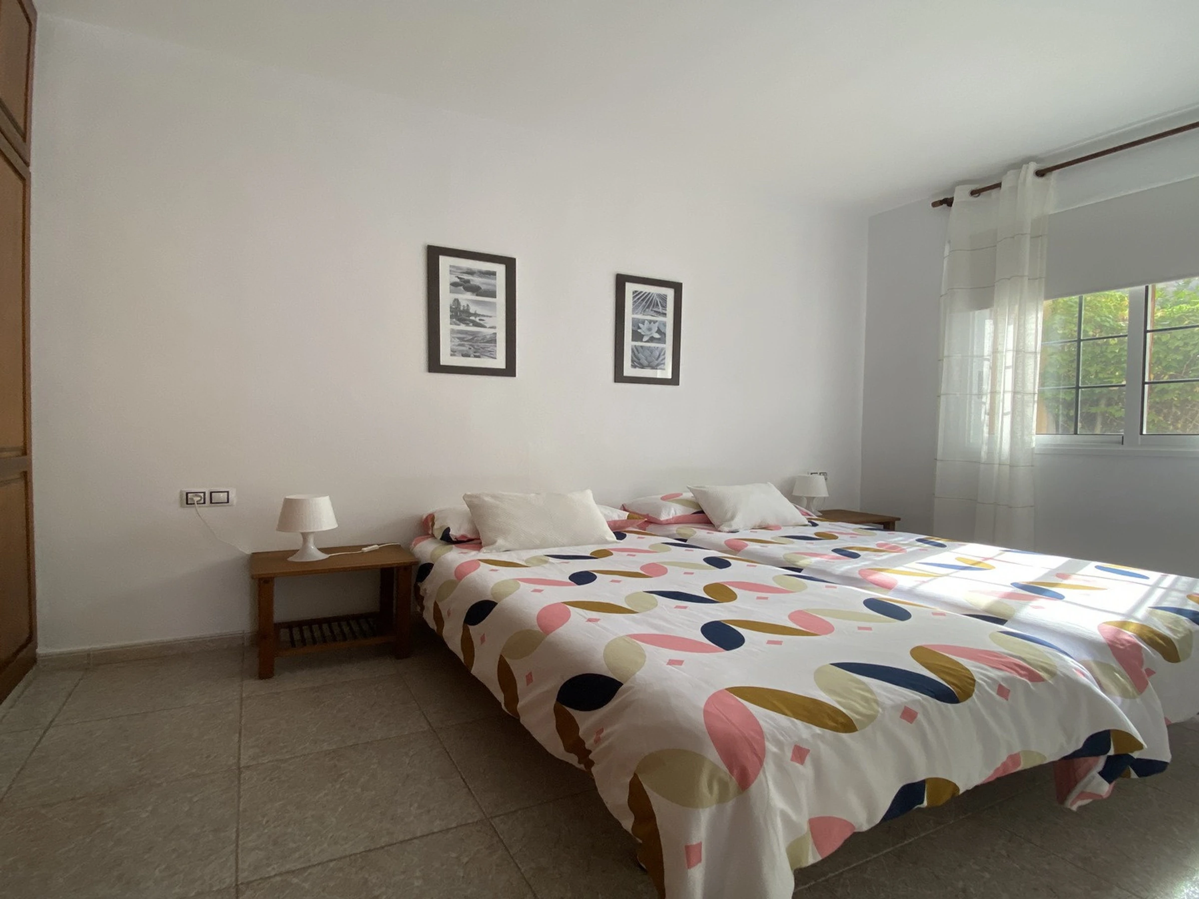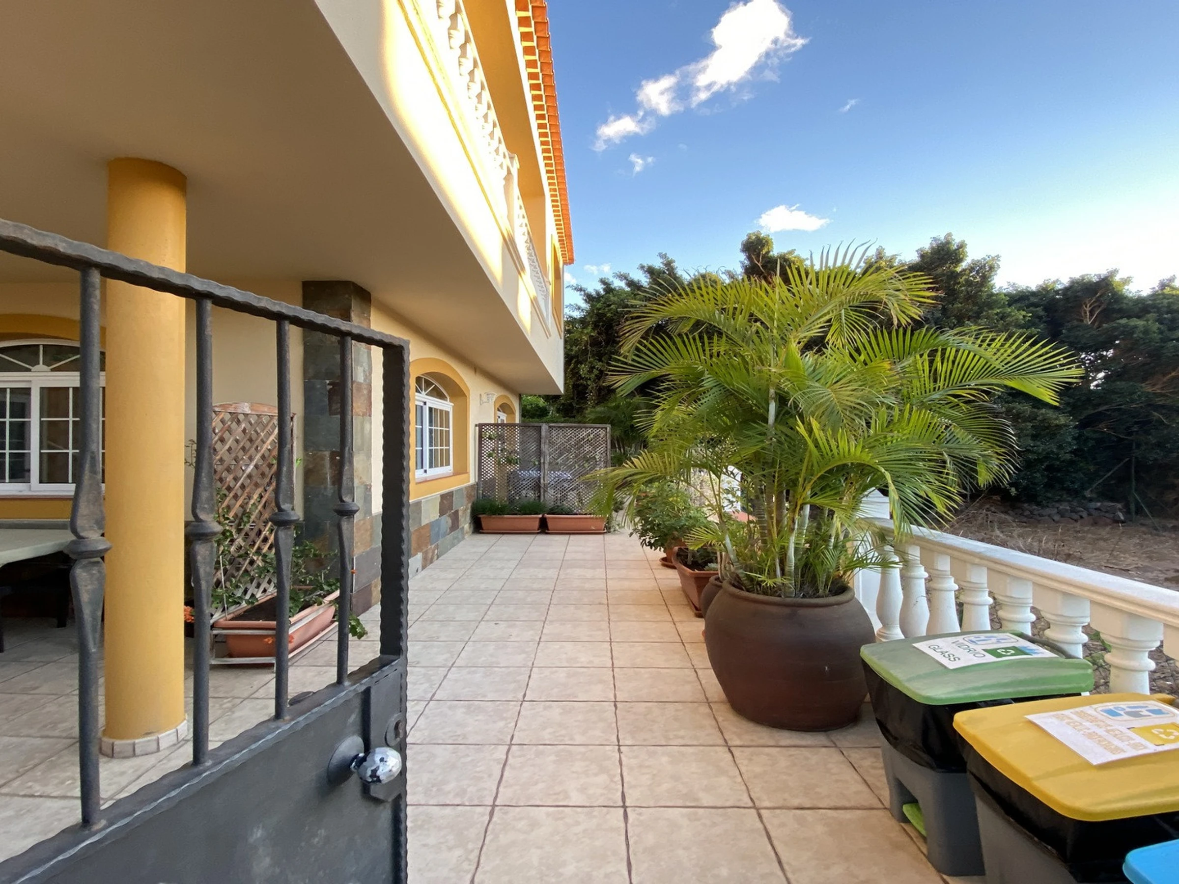 Apartamentos Passiflora son dos apartamentos en la planta baja de una casa privada, que se encuentra en una zona tranquila en el barrio de Borbalán. Desde la carretera hay que pasar por un camino de peatones de más o menos 200 m hasta la casa. Cada apartamento tiene su terraza con mesas y sillas y en común hay una azotea equipada con tumbonas. Los clientes del apartamento 1B tienen que pasar alado de la terraza del apartamento 1A para llegar a su entrada. Los apartamentos están muy bien equipados y decorados con colores alegres. Apartamento 1 B: Tiene un dormitorio con dos camas individuales, en la zona de la entrada un sofá-cama y televisión, una cocina a parte con mesa de comedor y un baño.