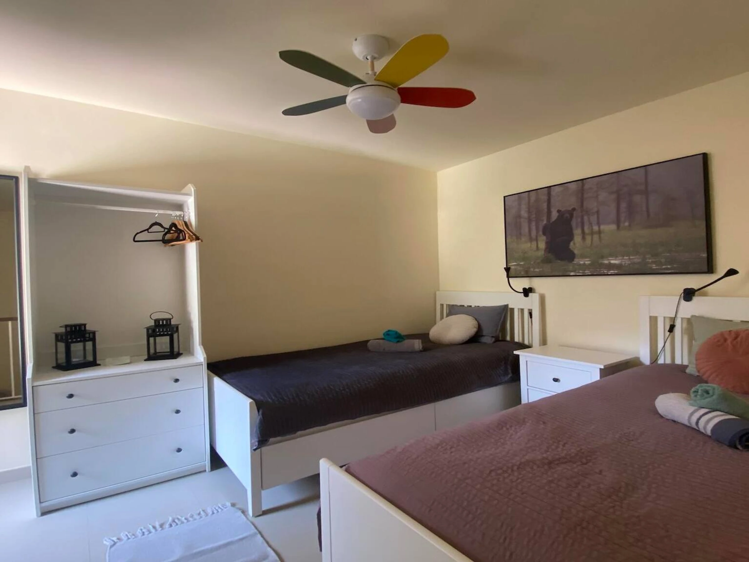 La casa está totalmente equipada y cuenta con una habitación adicional con dos camas y otro baño en la segunda planta.
