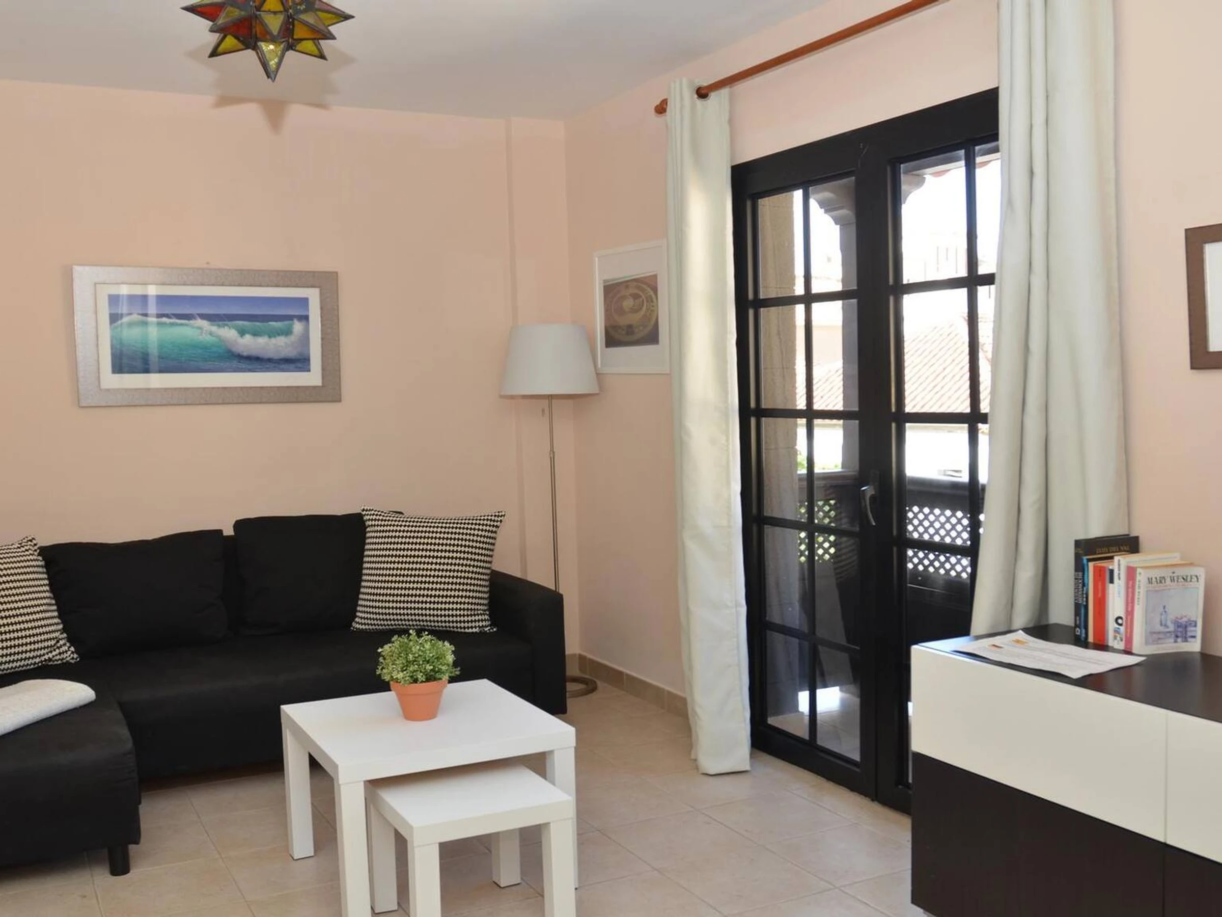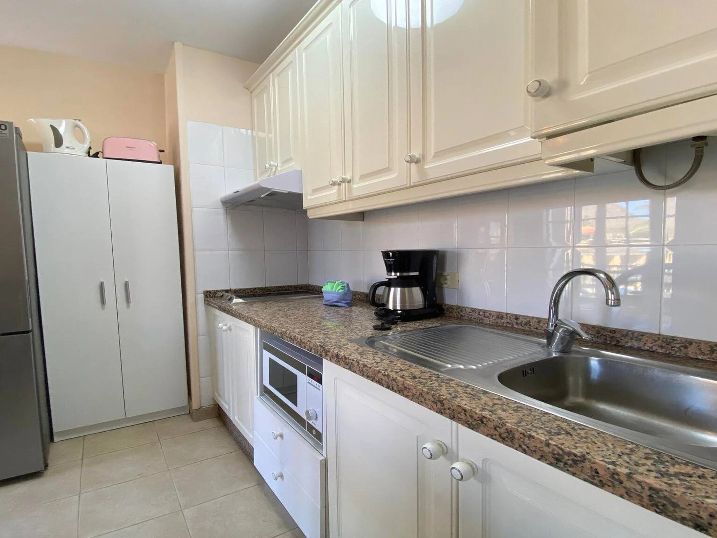 El apartamento cuenta con un dormitorio con una cama doble de 135 cm, un baño y un salón cocina que es una habitación luminosa, destacada por amplios ventanales que permiten la entrada de la cálida luz del sol, creando un ambiente acogedor y relajante. La decoración sencilla y funcional aporta un toque moderno y fresco al espacio.
