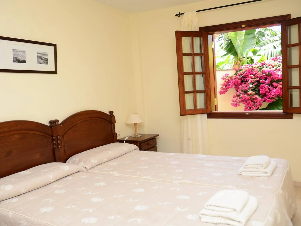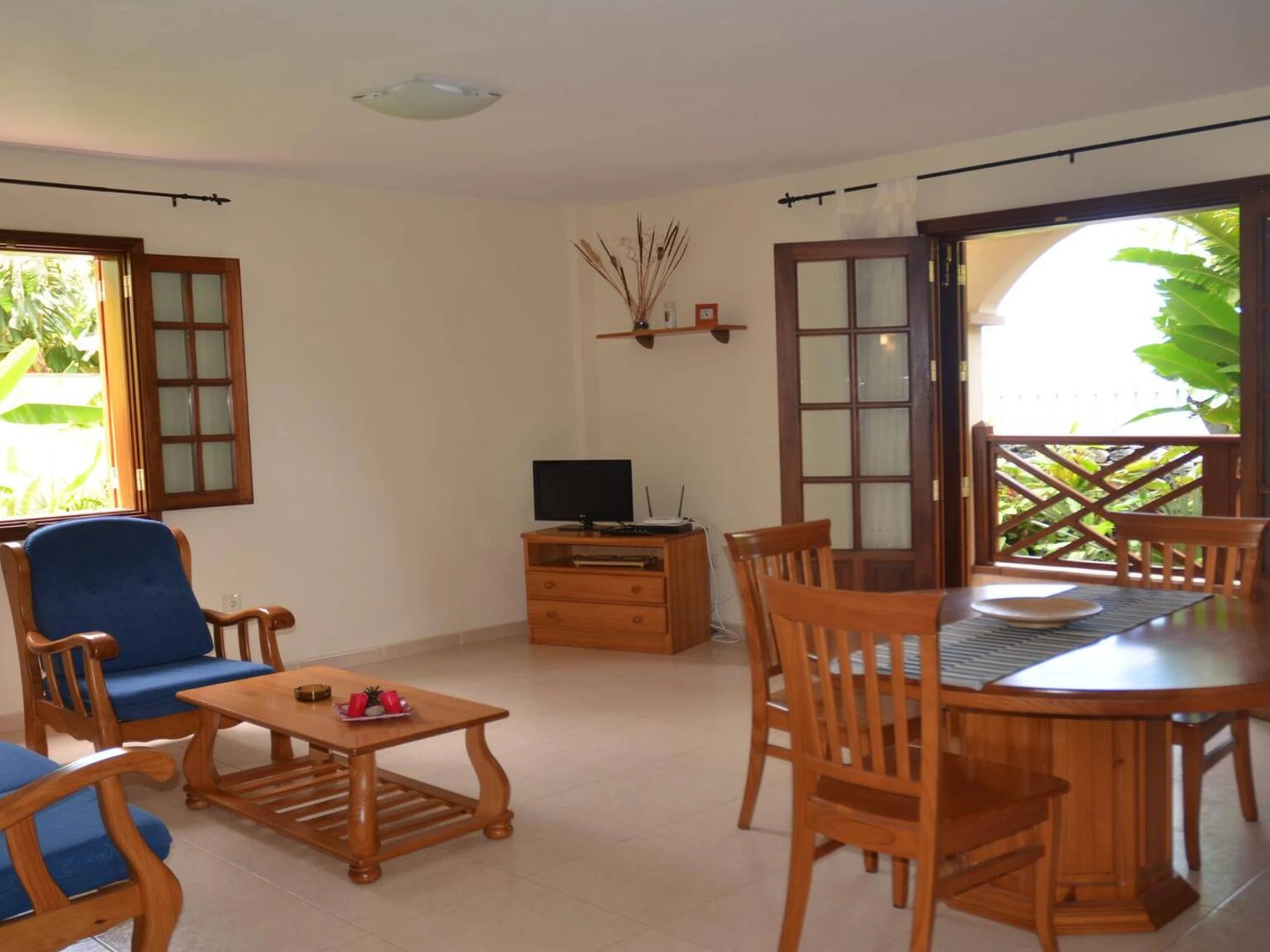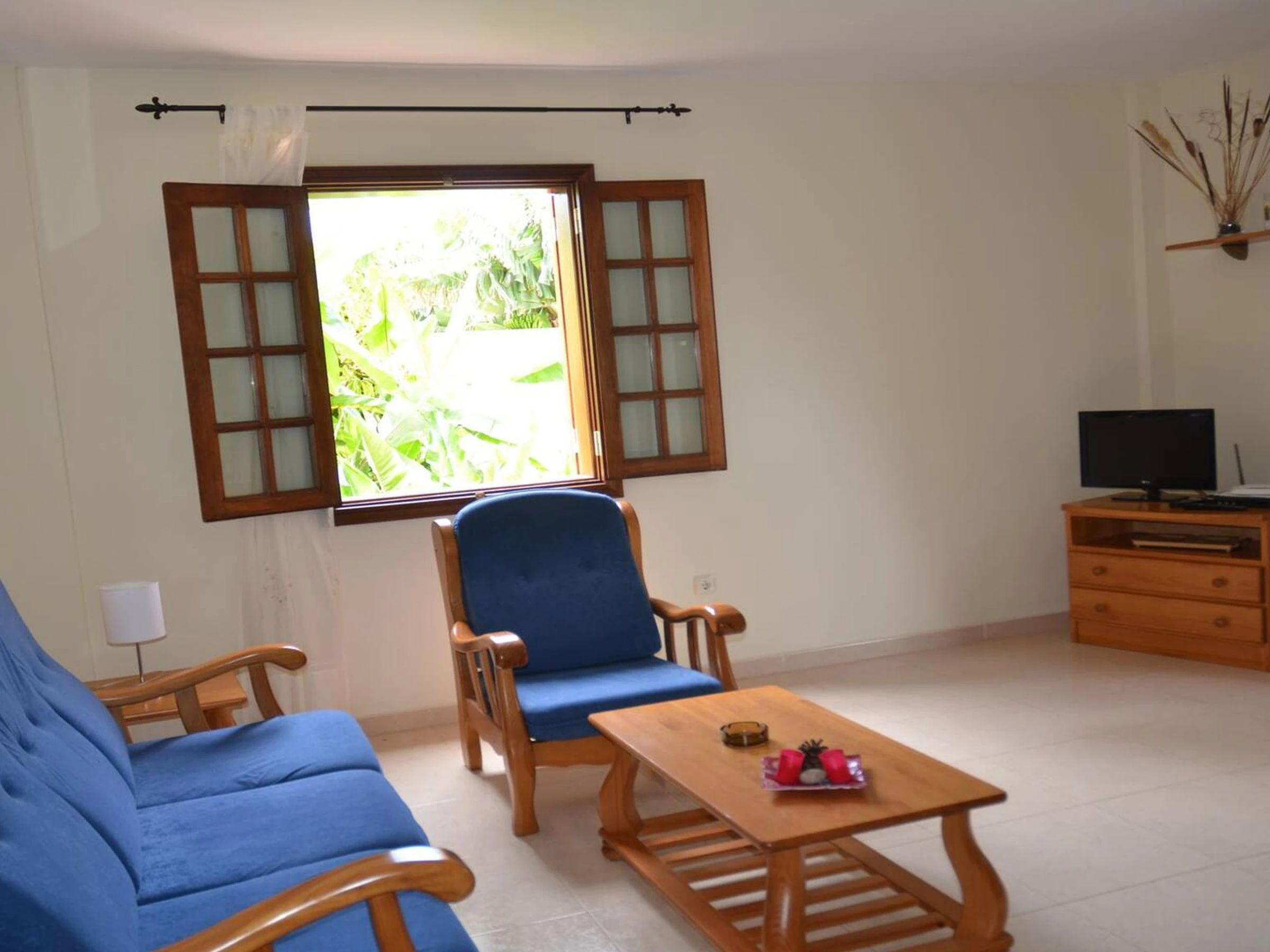 El apartamento nº 3 es el último del pasillo en la planta baja. Consiste de un dormitorio, salón con cocina, baño y un terraza grande, que tiene vistas a la platanera. El precio indicada es válido para 2 personas.