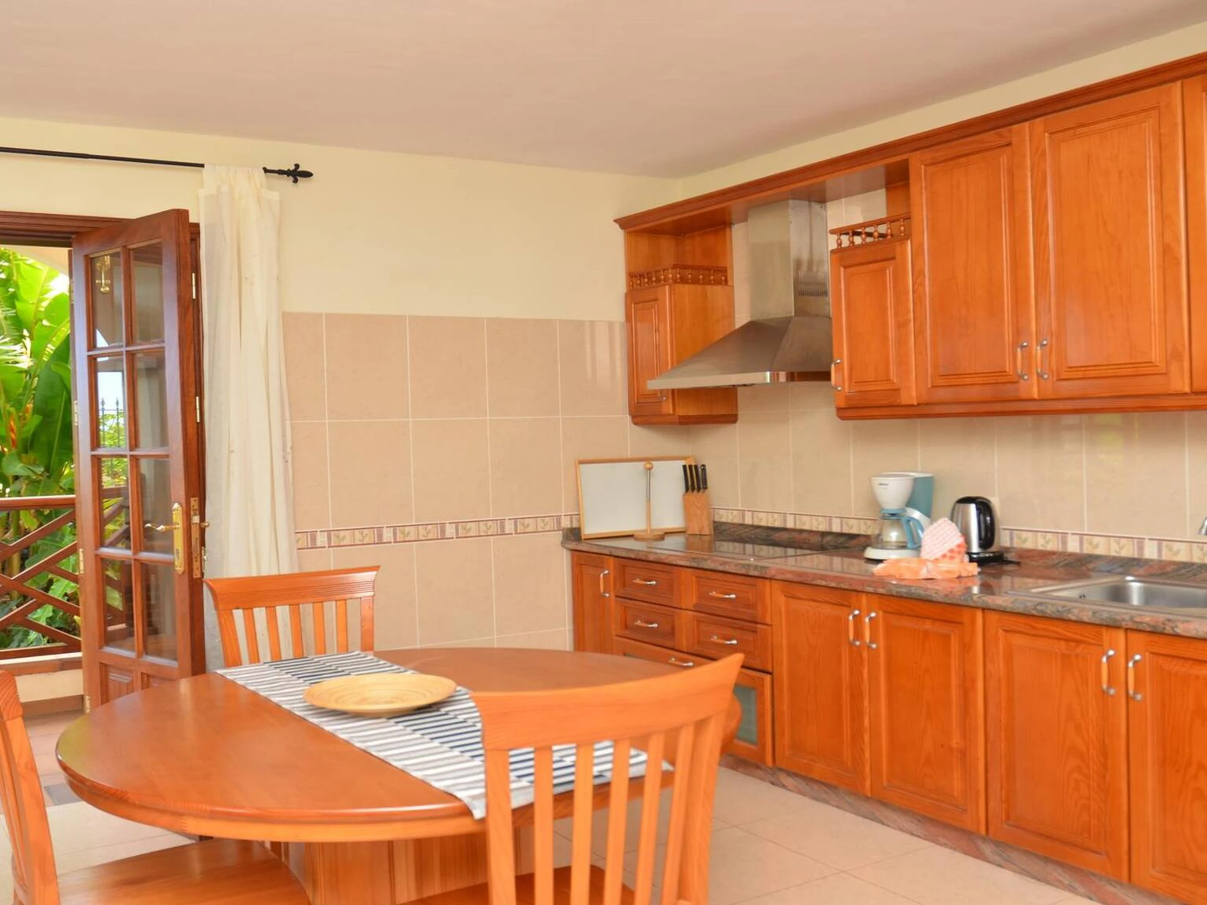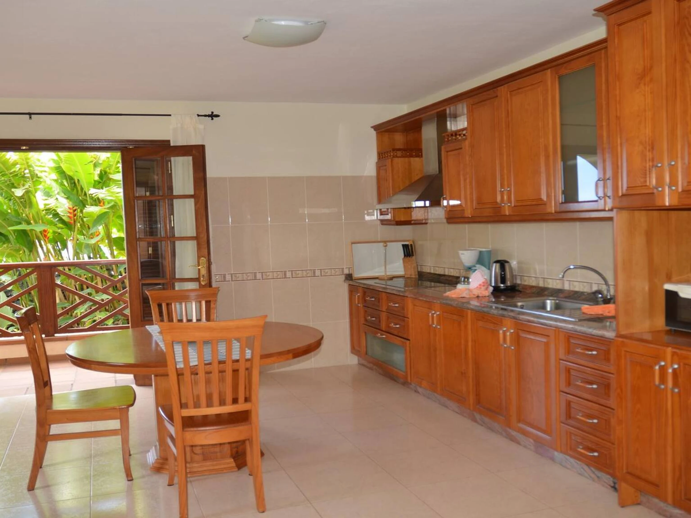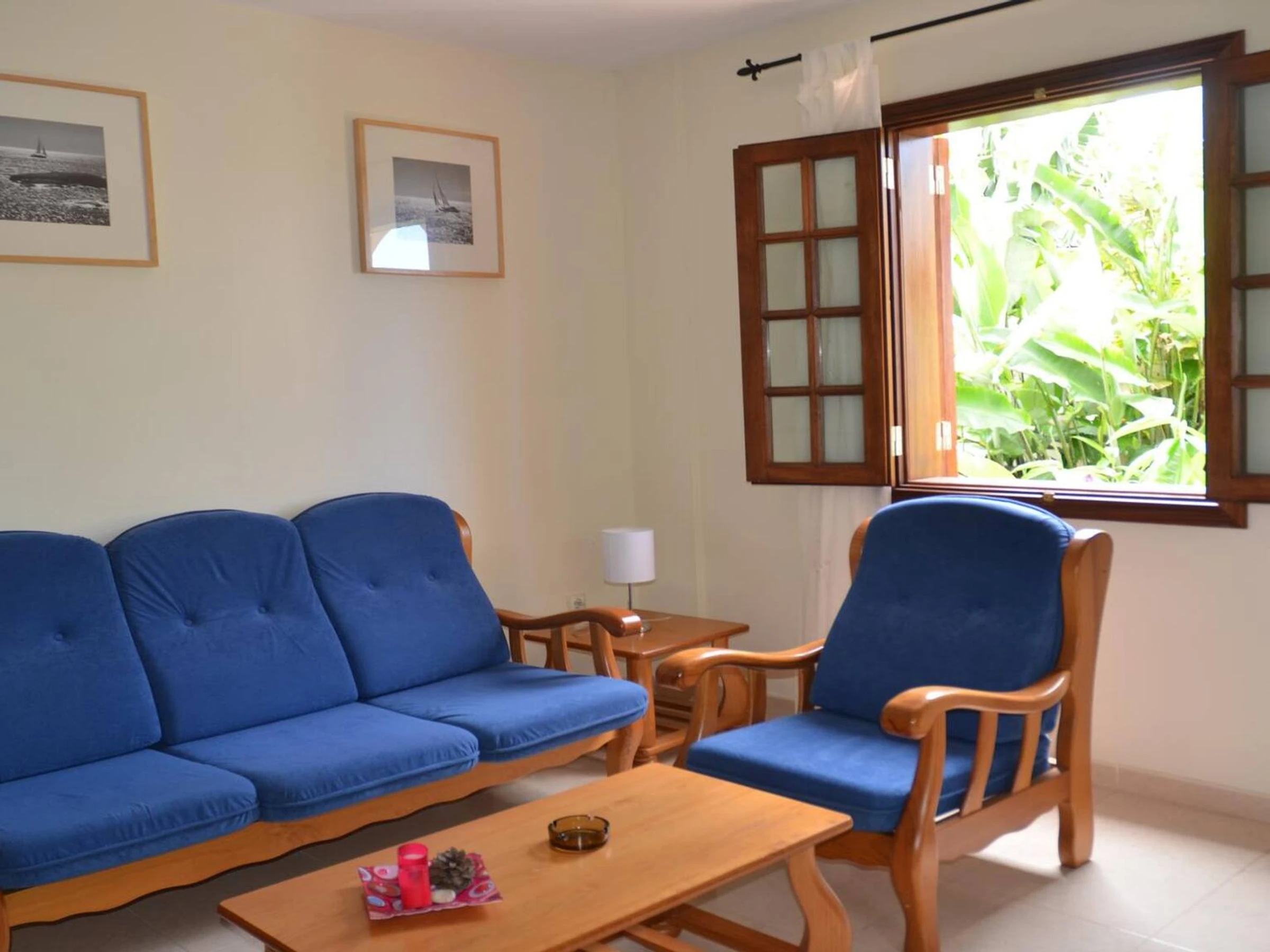 El apartamento nº 3 es el último del pasillo en la planta baja. Consiste de un dormitorio, salón con cocina, baño y un terraza grande, que tiene vistas a la platanera. El precio indicada es válido para 2 personas.