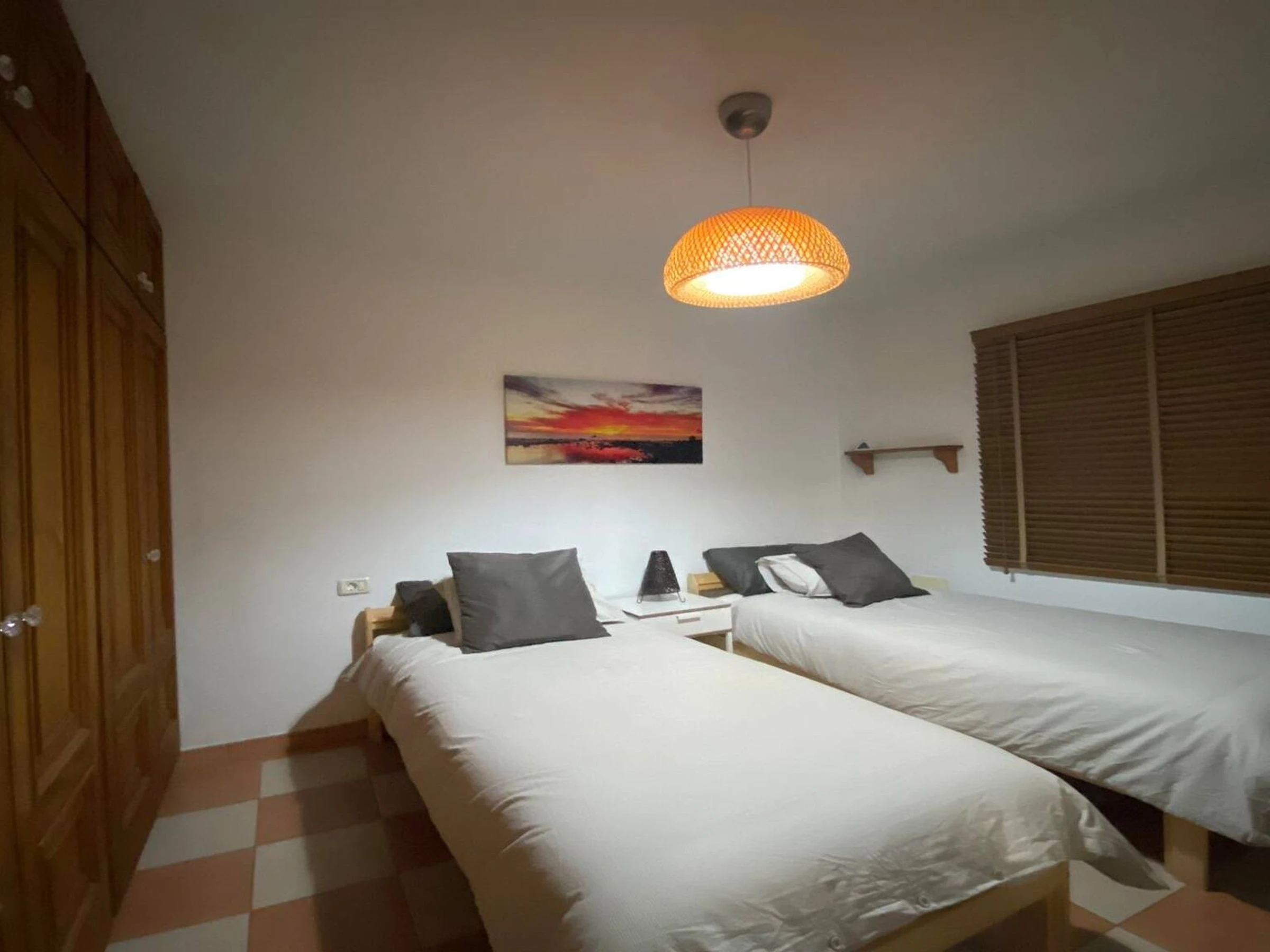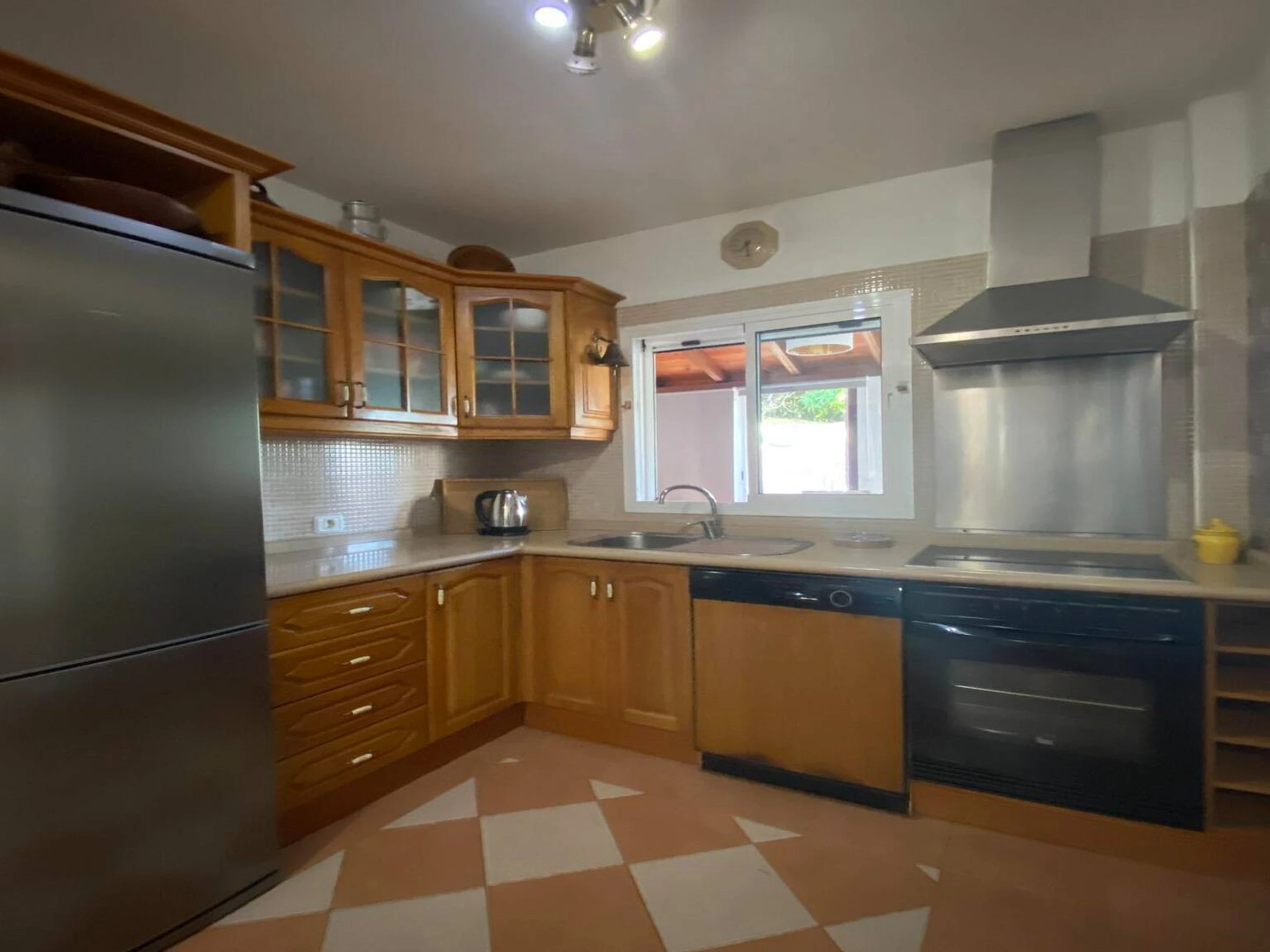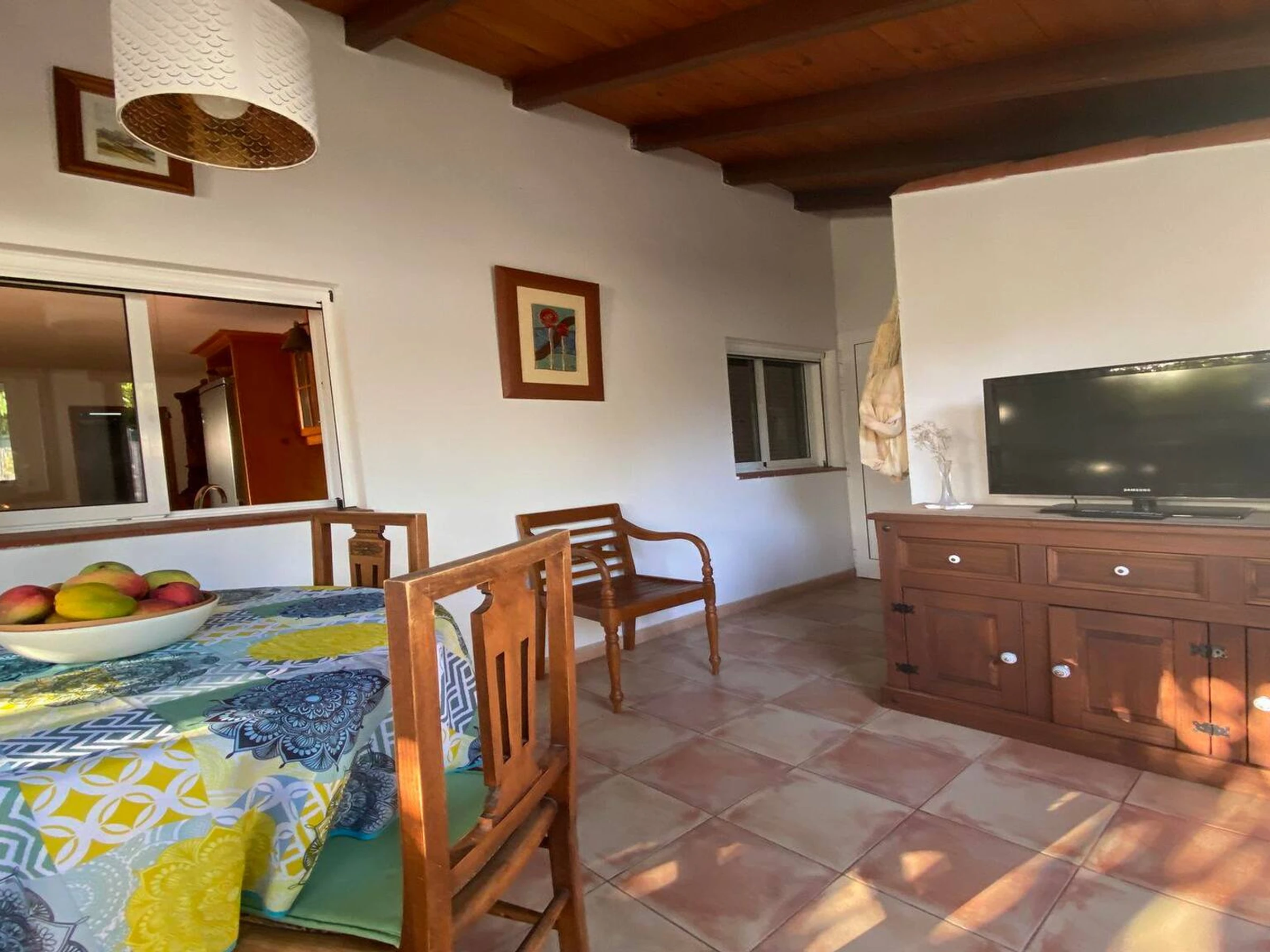 Tiene dos habitaciones, una con dos camas individuales y otra con cama doble. La casa dispone de varios ambientes, un salón que da al jardín y a la cocina, con sofá y mesa para comer disfrutando de las vistas al jardín, este salón-comedor está conectado a otra espacio equipado con sofá amplio, sillón de lectura y televisión.
