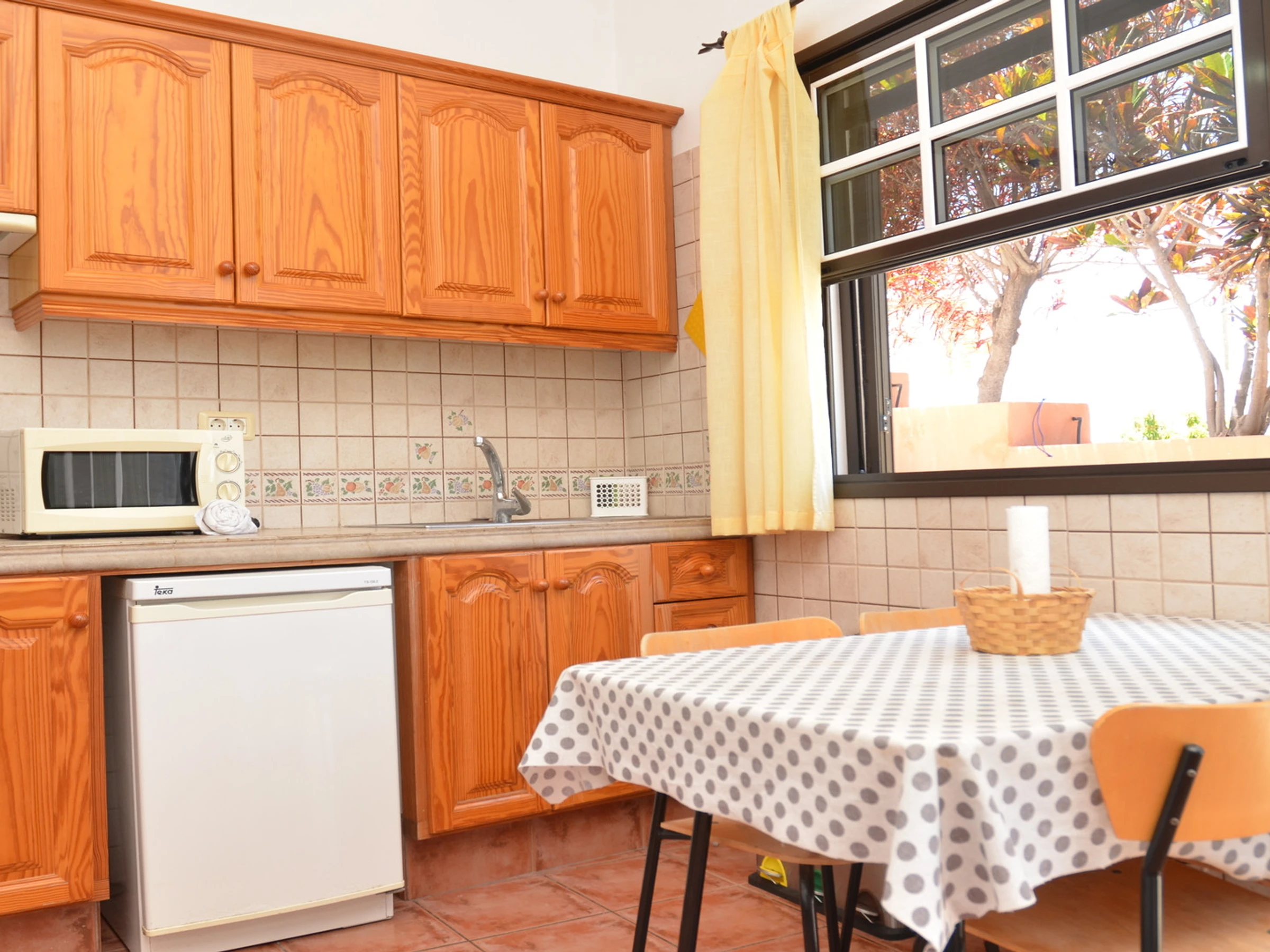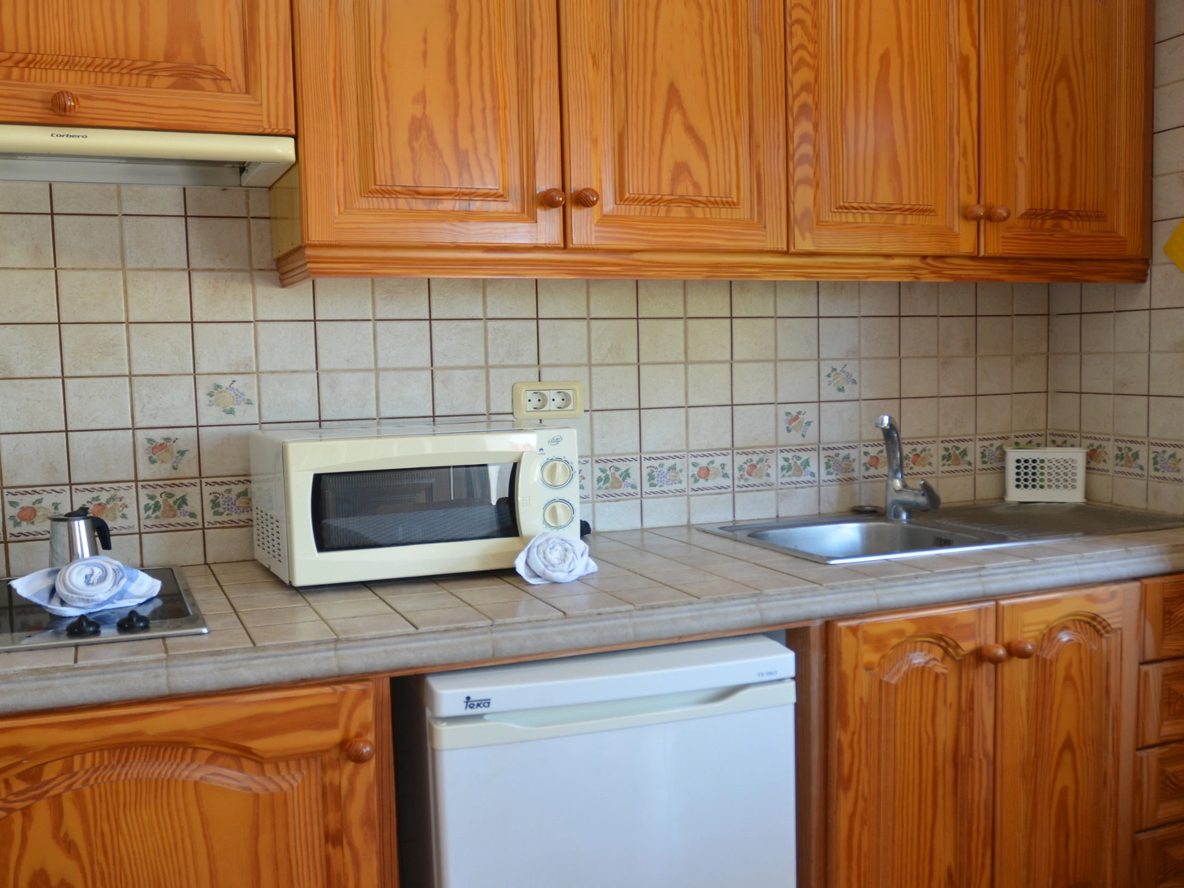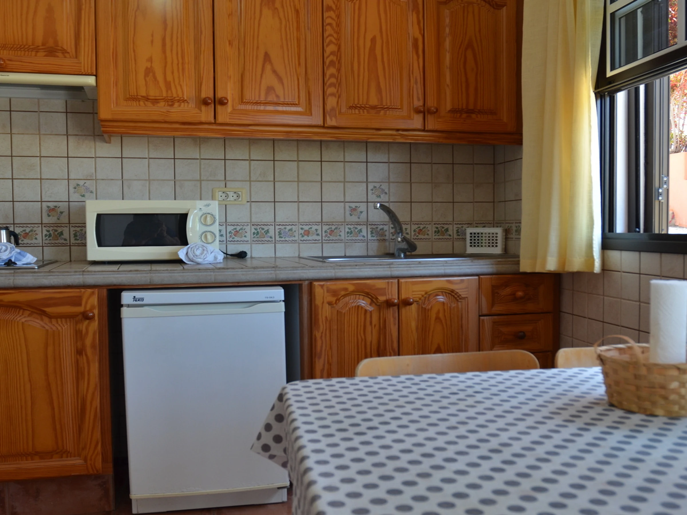 La cocina americana, eléctrica, está equipada con nevera, microondas, vajilla/cubertería, utensilios/cocina, cafetera y hervidor de agua.