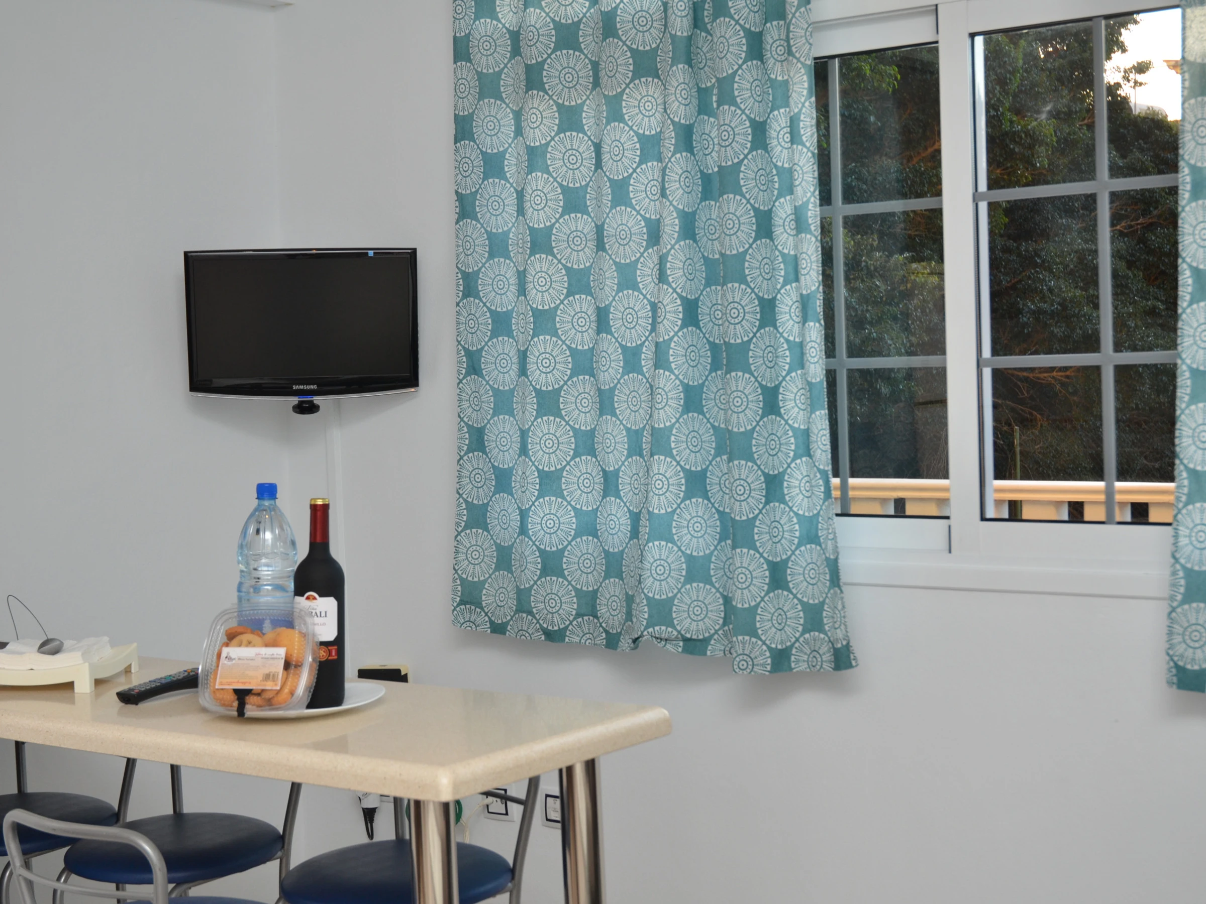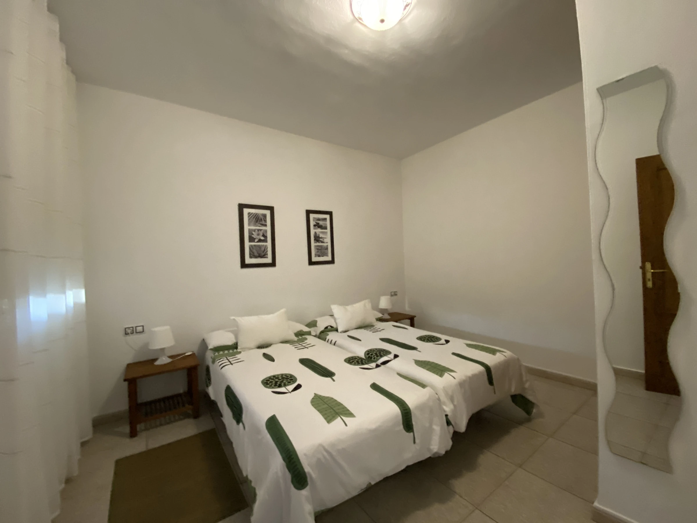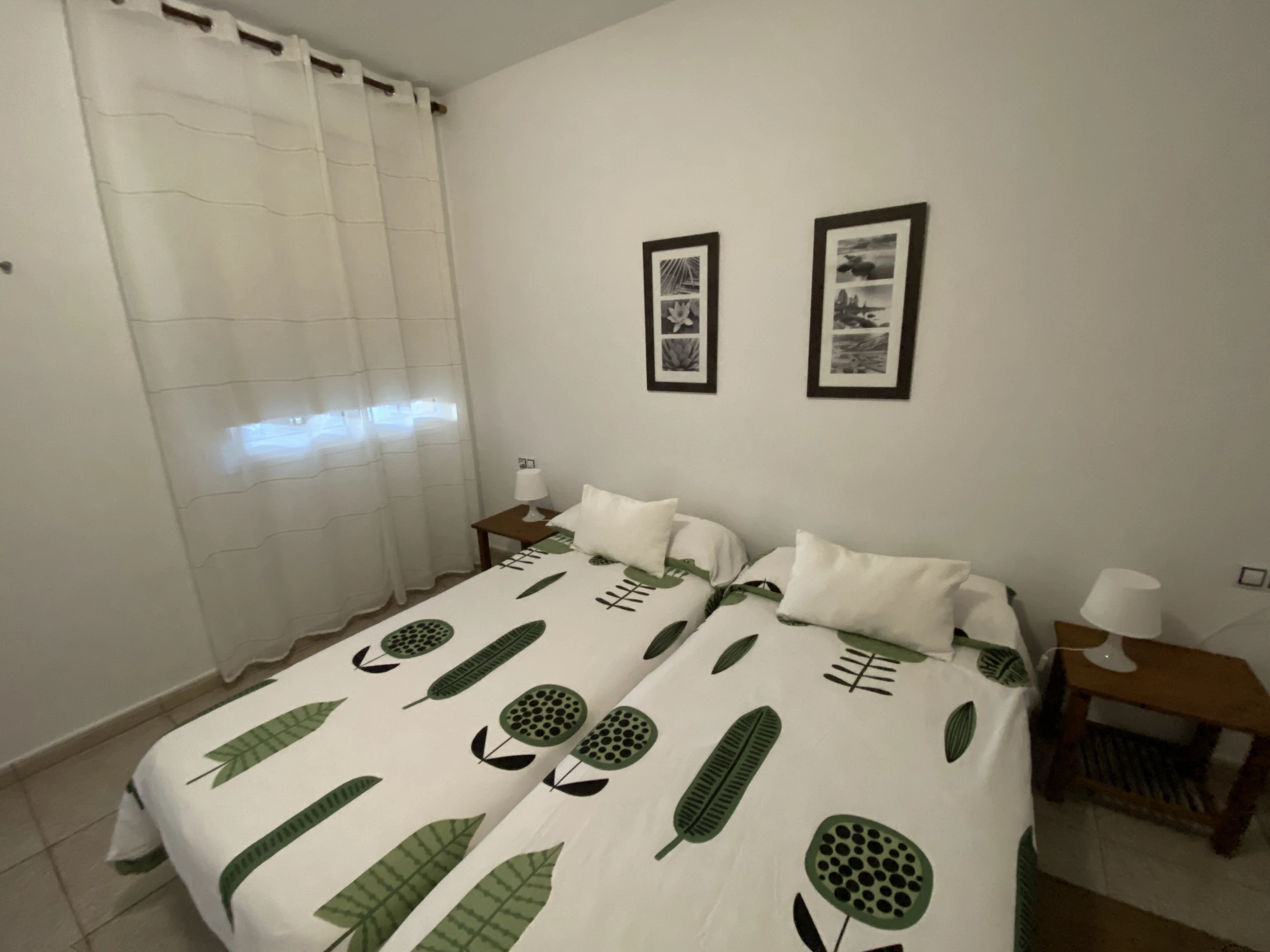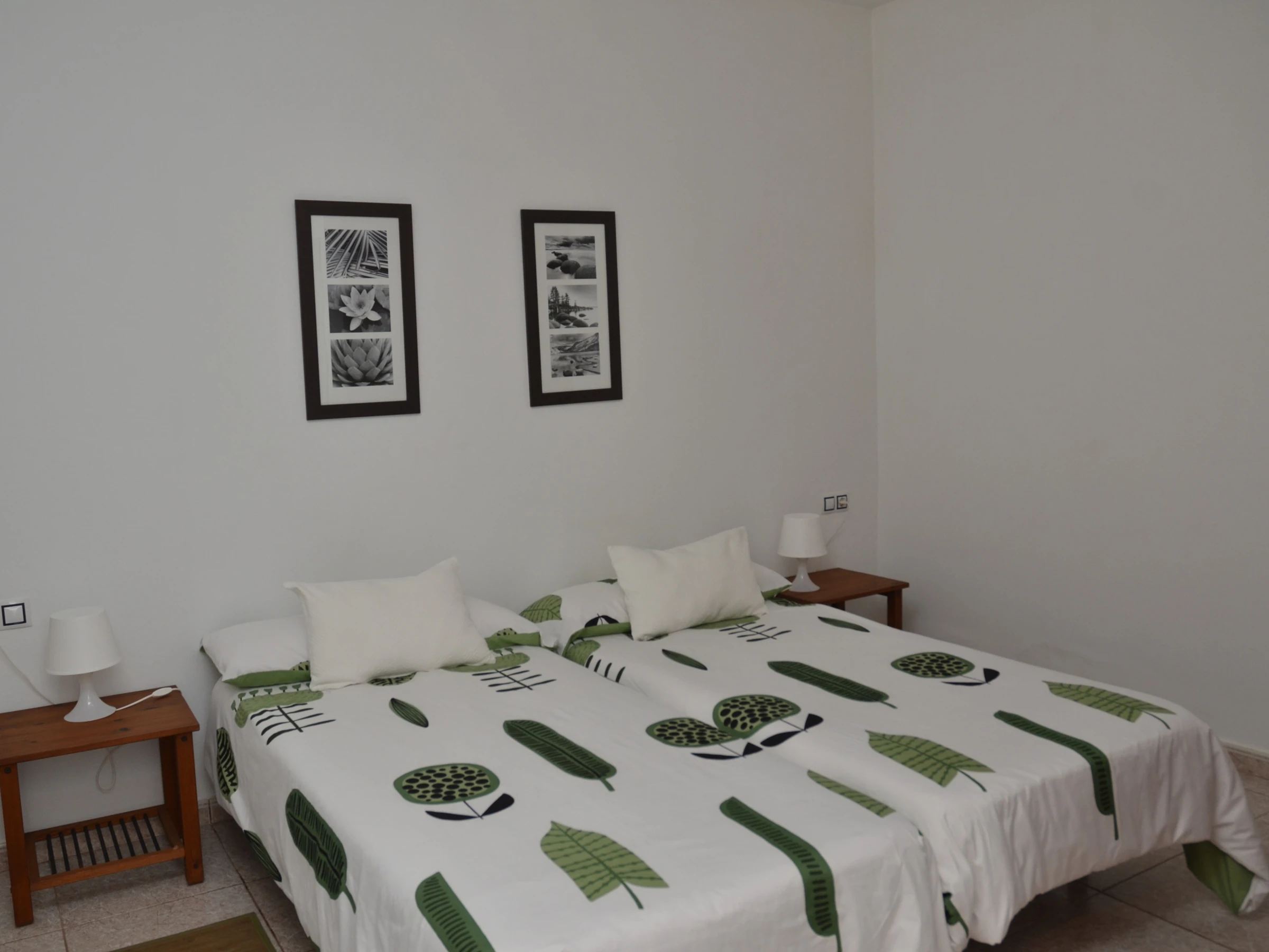 Apartamentos Passiflora son dos apartamentos en la planta baja de una casa privada, que se encuentra en una zona tranquila en el barrio de Borbalán. Desde la carretera hay que pasar por un camino de peatones de más o menos 200 m hasta la casa. Cada apartamento tiene su terraza con mesa y silla y en común hay una azotea equipada con tumbonas. Los clientes del apartamento 1B tienen que pasar al lado de la terraza del apartamento 1A para llegar a su entrada. Los apartamentos están muy bien equipados y decorados en colores alegres. Apartamento 1 A tiene un dormitorio con dos camas individuales, en la zona de la entrada un salón cocina con sofá-cama y televisión, y en la parte trasera y un baño con ducha.